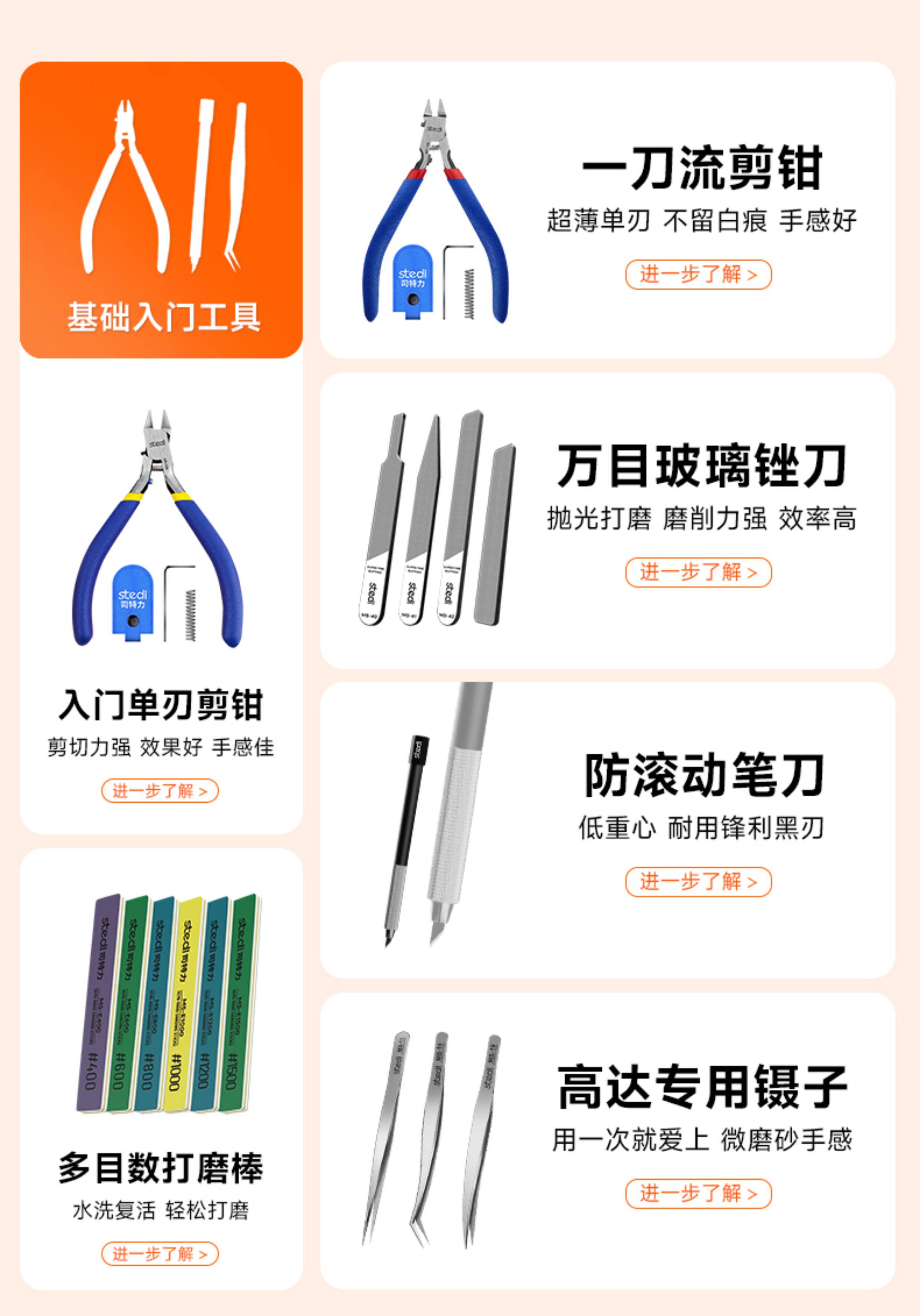 Stedi /司特力 高达模型剪钳单刃水口钳素组超薄钳子拼装工具套装