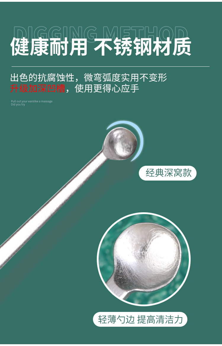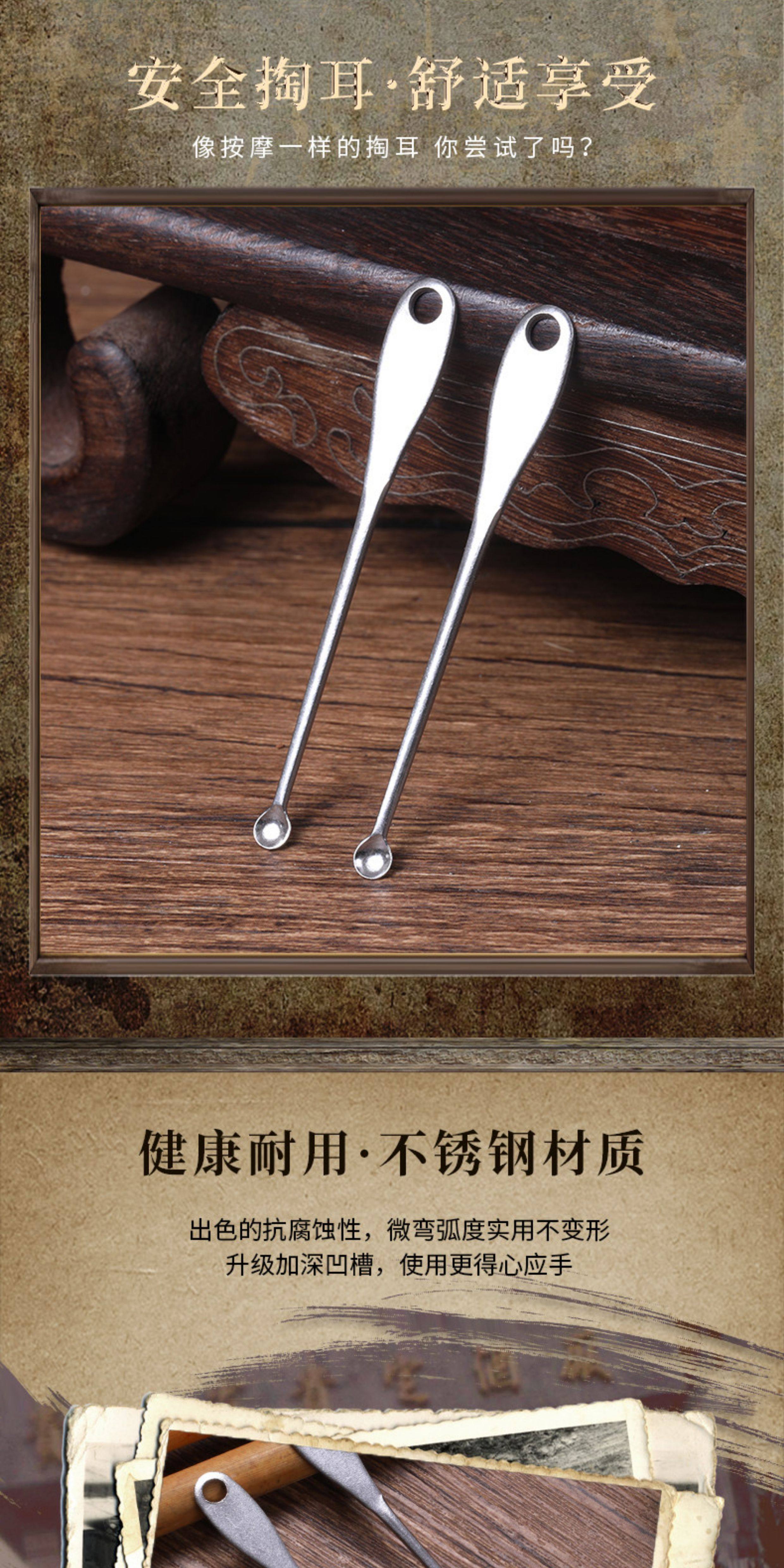 HomeProducts老式挖耳勺不锈钢耳勺洁耳器发光家用成人儿童掏耳勺薄边圆头包邮