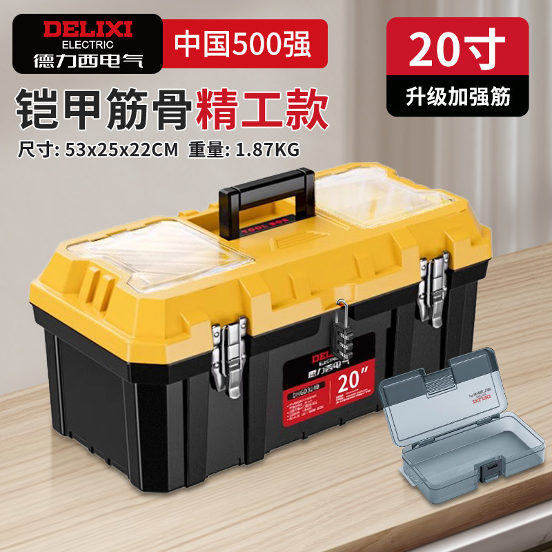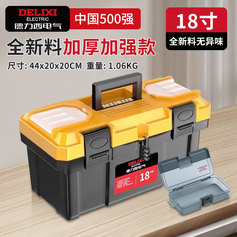 德力西电气带锁工具箱子五金塑料套装家用收纳盒工业级多功能美术