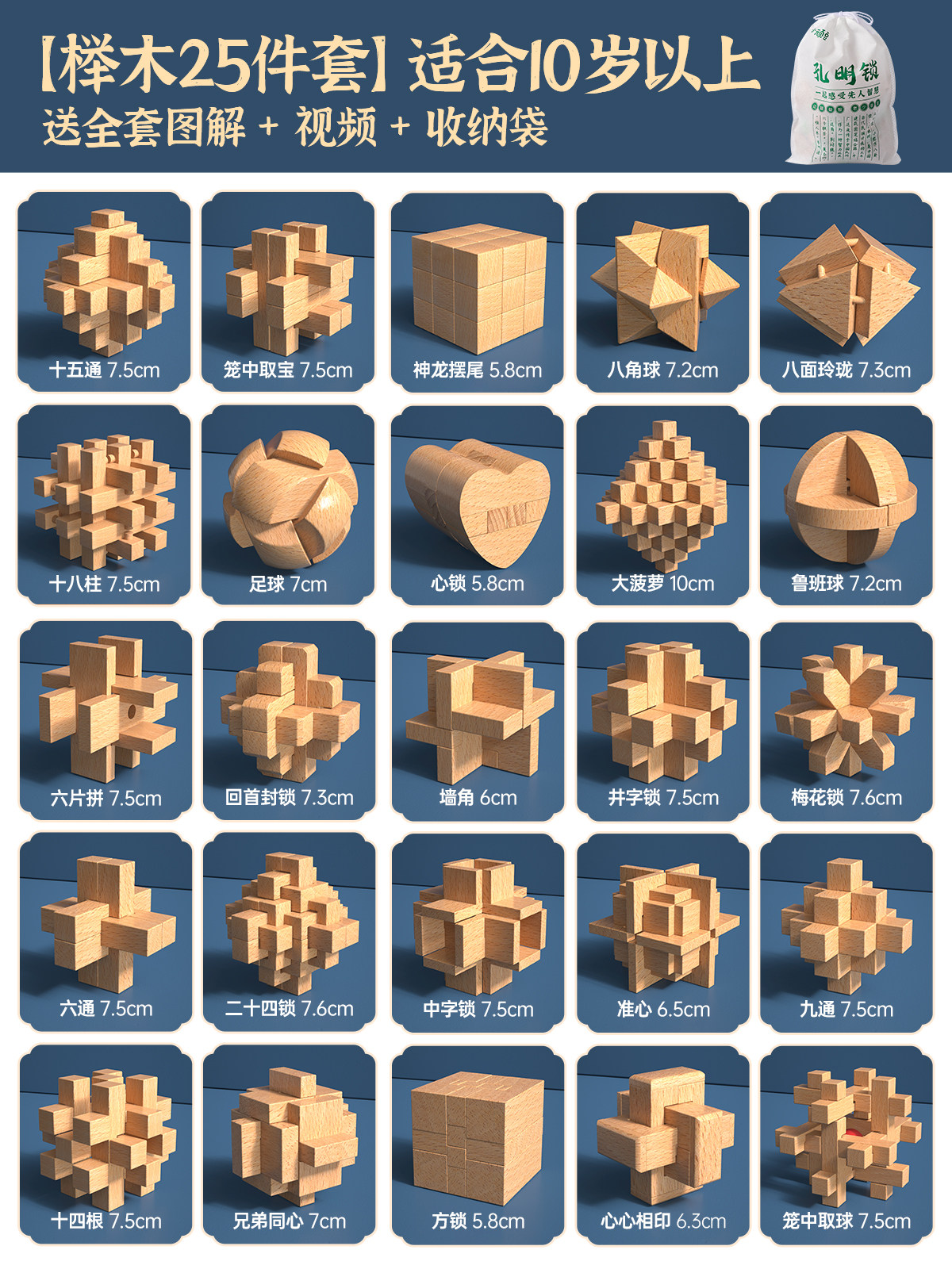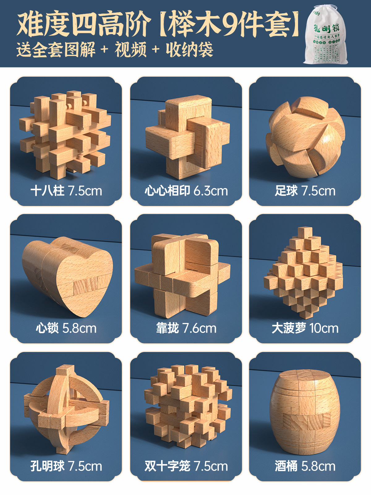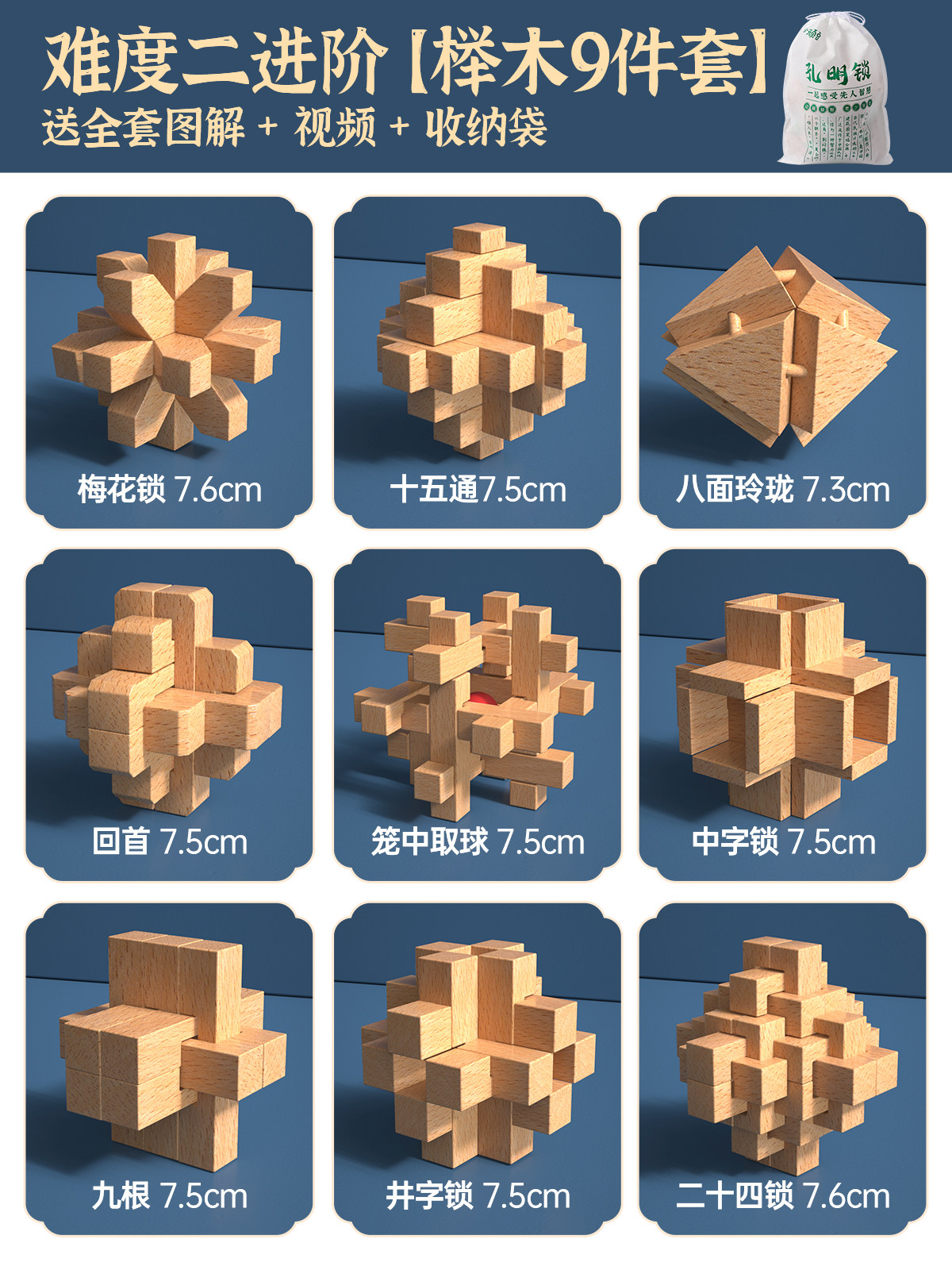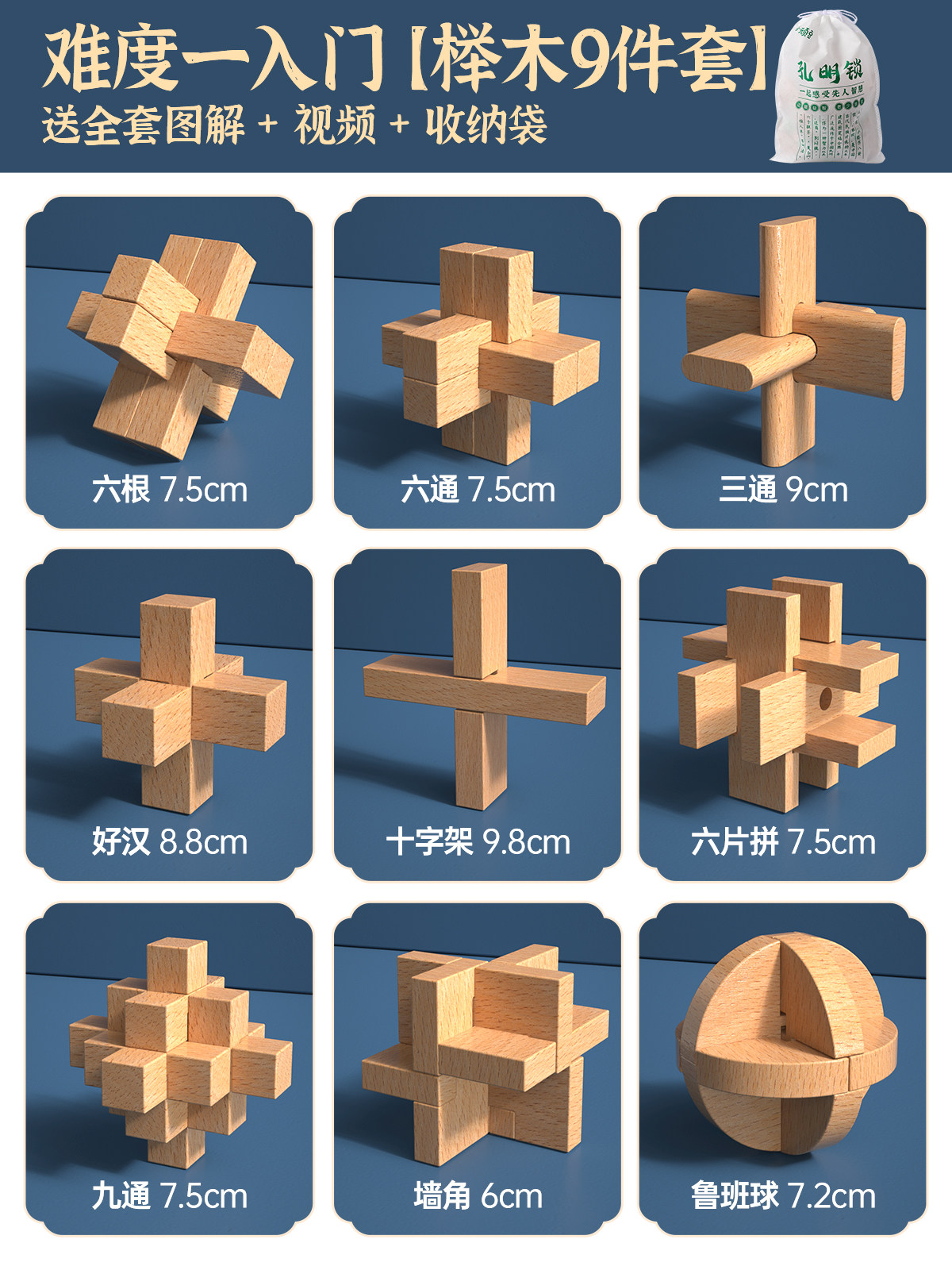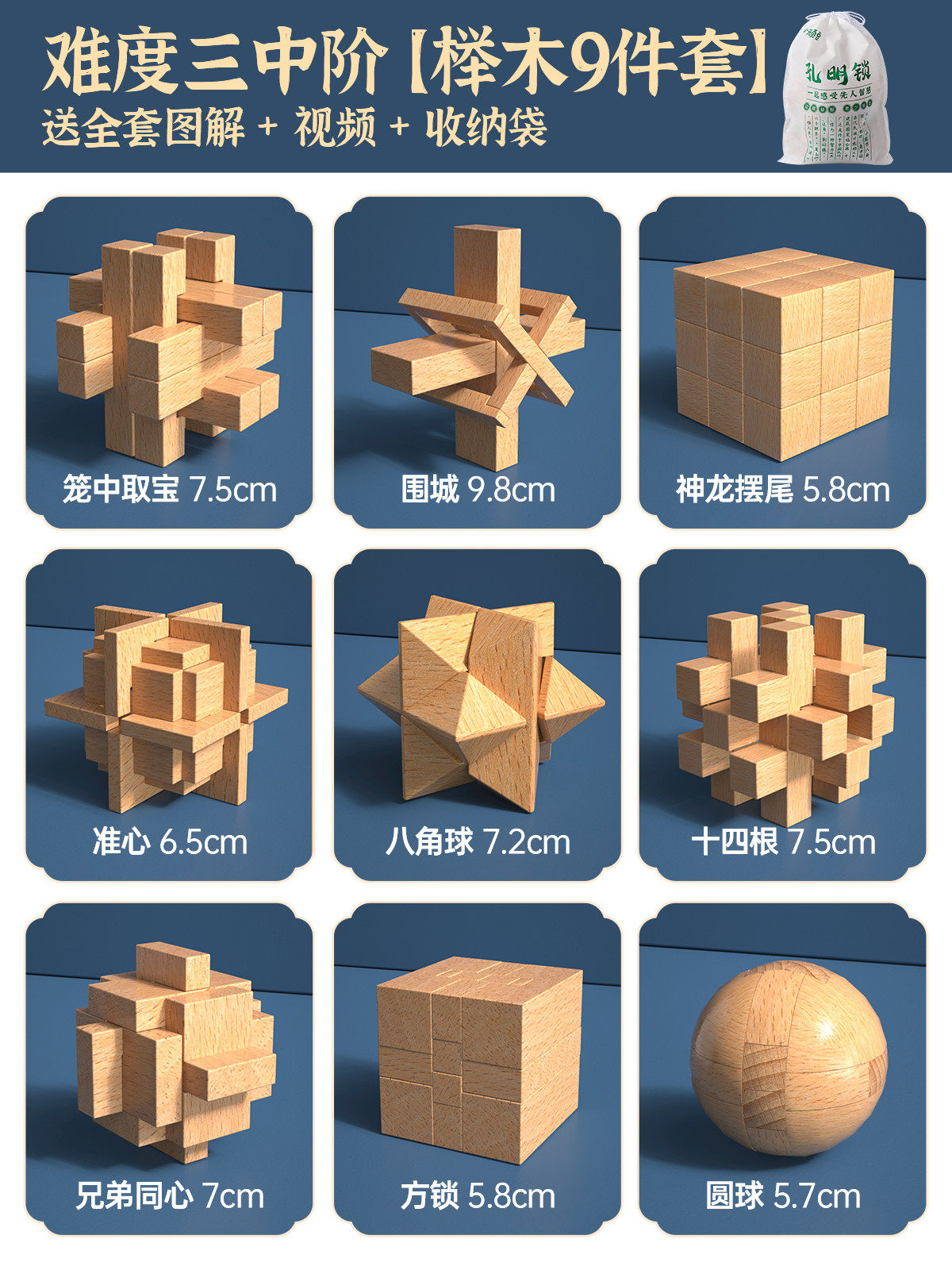 推荐⭐难度一入门【榉木9件套】送全套图解/视频/收纳袋