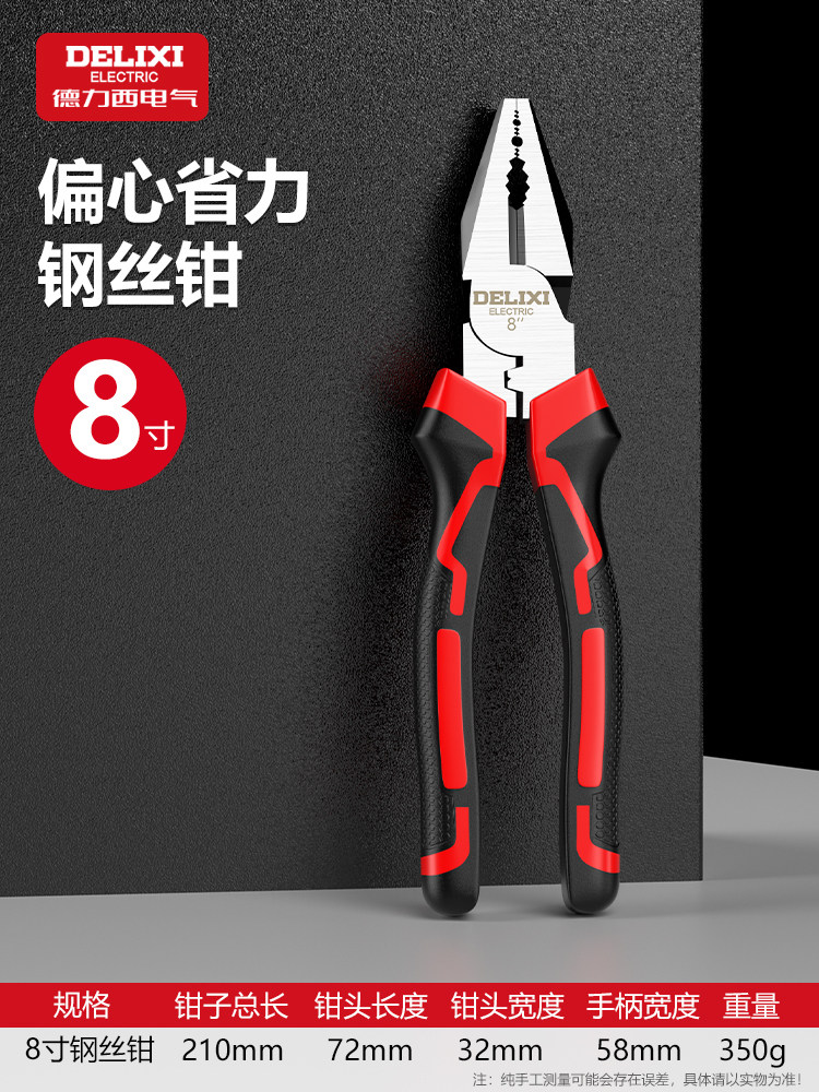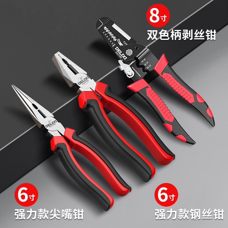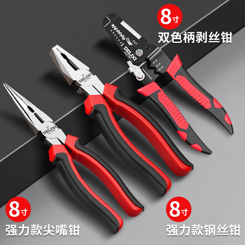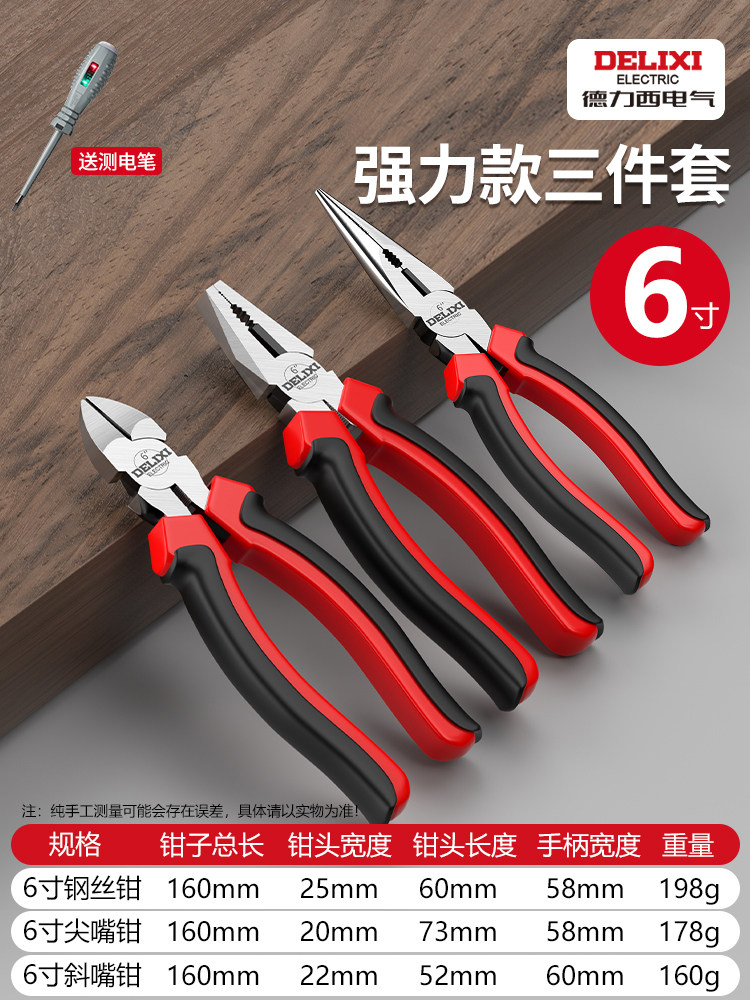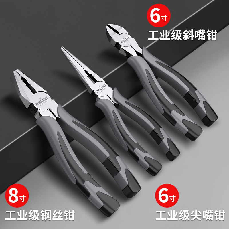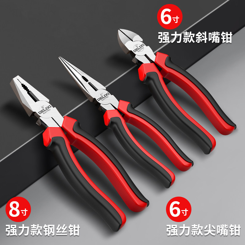 德力西电气老虎钳子钢丝尖嘴钳多功能家用工具大全电工专用斜口钳