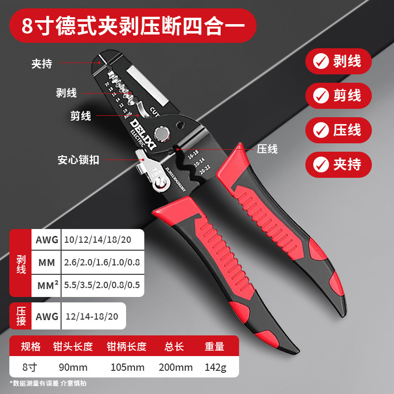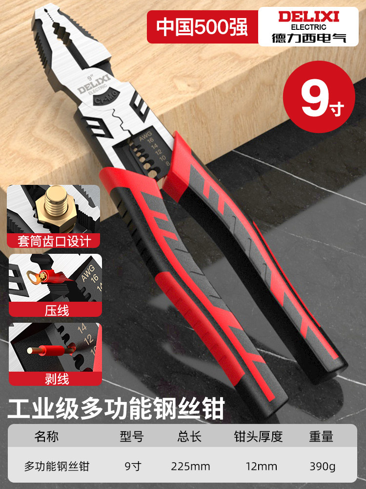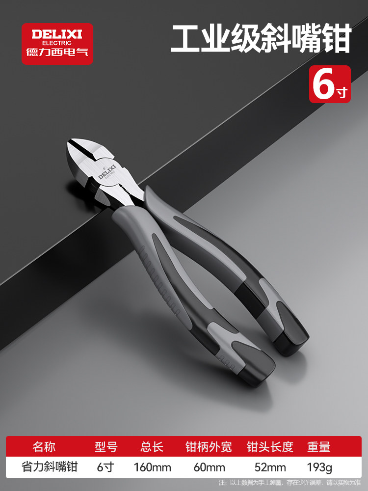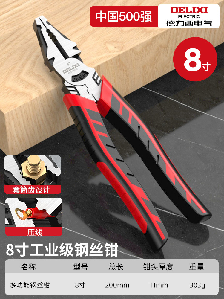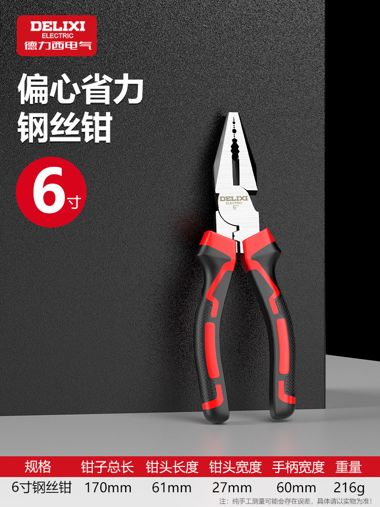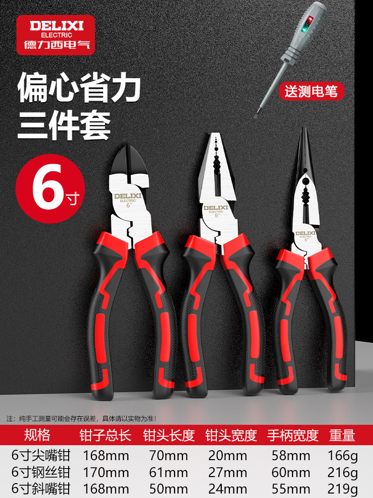 德力西电气老虎钳子钢丝尖嘴钳多功能家用工具大全电工专用斜口钳