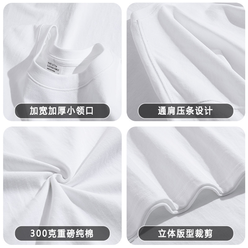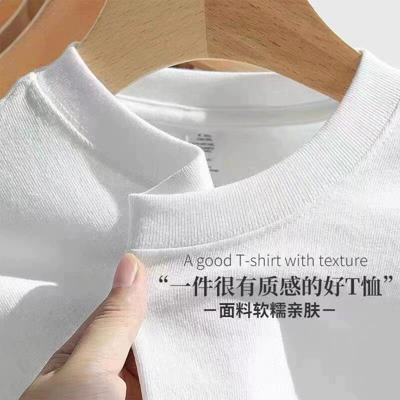 新疆棉400g重磅纯棉短袖t恤男女情侣半袖夏季白色圆领宽松打底衫