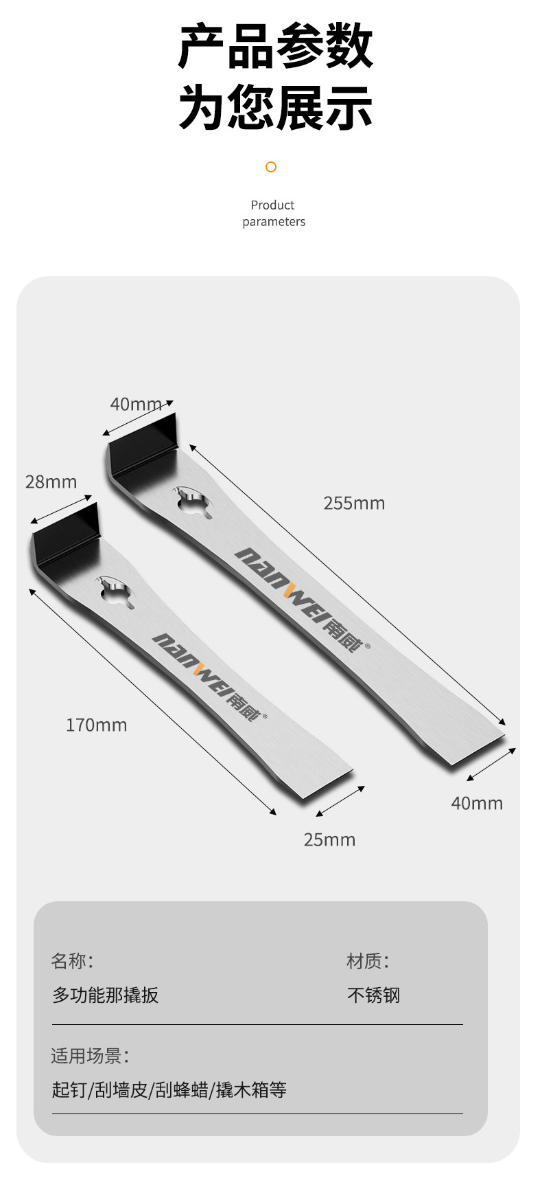 马氏体不锈钢撬棍木工神器翘板翘棍工具工业级多功能木门铲刀刮刀