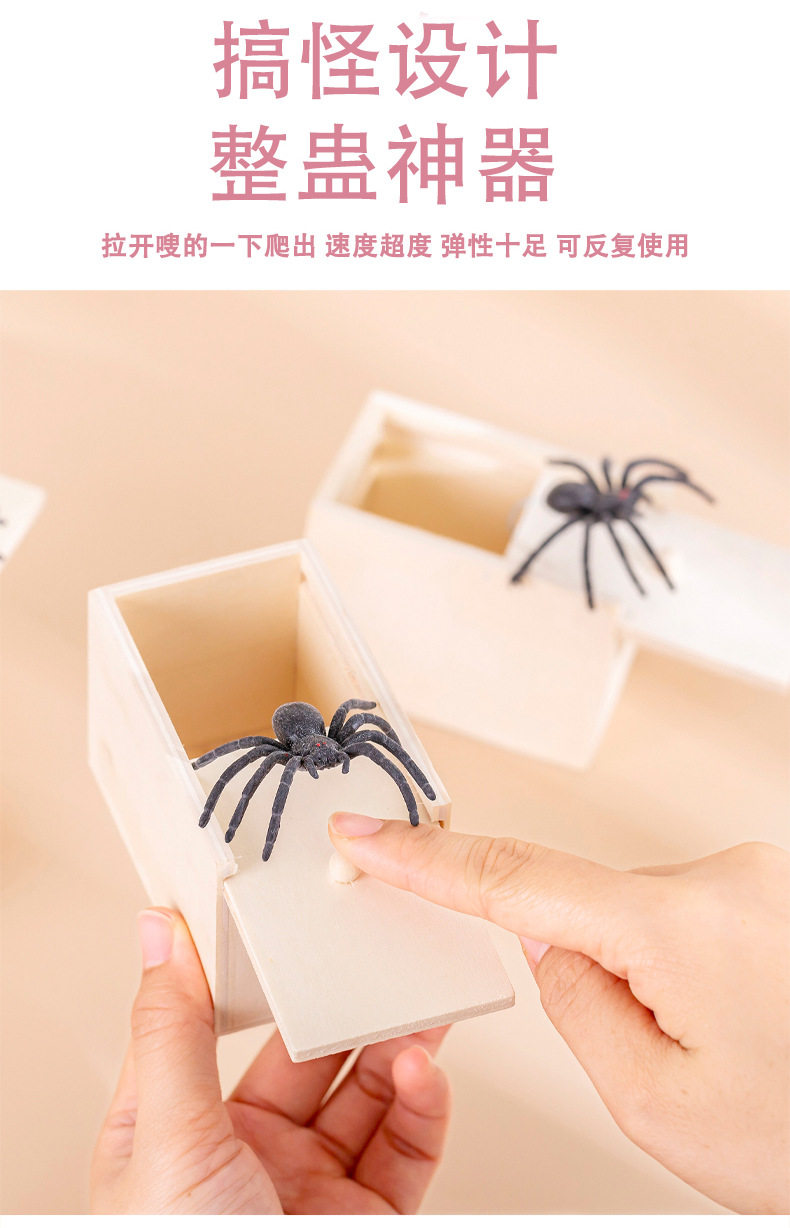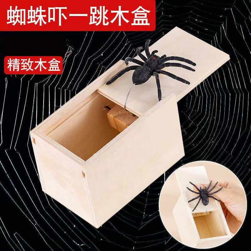 吓一跳盒子蜘蛛抖音同款整蛊道具整人恶搞小虫吓人恐怖小木盒蜘蛛