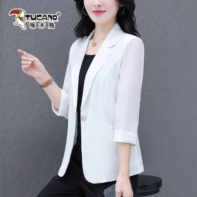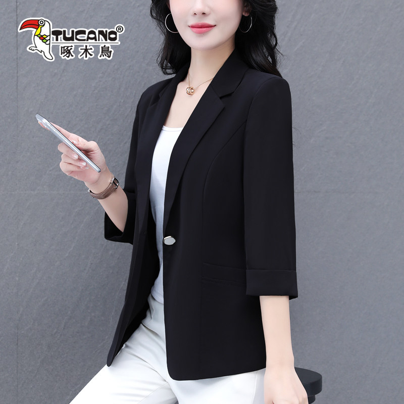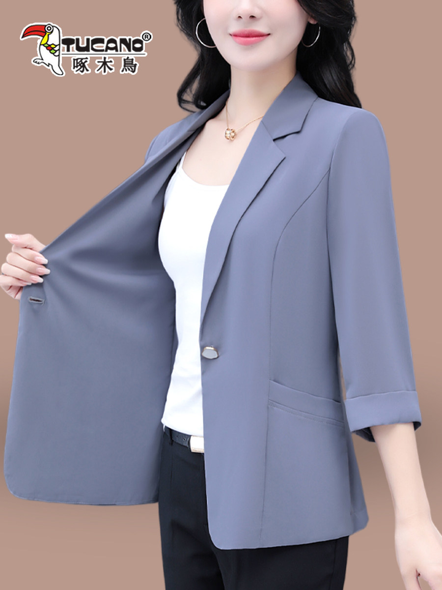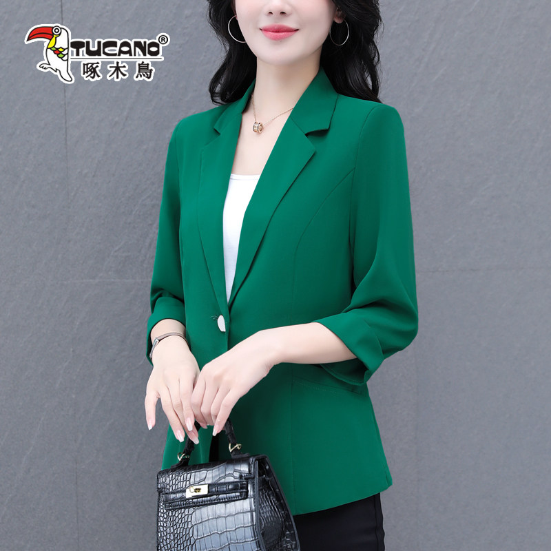 啄木鸟西装外套女春秋2026新款女士翻领时尚气质通勤休闲宽松上衣