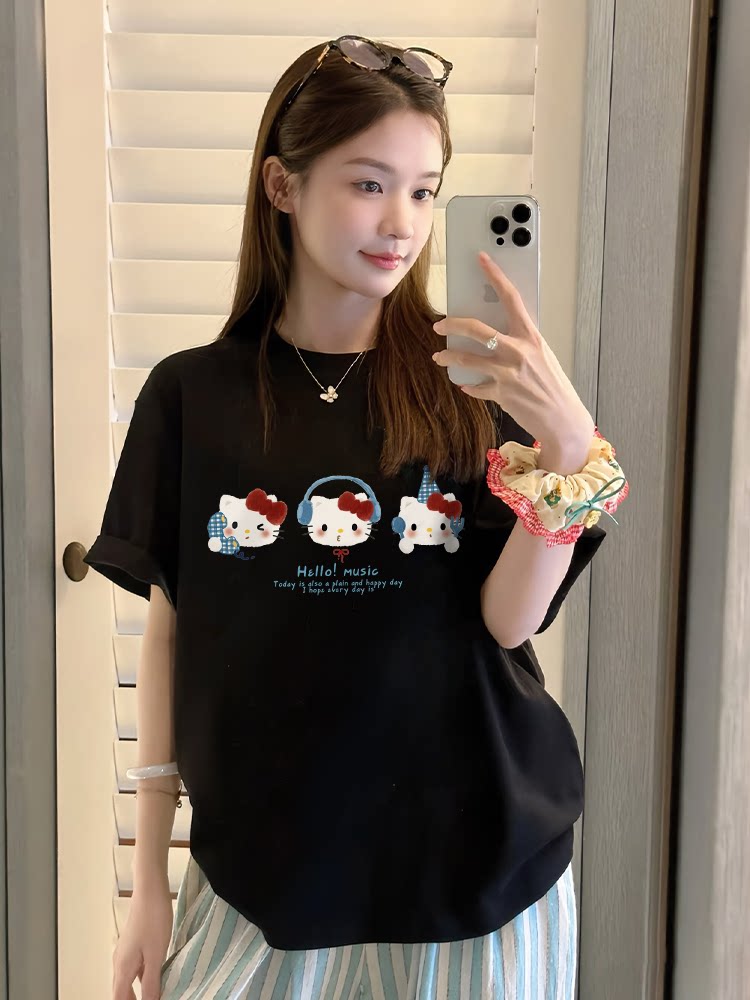 黑色卡通2026新款宽松上衣内搭短袖t恤女夏季今年流行的爆款女装