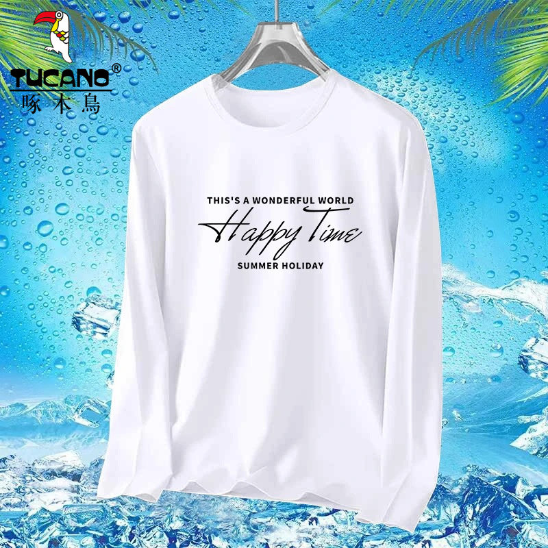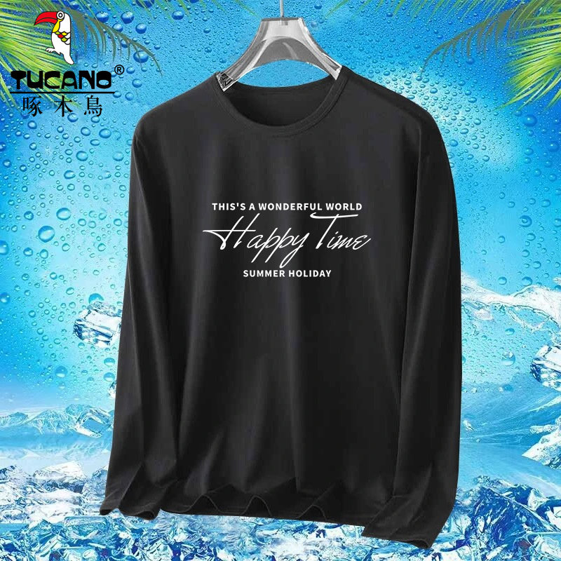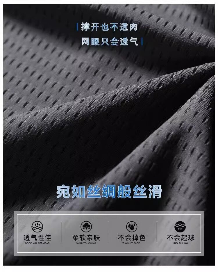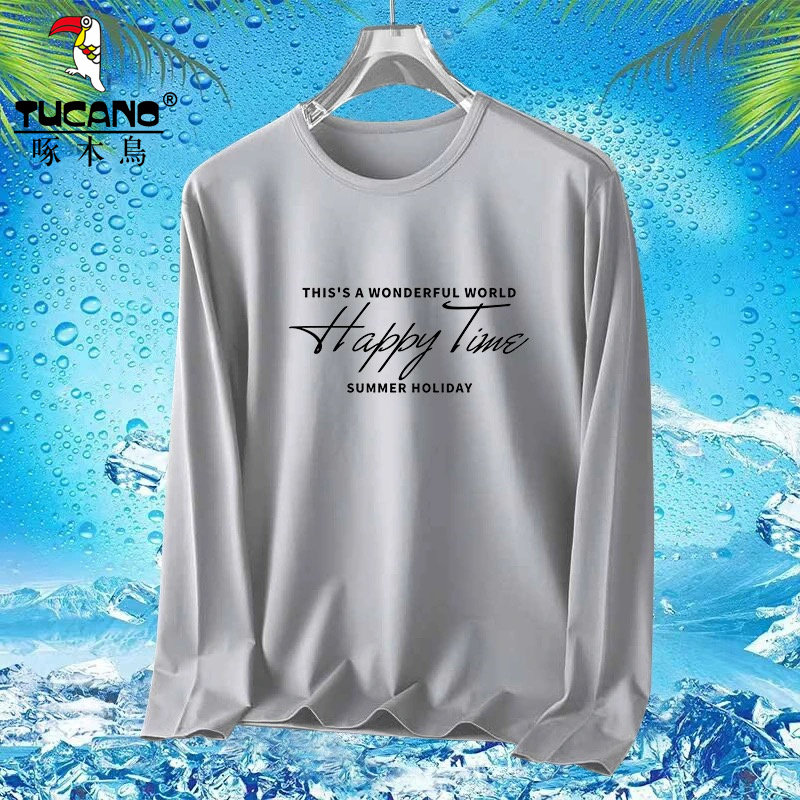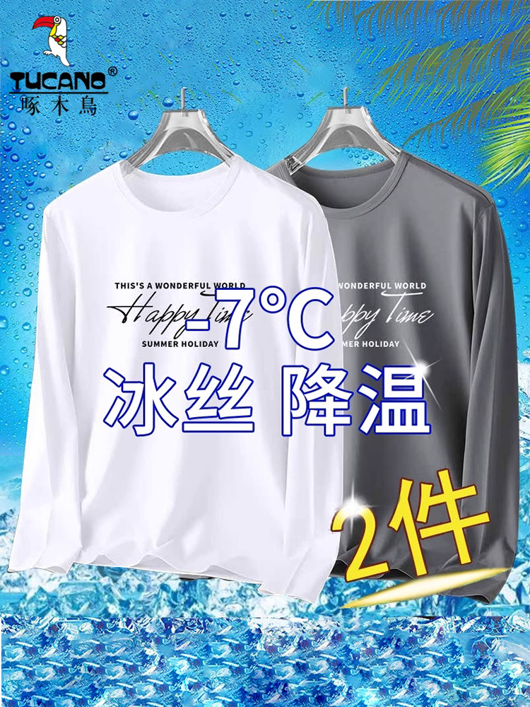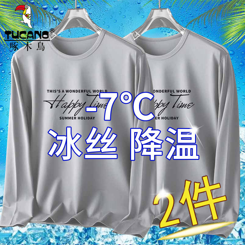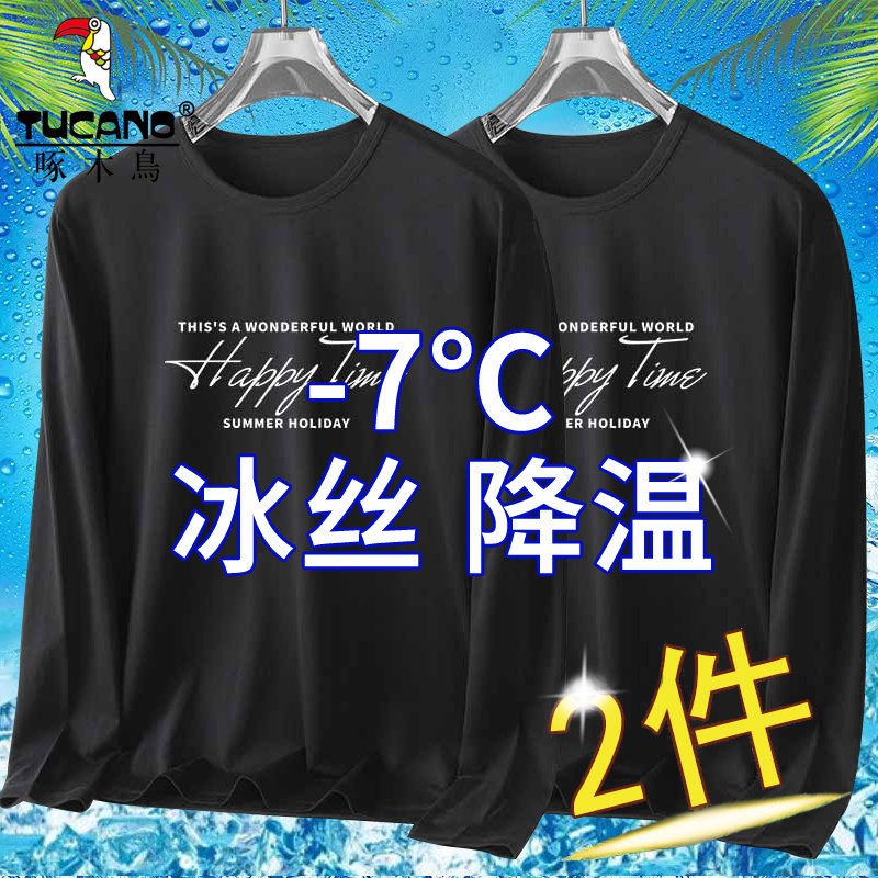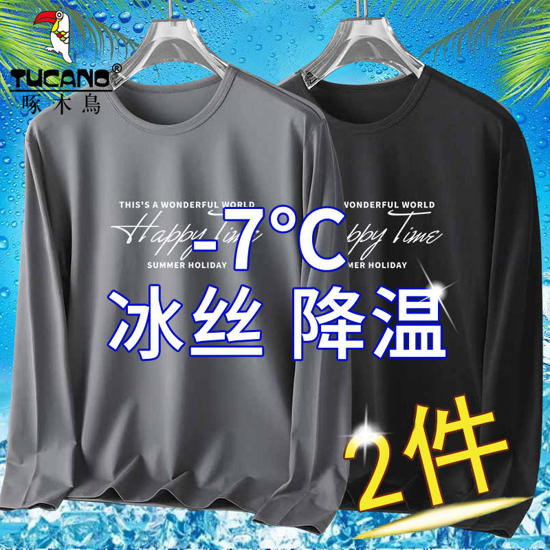 啄木鸟夏季网眼冰丝薄款长袖t恤男士大码宽松百搭圆领印花排汗衫