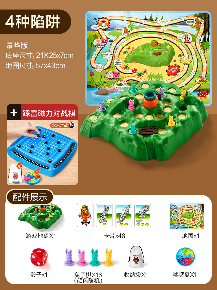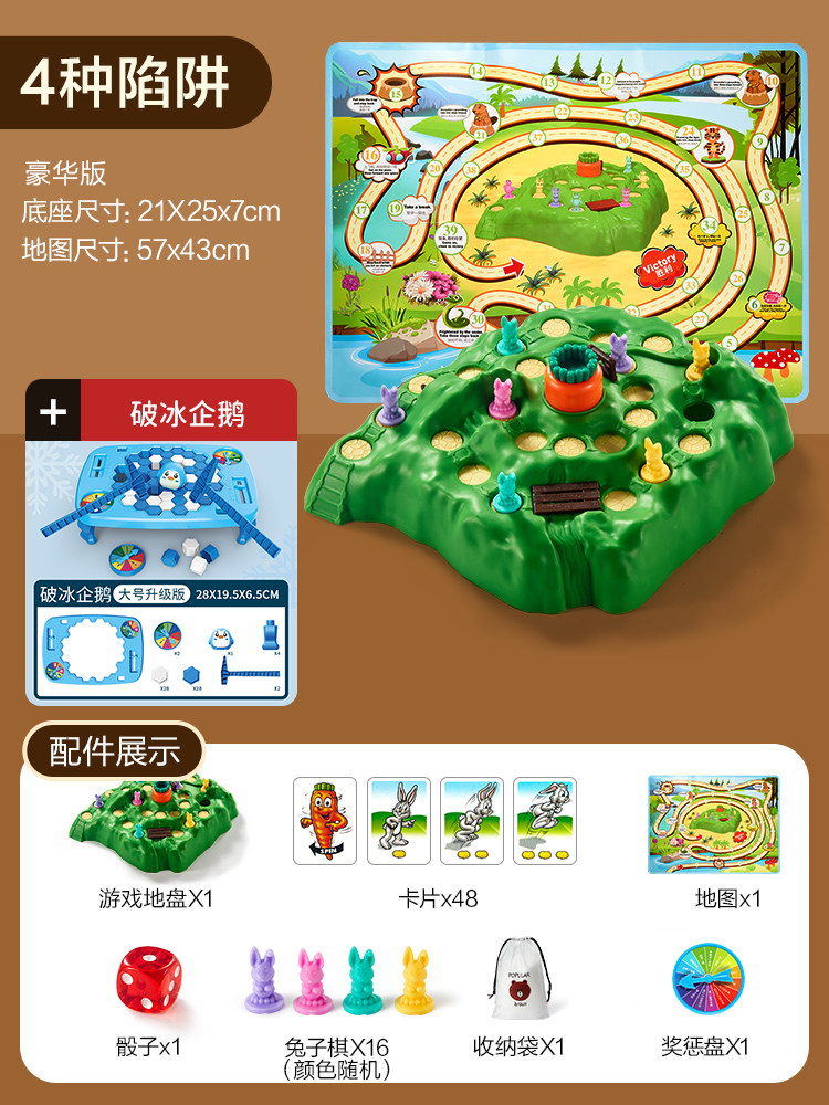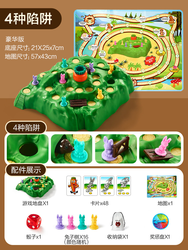 兔子陷阱双人对战龟兔赛跑桌游思维训练亲子互动闯关儿童益智玩具
