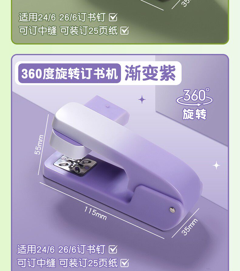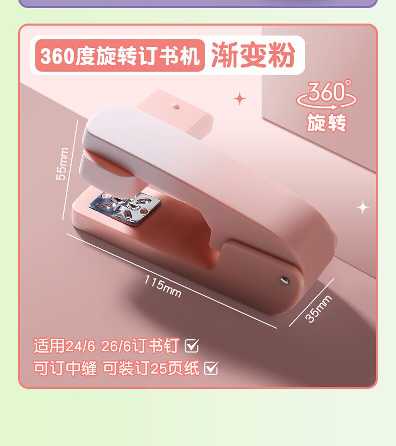 办公用品360度可旋转订书机学生专用订书器文件钉书器订试卷资料