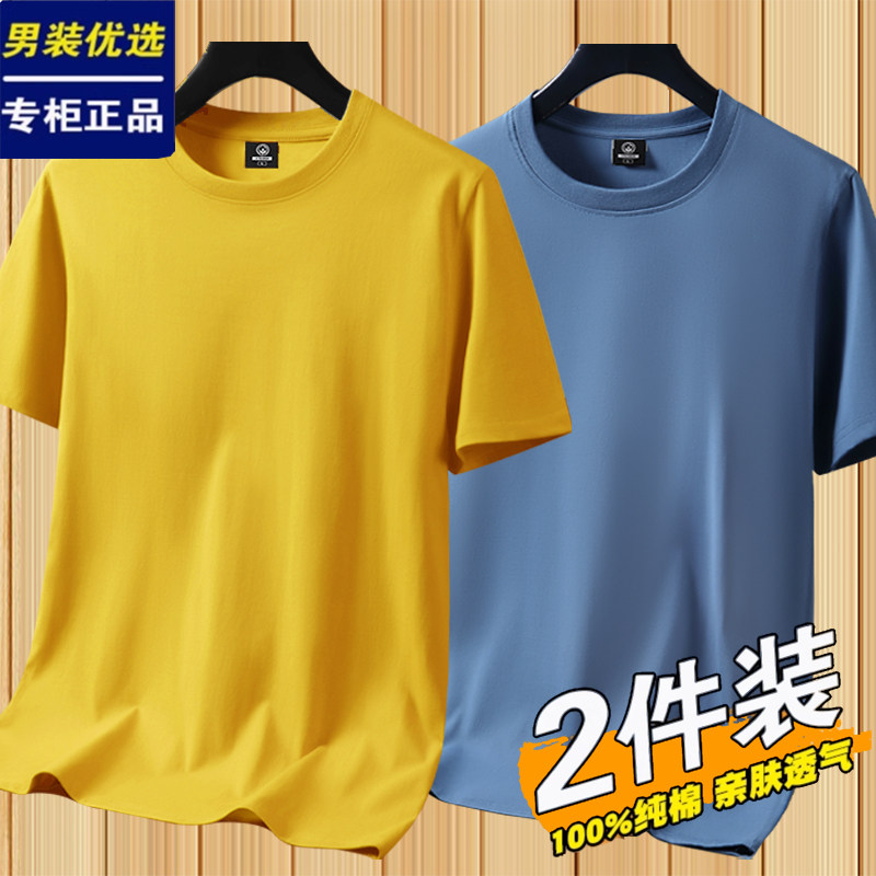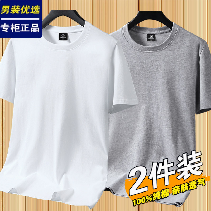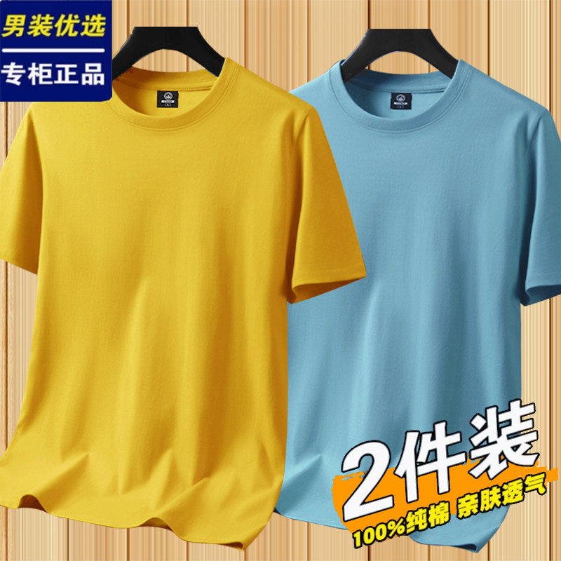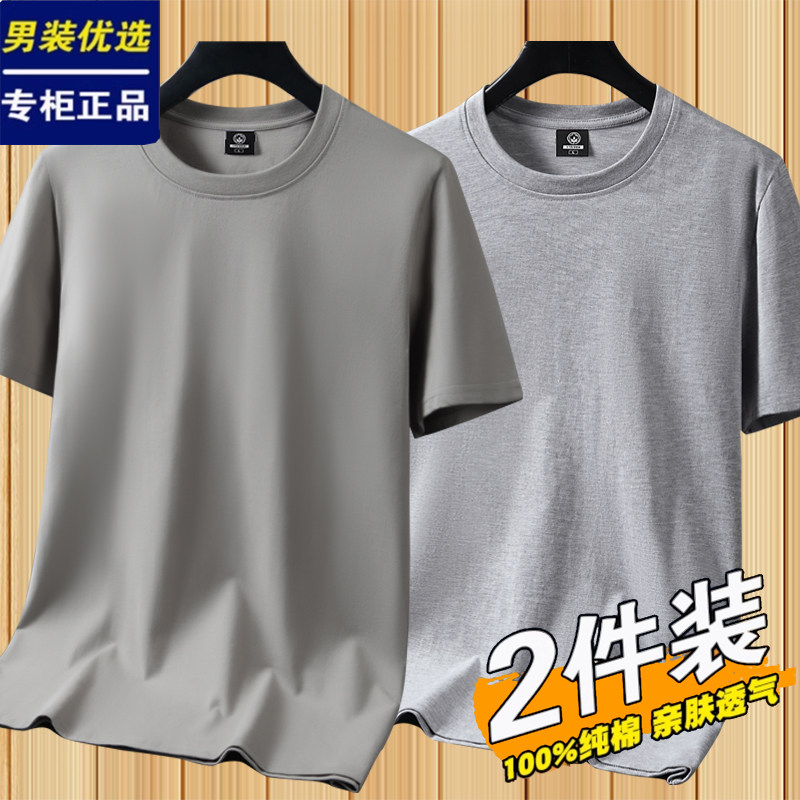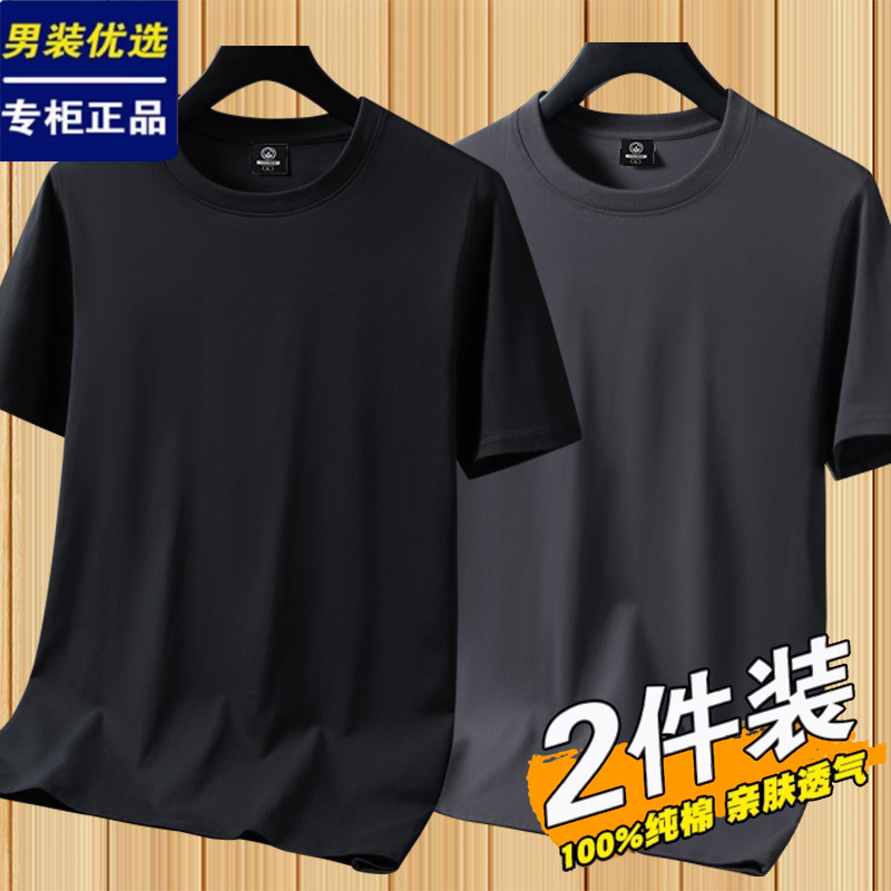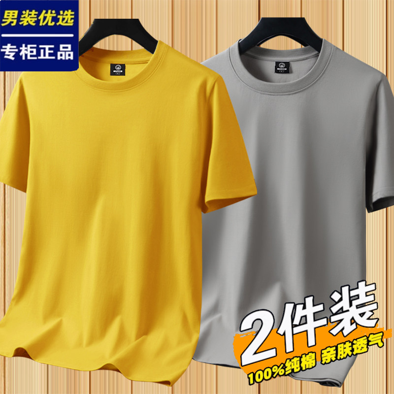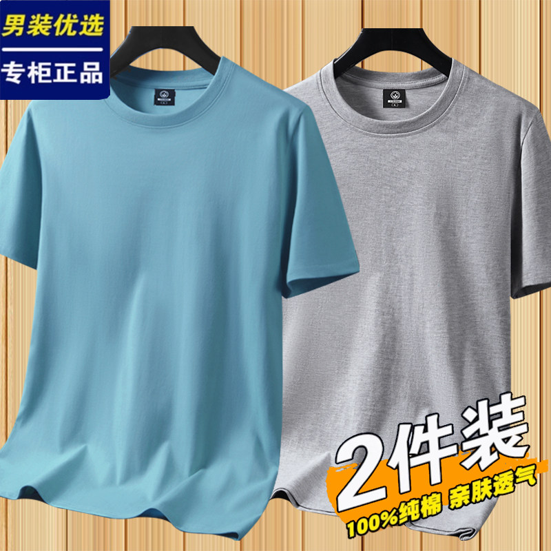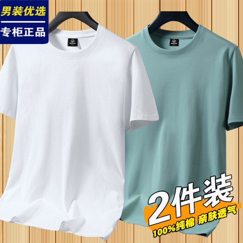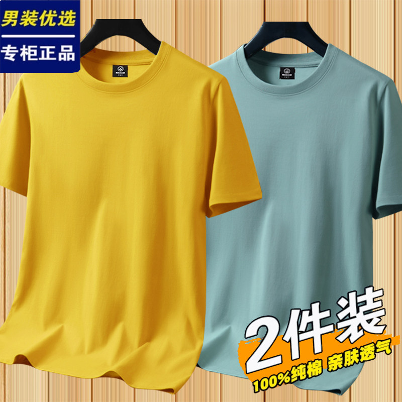 HomeProducts2件100%纯棉短袖t恤男夏季新款纯色宽松大码体恤半袖打底衫T上衣