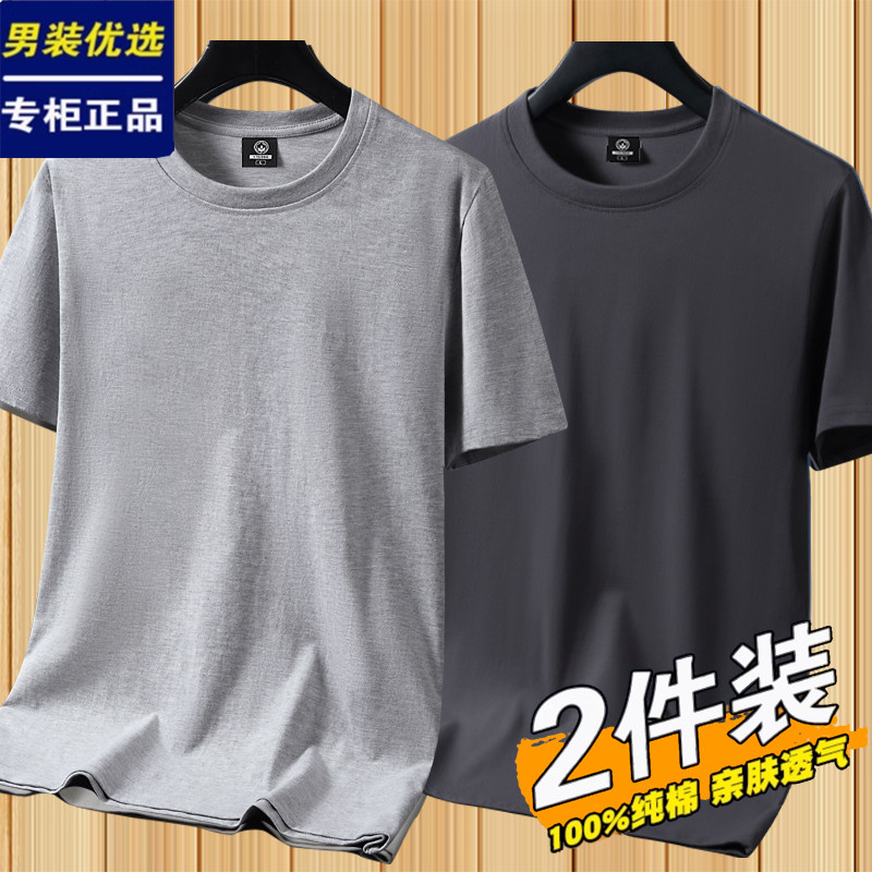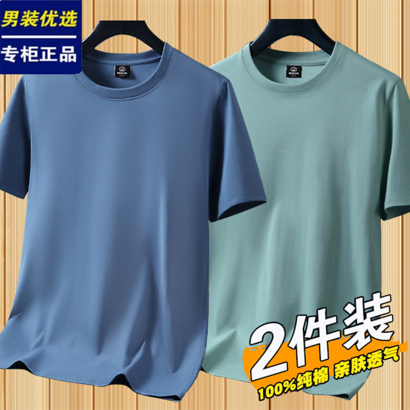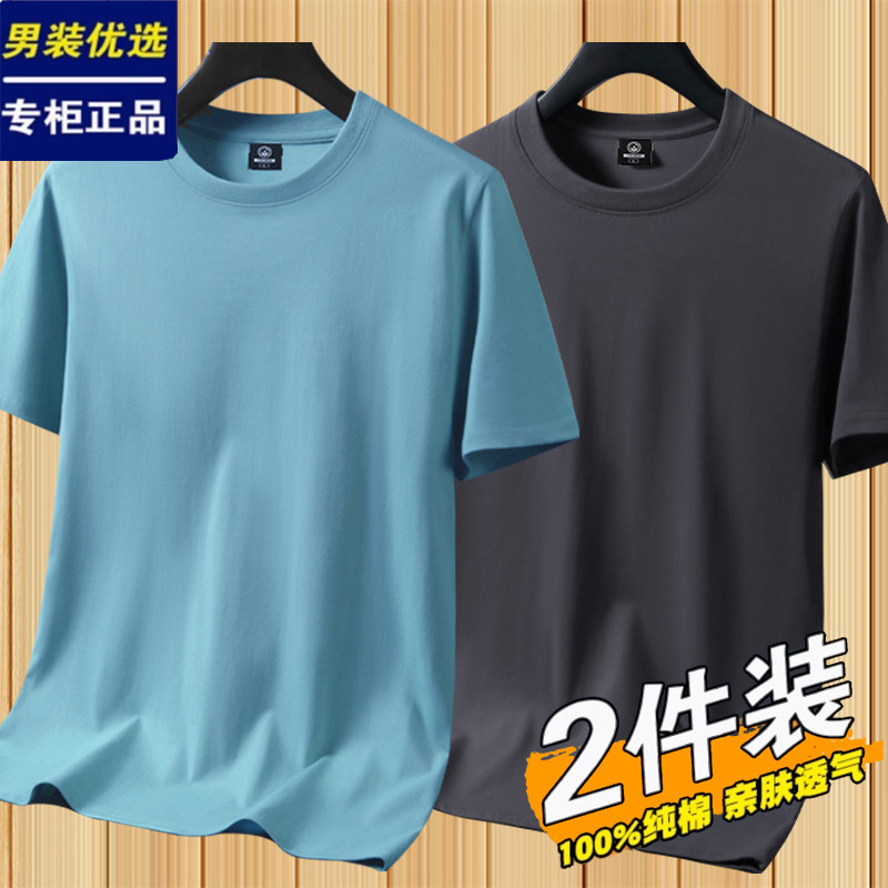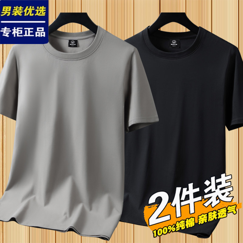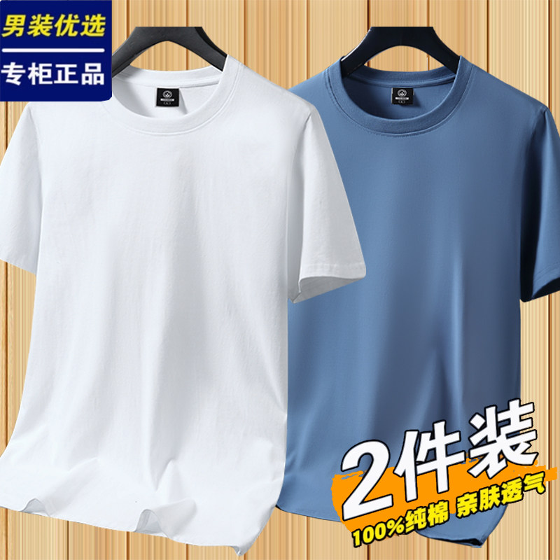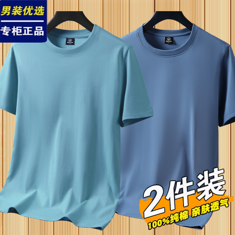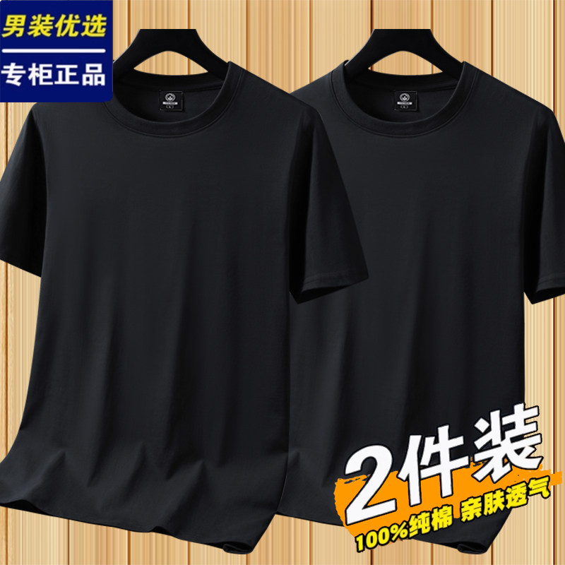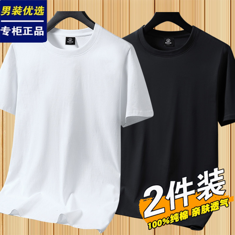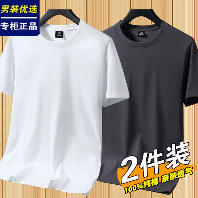HomeProducts2件100%纯棉短袖t恤男夏季新款纯色宽松大码体恤半袖打底衫T上衣