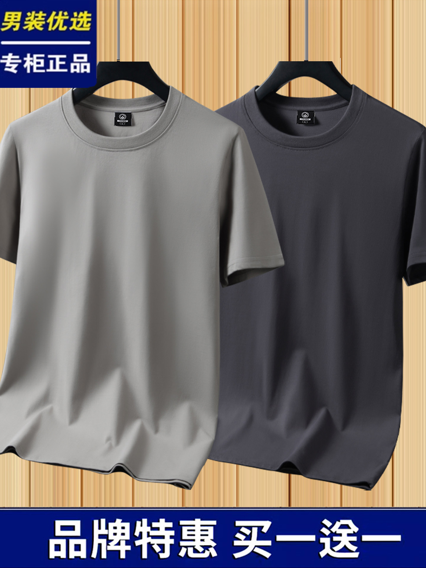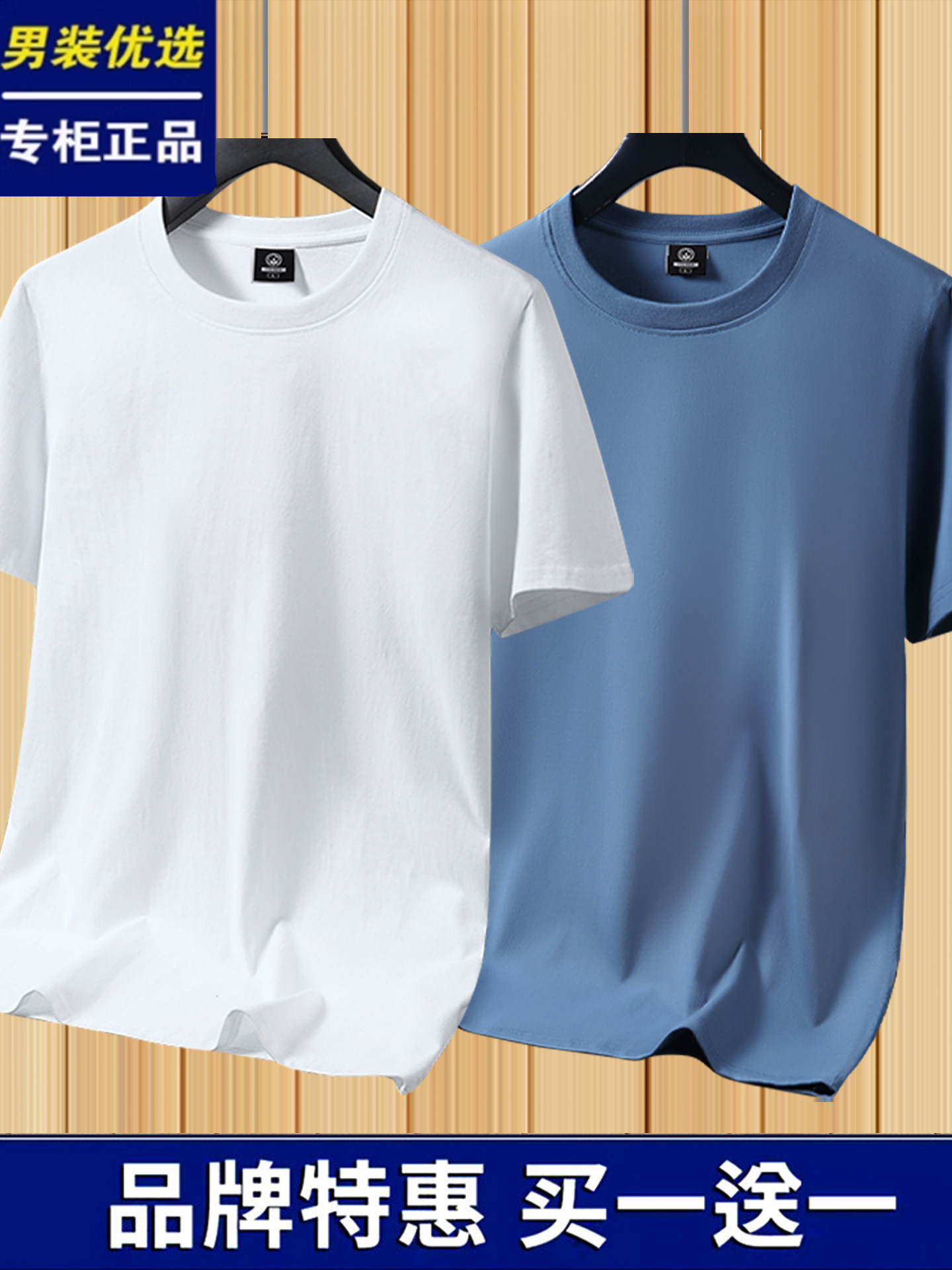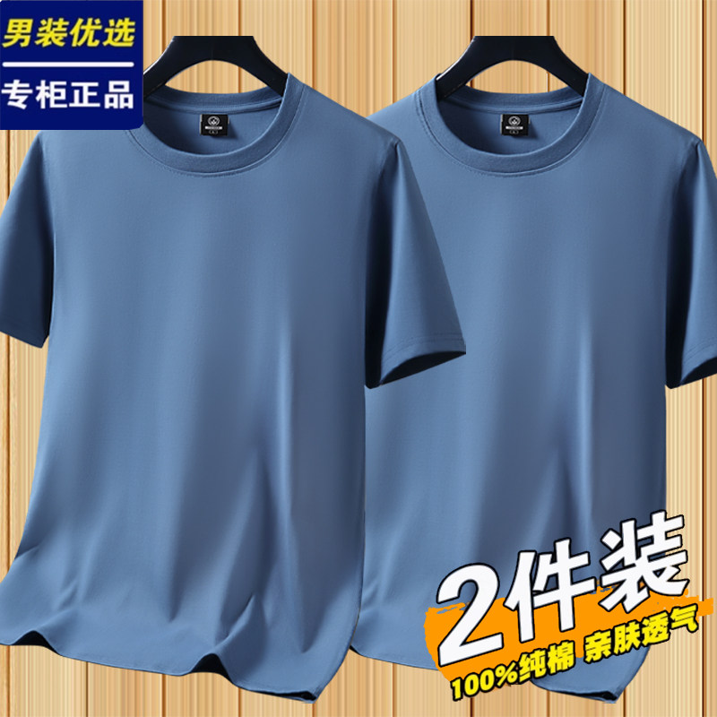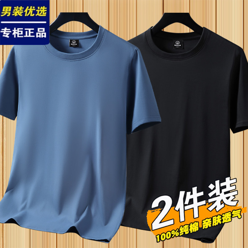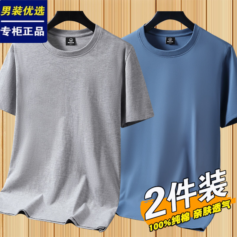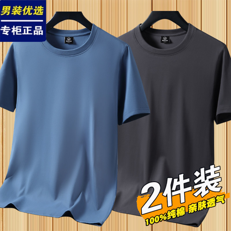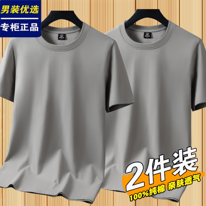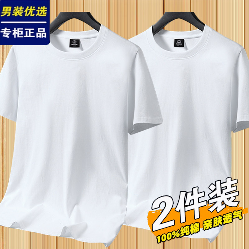 HomeProducts2件100%纯棉短袖t恤男夏季新款纯色宽松大码体恤半袖打底衫T上衣