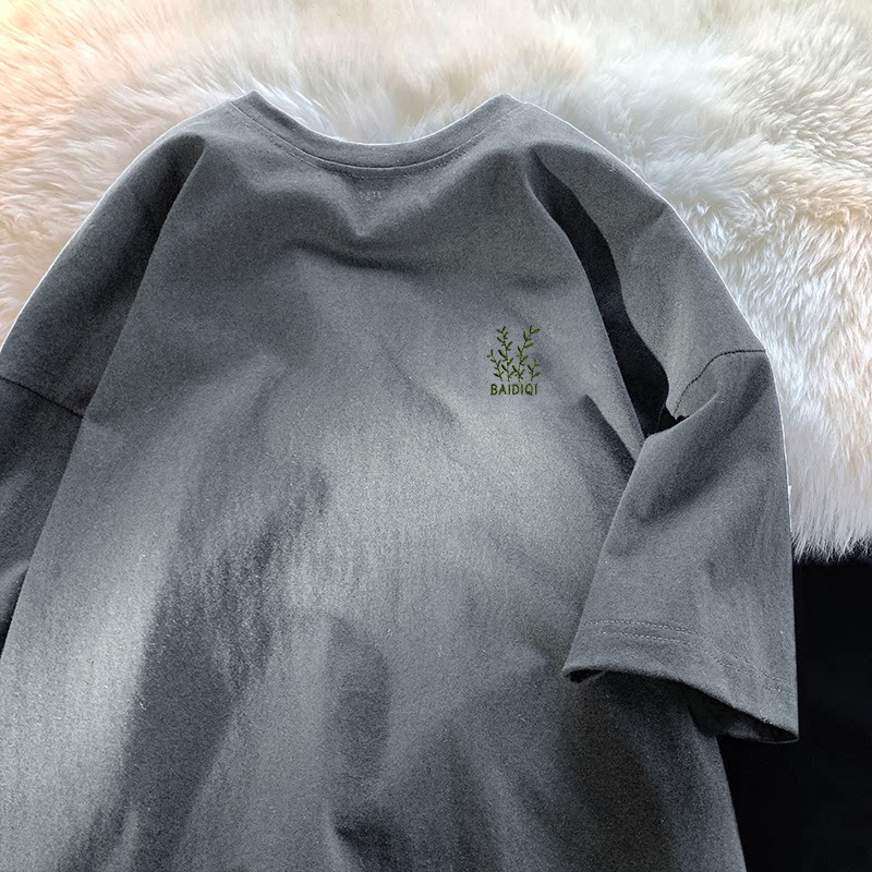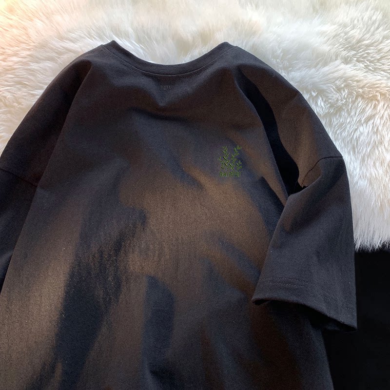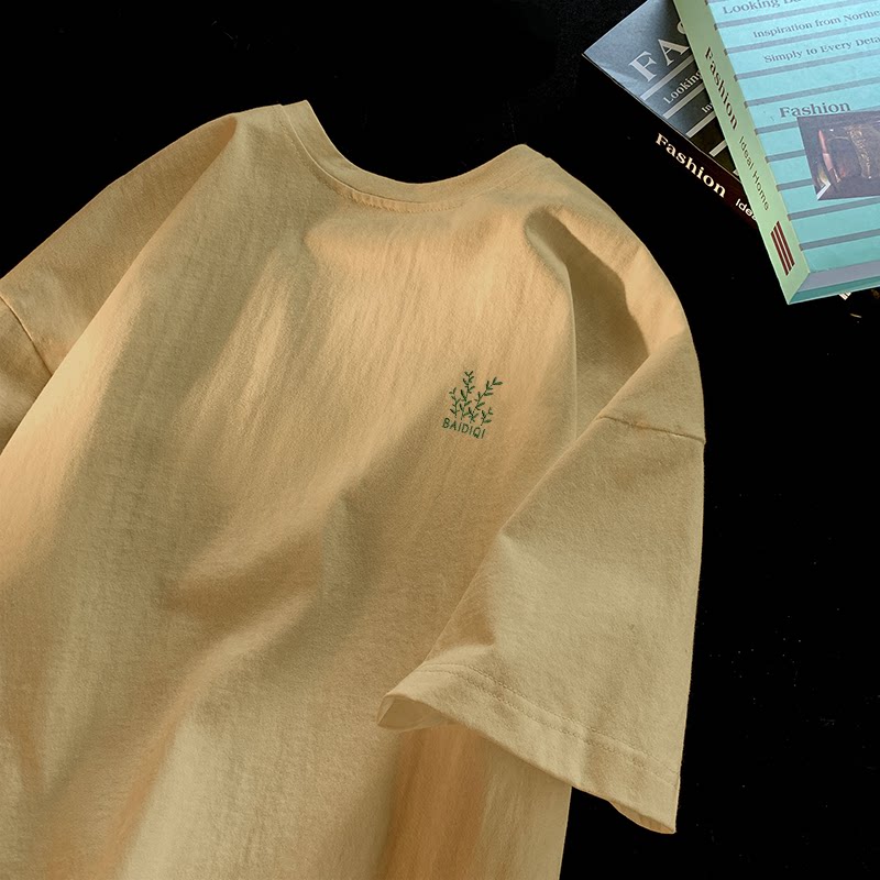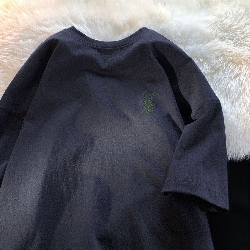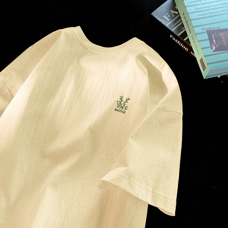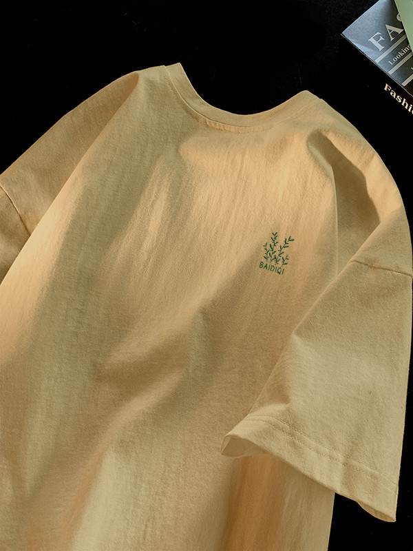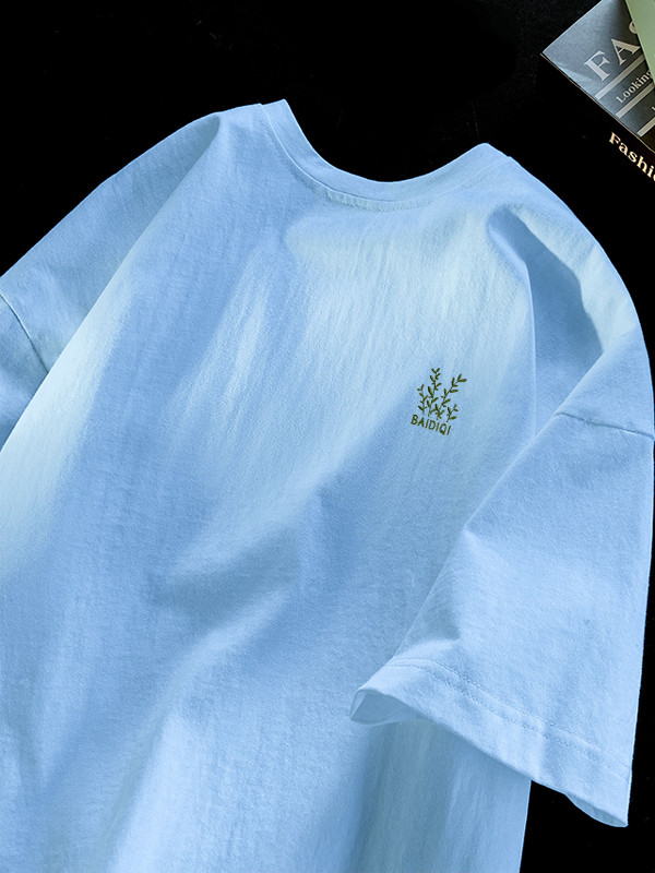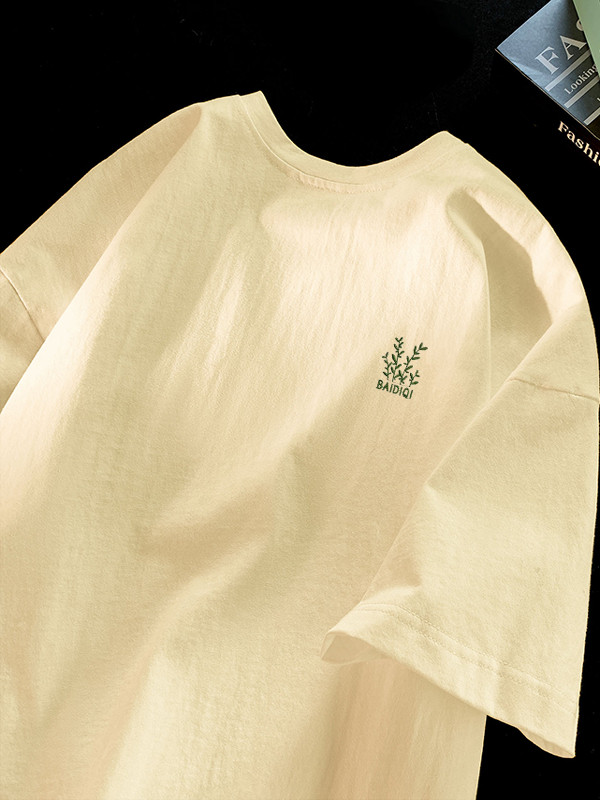 刺绣重磅100%纯棉短袖T恤男潮牌ins宽松体恤夏季树叶绣花体恤上衣