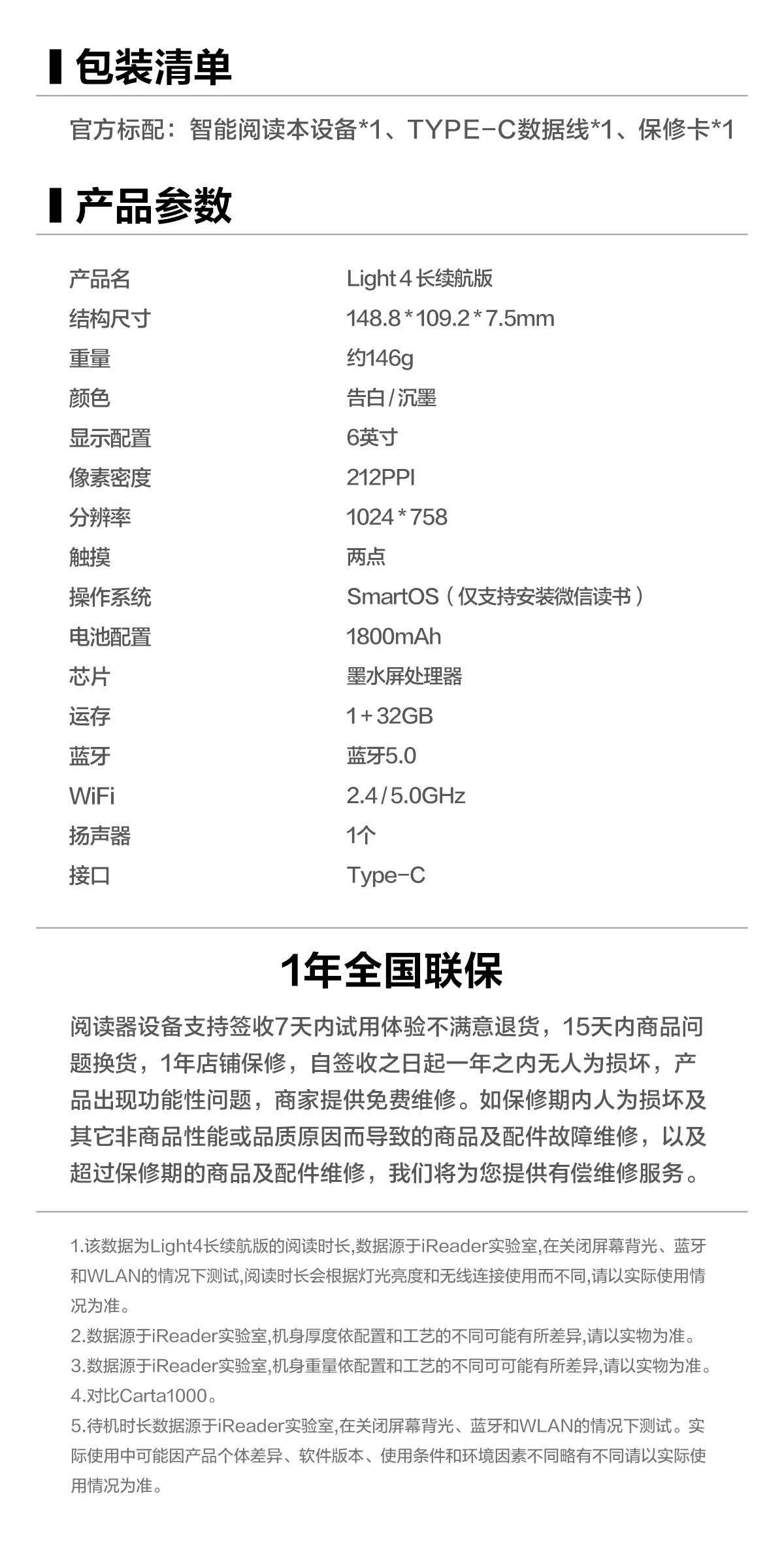 【入会立减】掌阅iReader Light4 长续航版电子书墨水屏阅读器6英寸电子纸护眼阅览器电纸书水墨屏看小说漫画