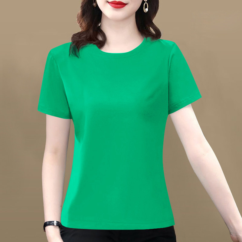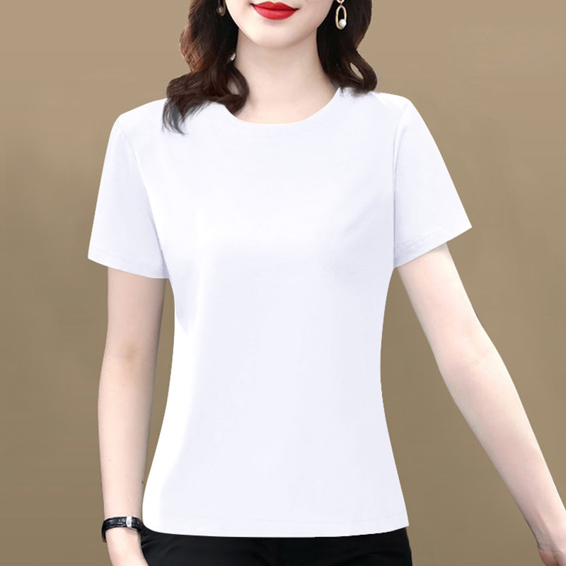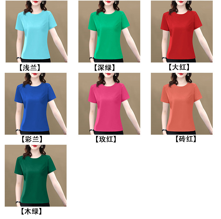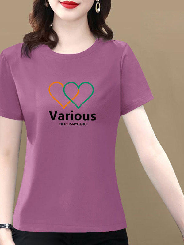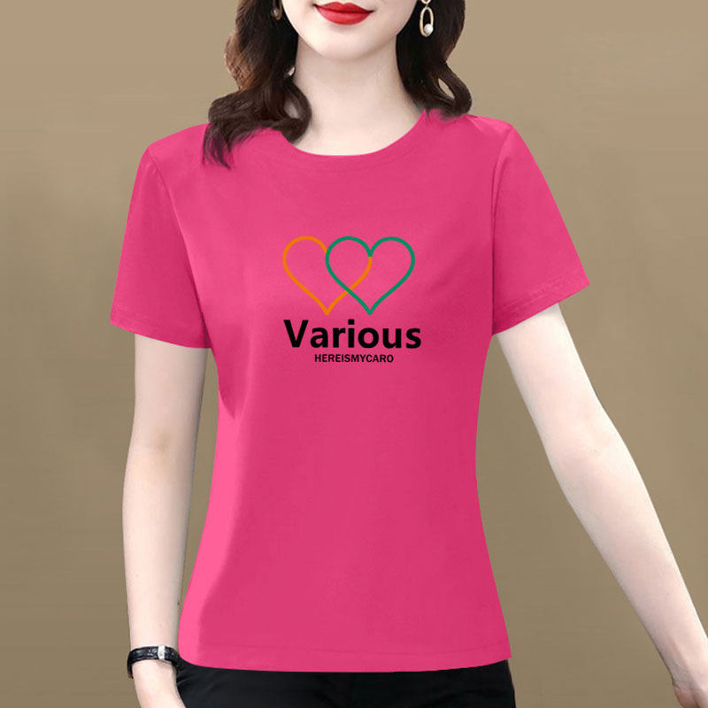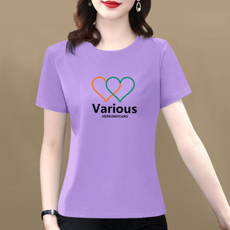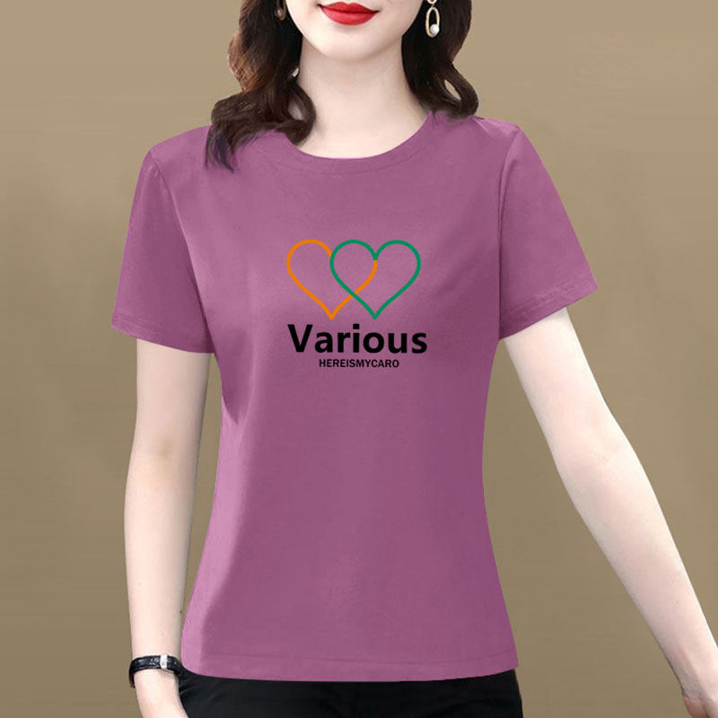 夏季纯棉大码短袖t恤女装新款时尚圆领印花妈妈上衣中年遮肚小衫