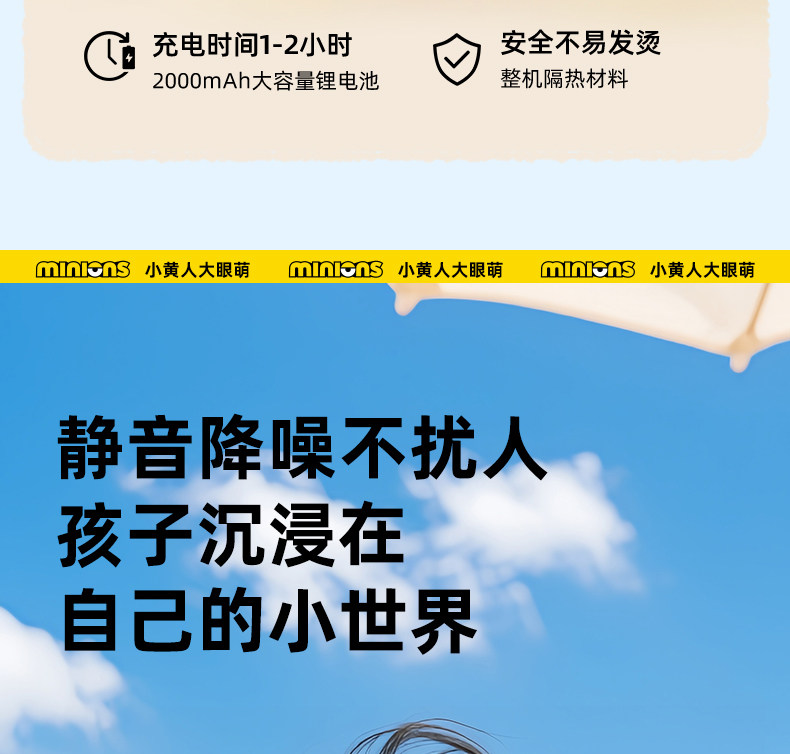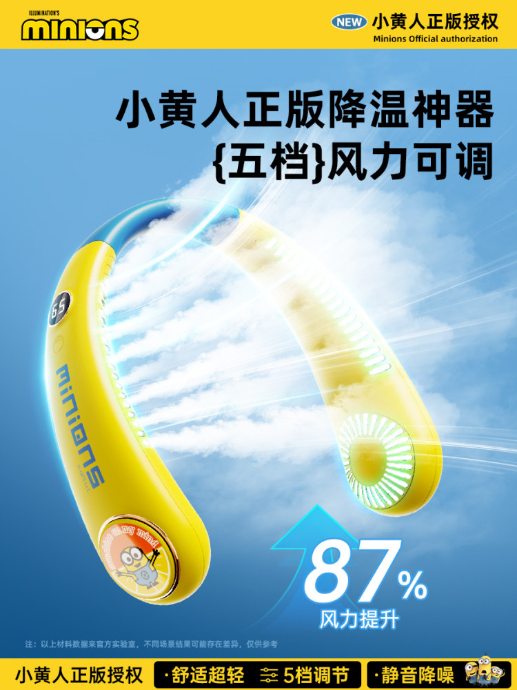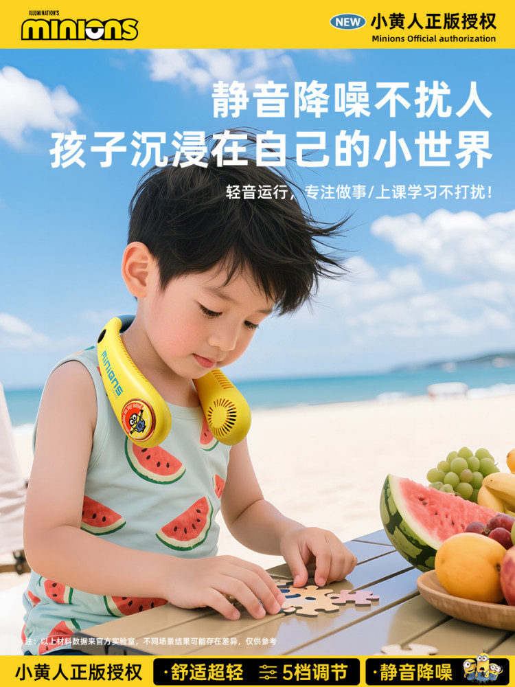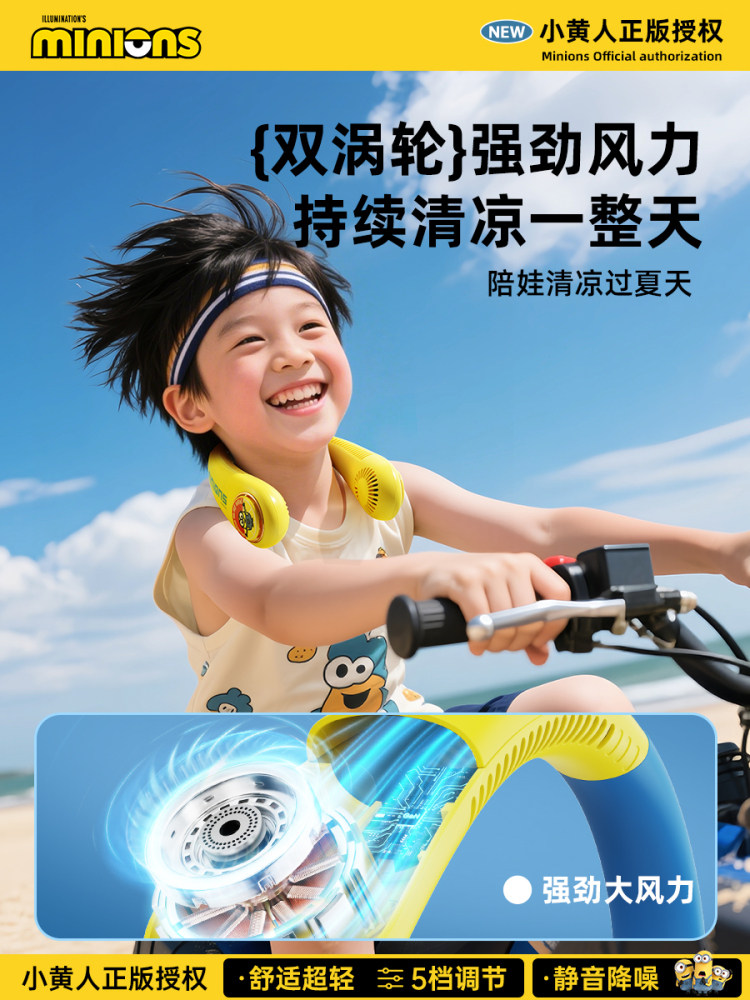 正版授权I小黄人【儿童款】5档风速+智能数显+舒适超轻1