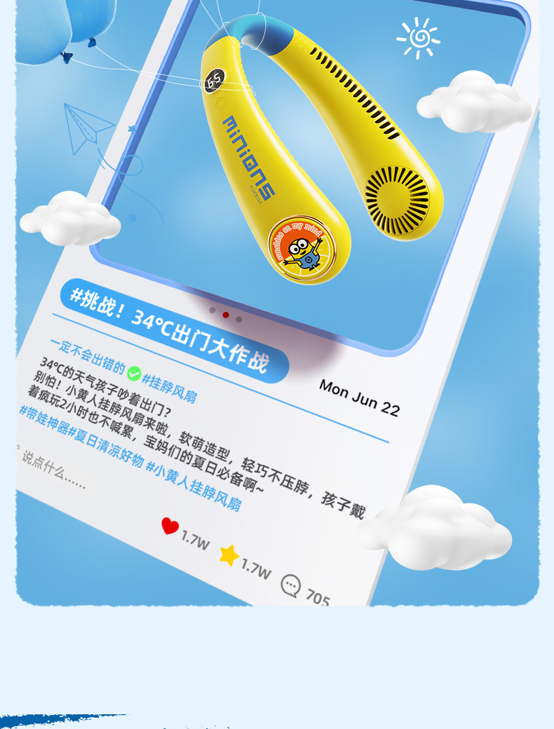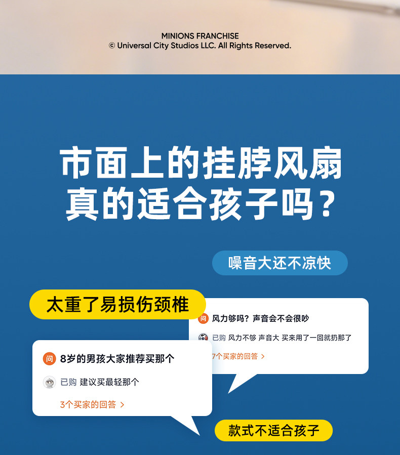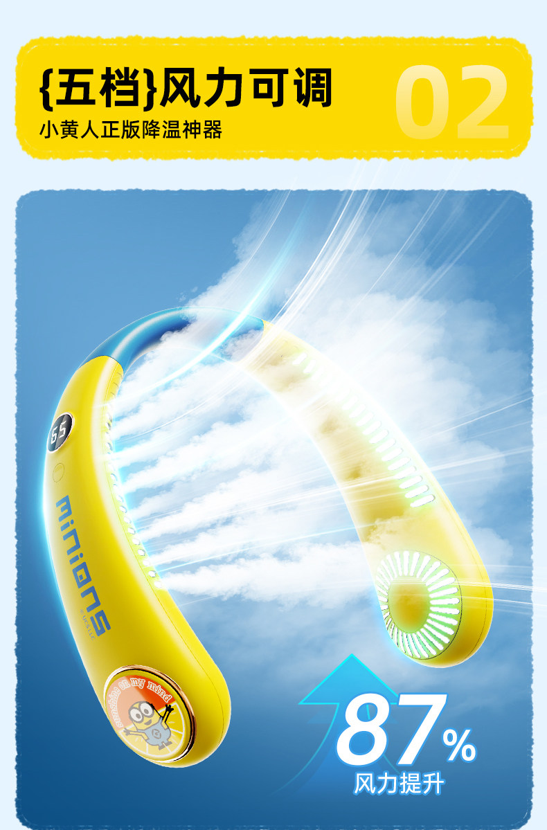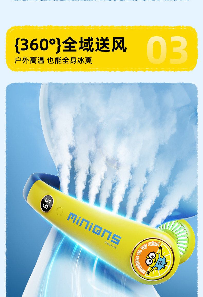 正版授权I小黄人【儿童款】5档风速+智能数显+舒适超轻1