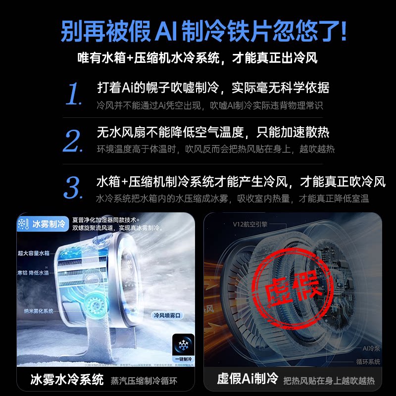 【警惕Ai制冷骗局】无水冷制冷系统吹冷风都是耍流氓!高温天气越吹越热! / 3600mAh