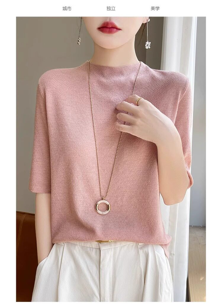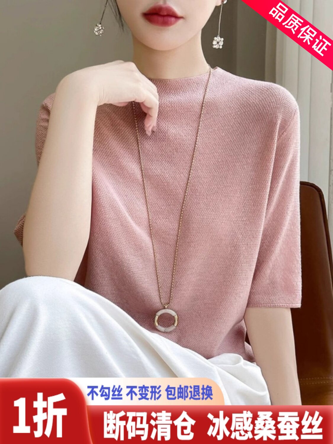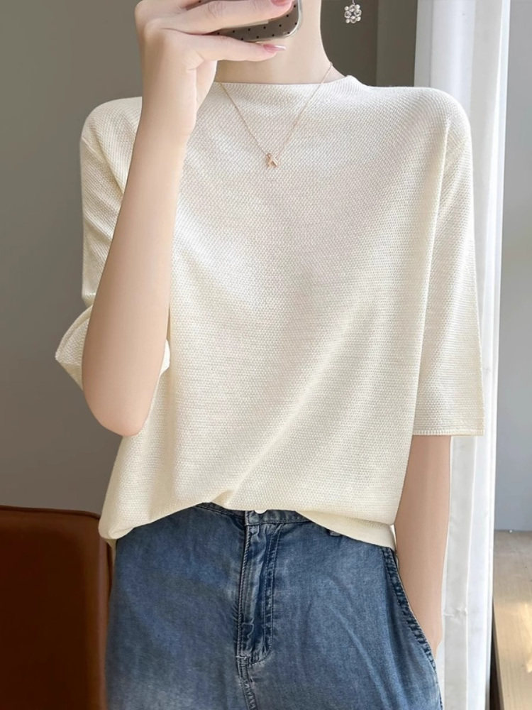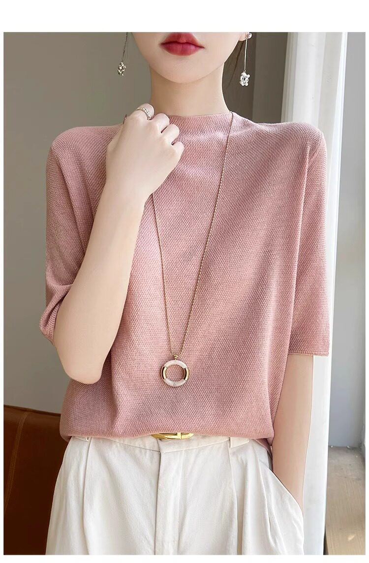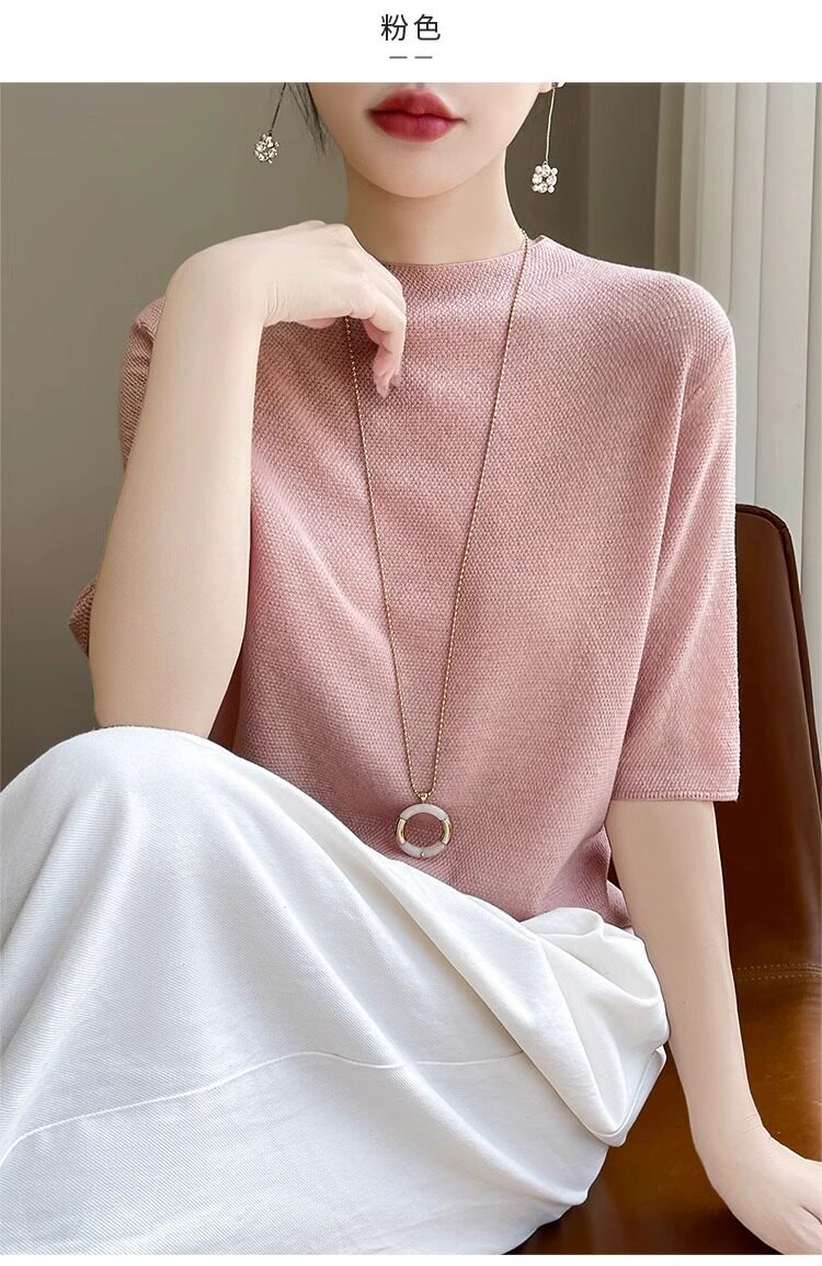 桑蚕丝短袖t恤女夏季2026新款爆款时尚宽松显瘦大码冰丝针织上衣