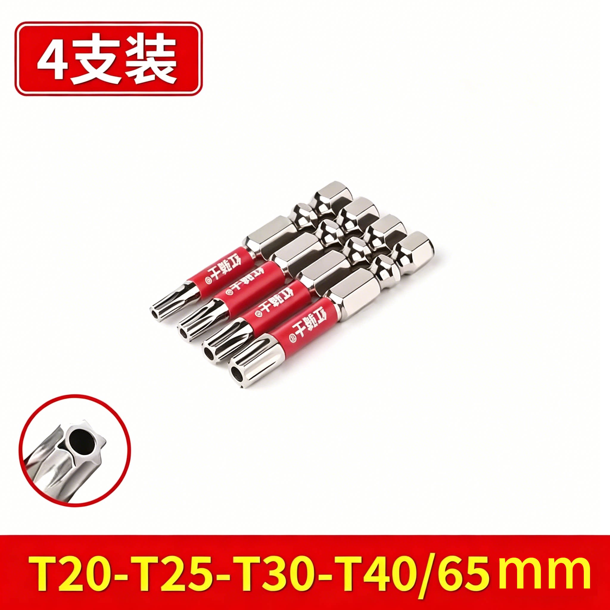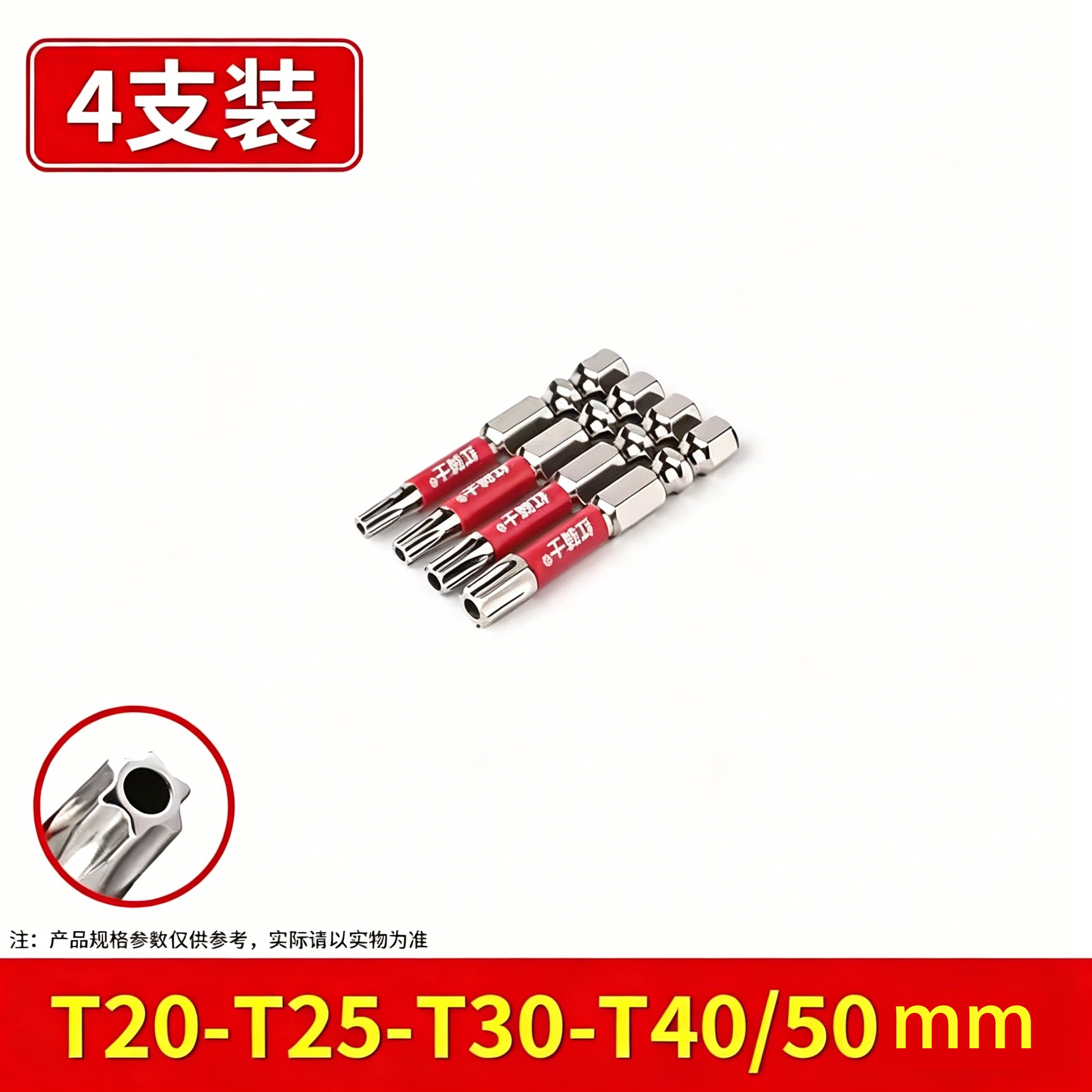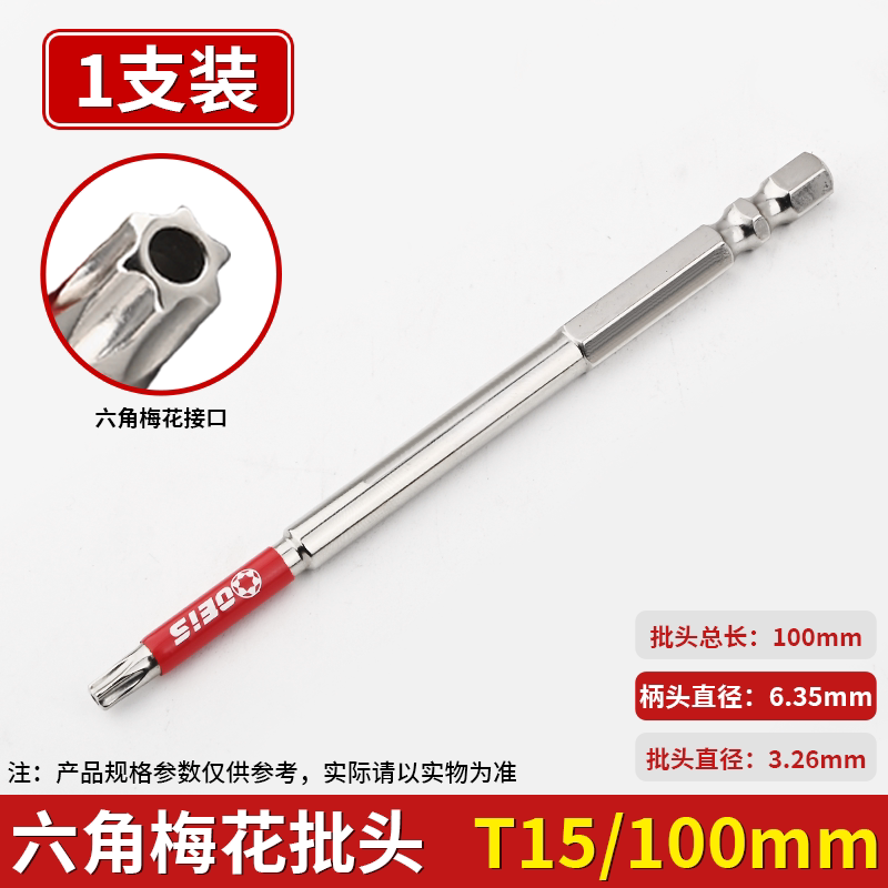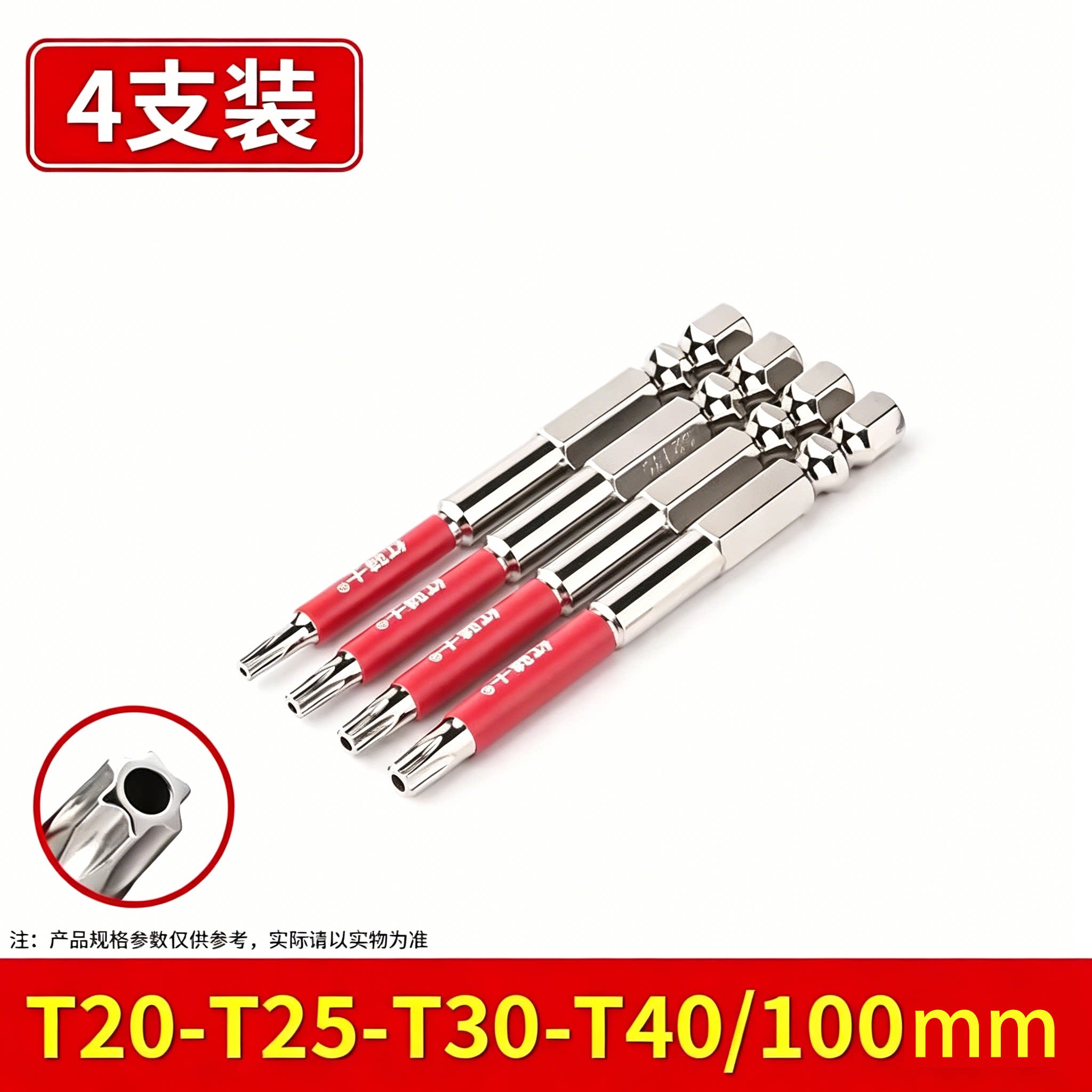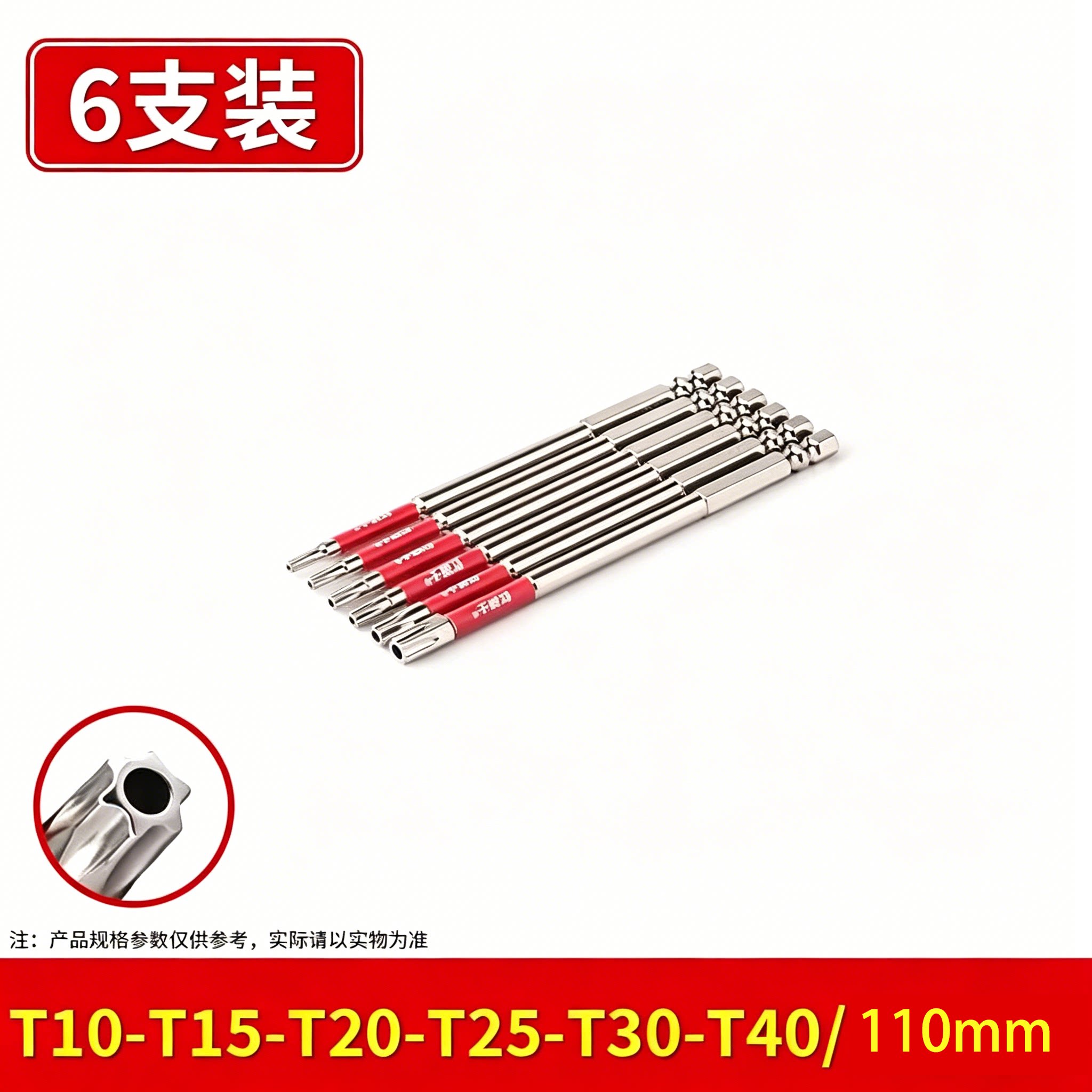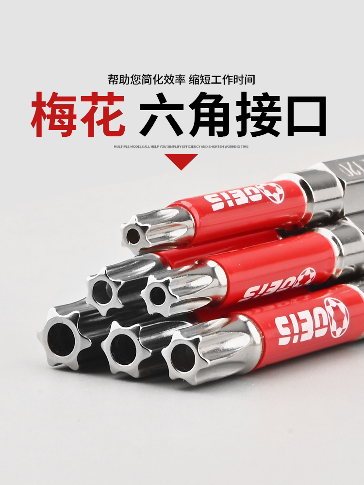 带孔梅花批头加长强磁内六角手电钻风批套装高硬度S2合金钢起子头