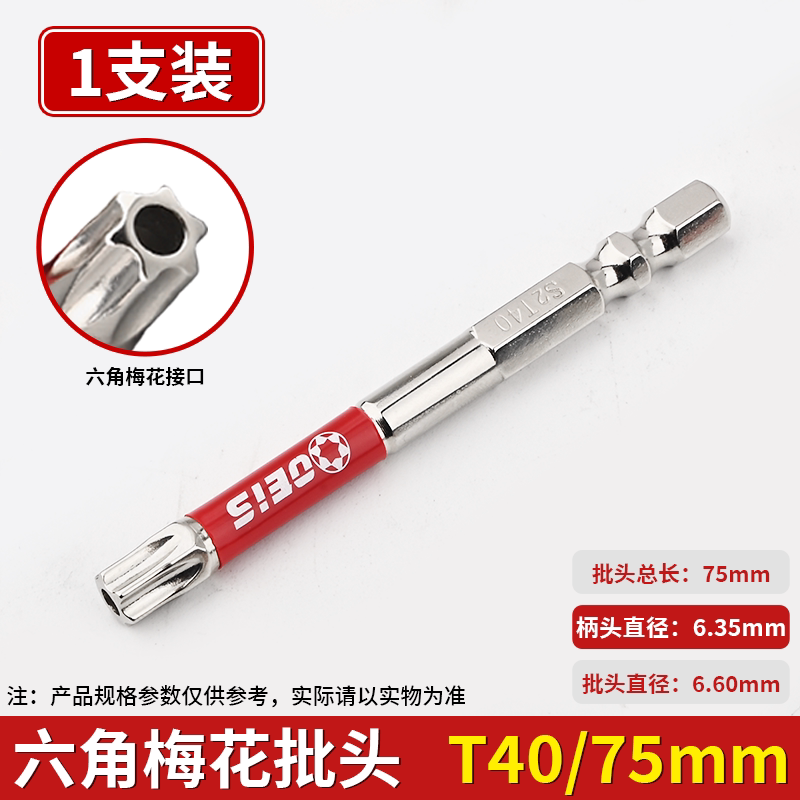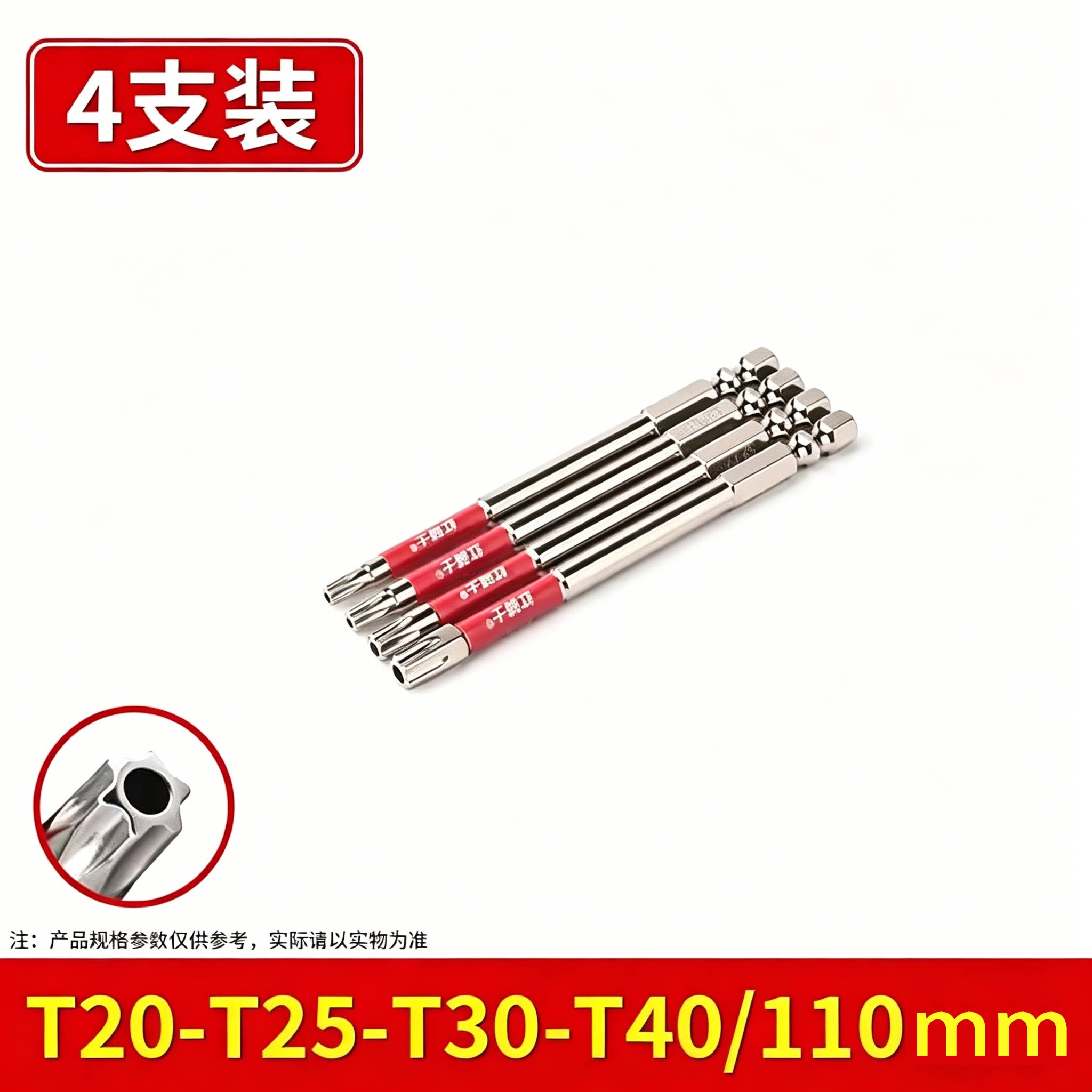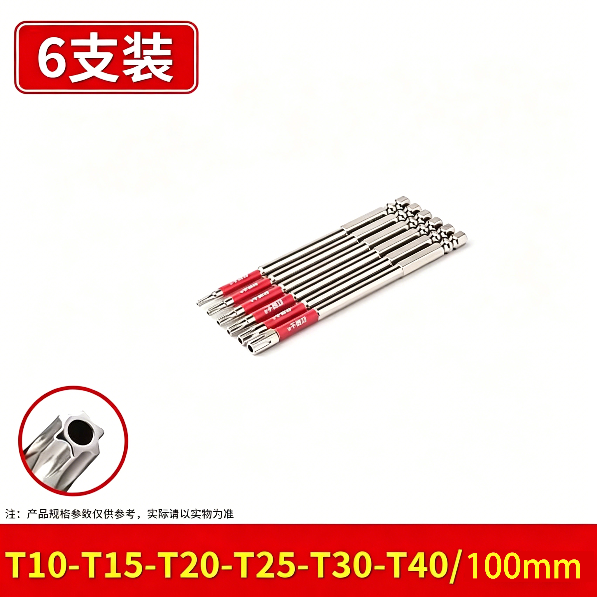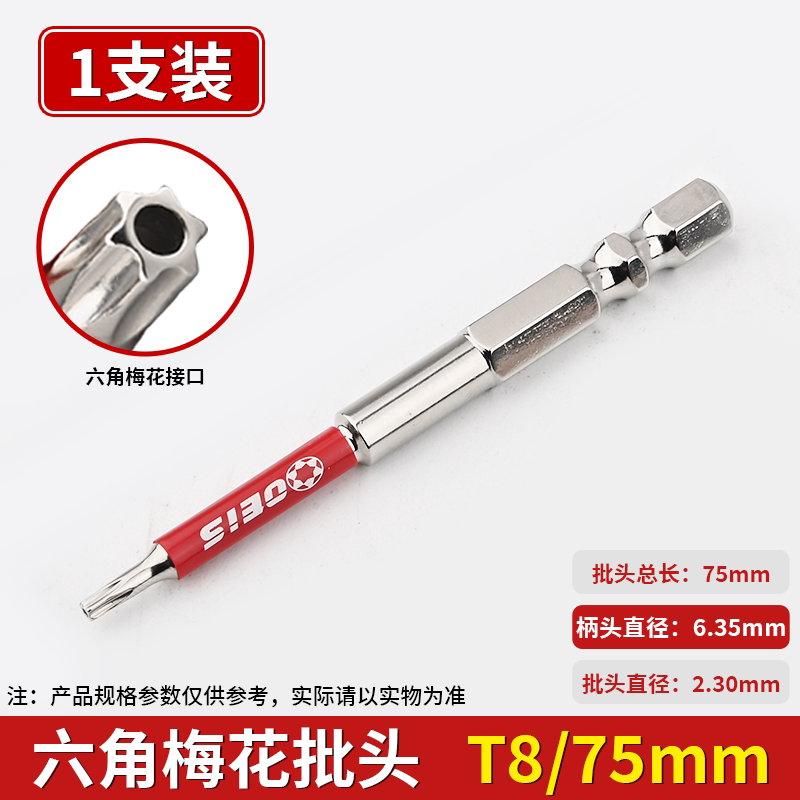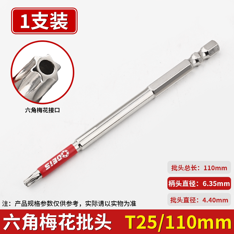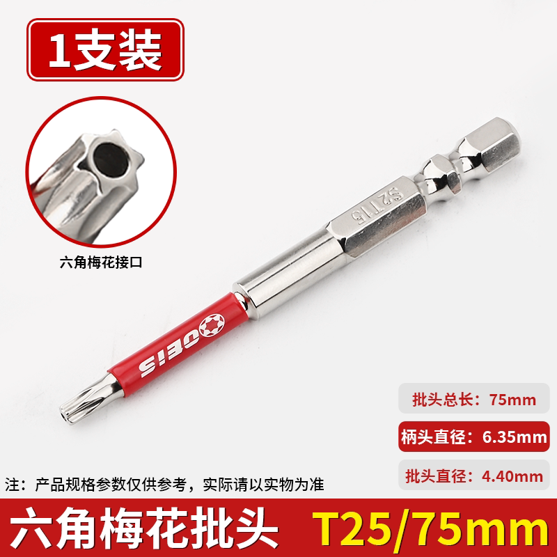 带孔梅花批头加长强磁内六角手电钻风批套装高硬度S2合金钢起子头