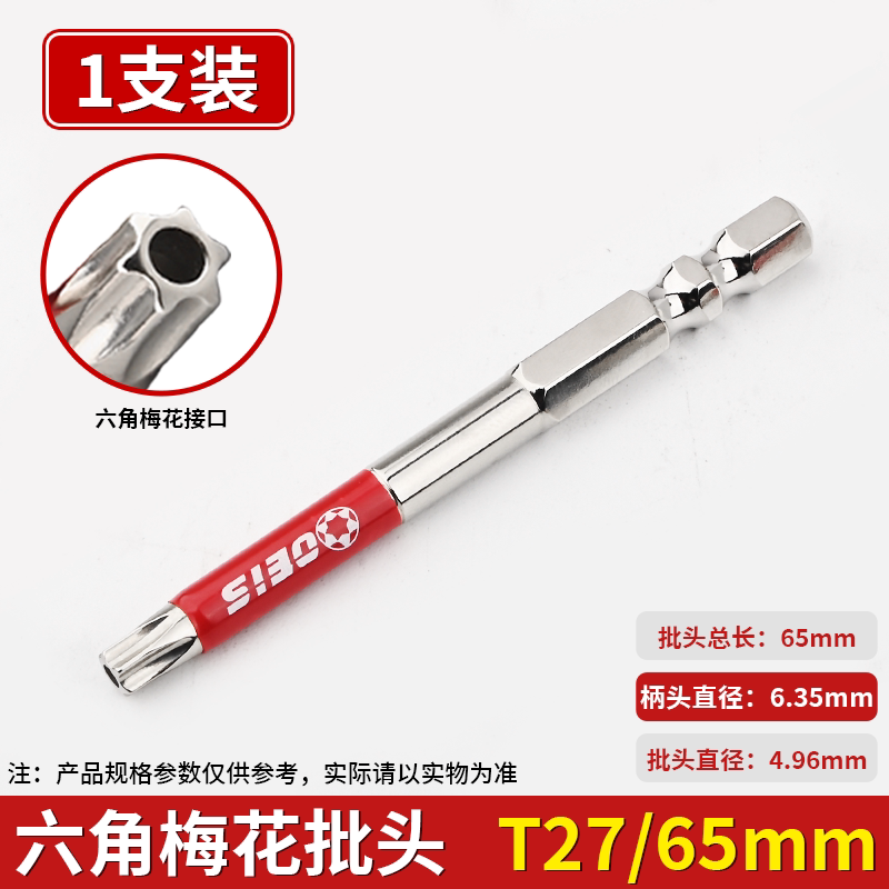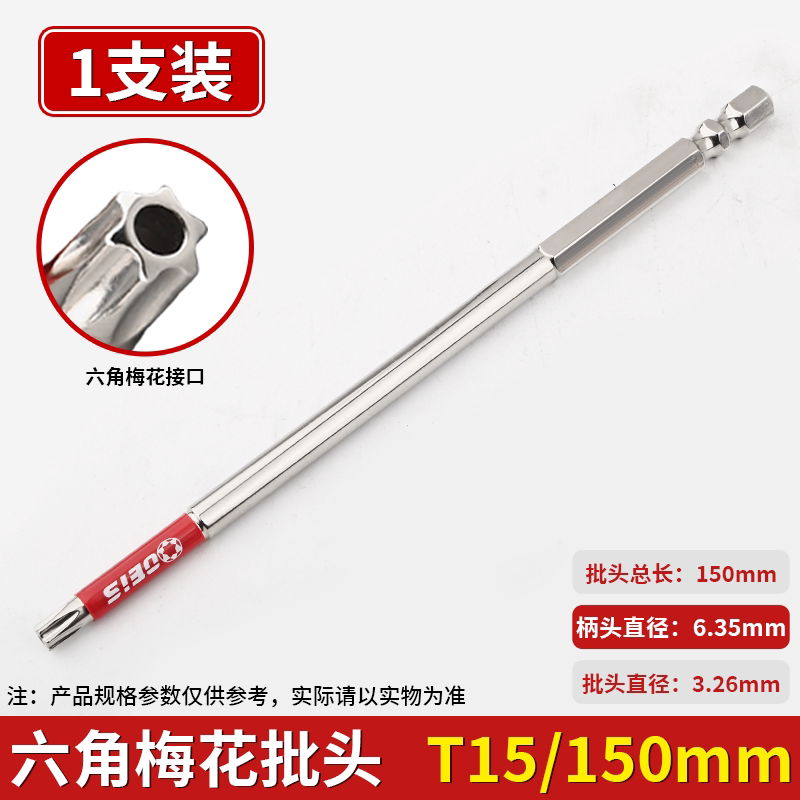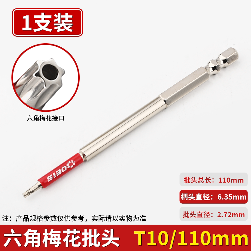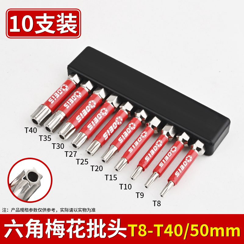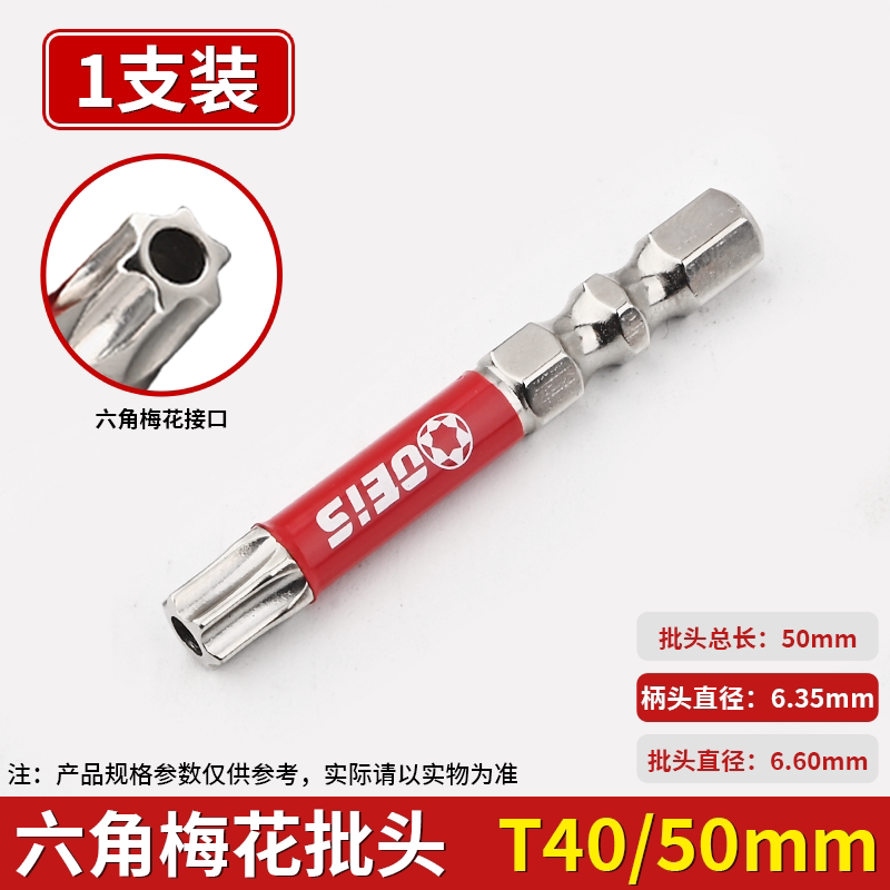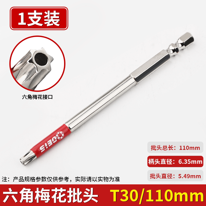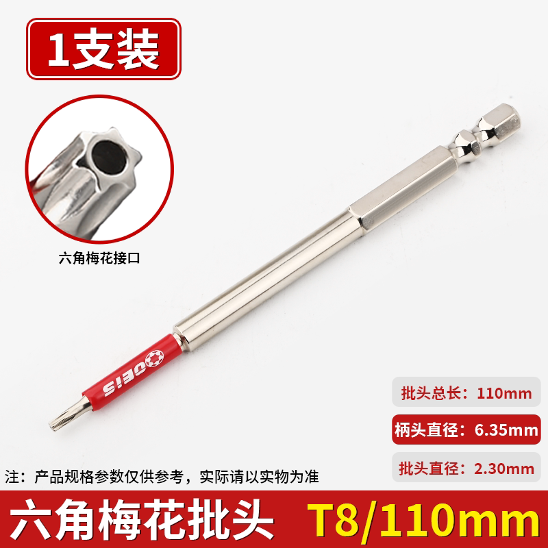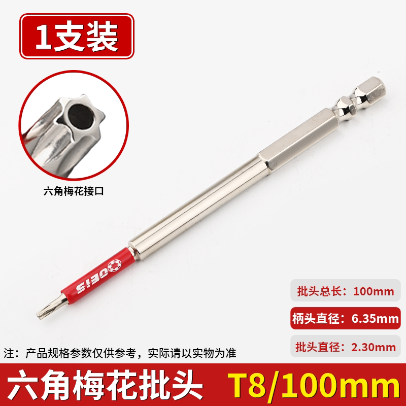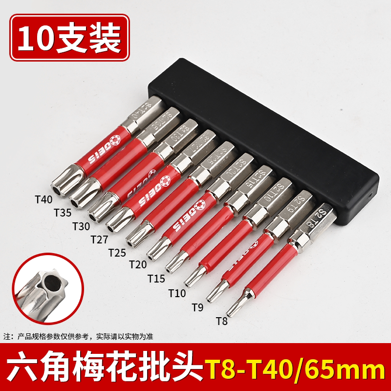 带孔梅花批头加长强磁内六角手电钻风批套装高硬度S2合金钢起子头