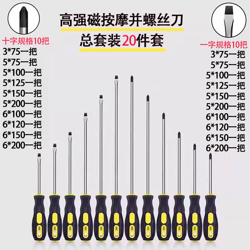 工业级螺丝刀十字一字高硬度强磁梅花螺丝批套装平口起子手动改锥