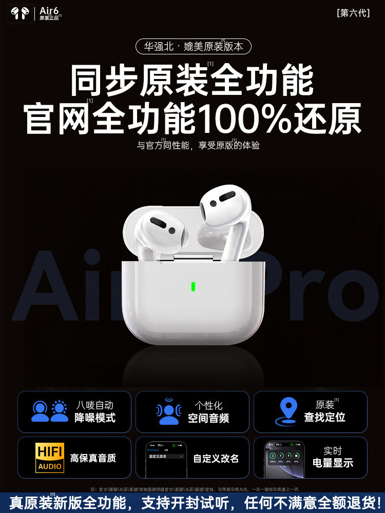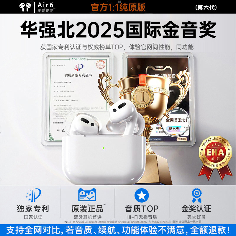 HomeProducts蓝牙耳机2026新款华强北六代高音质无线运动降噪顶配Air6原装正品