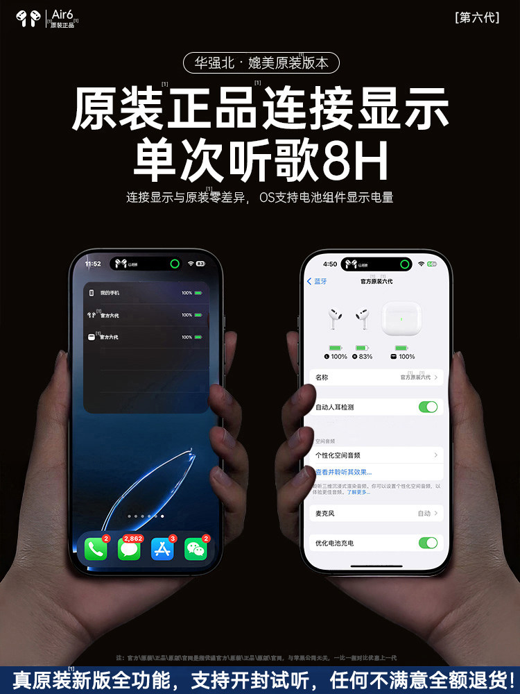 蓝牙耳机2026新款华强北六代高音质无线运动降噪顶配Air6原装正品