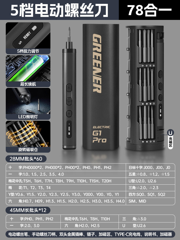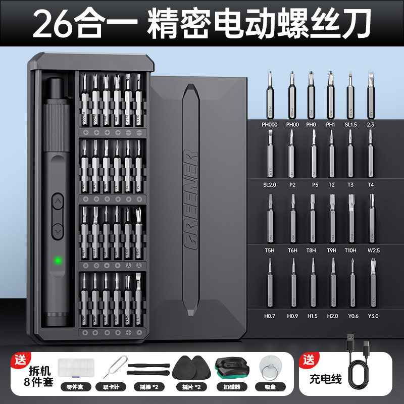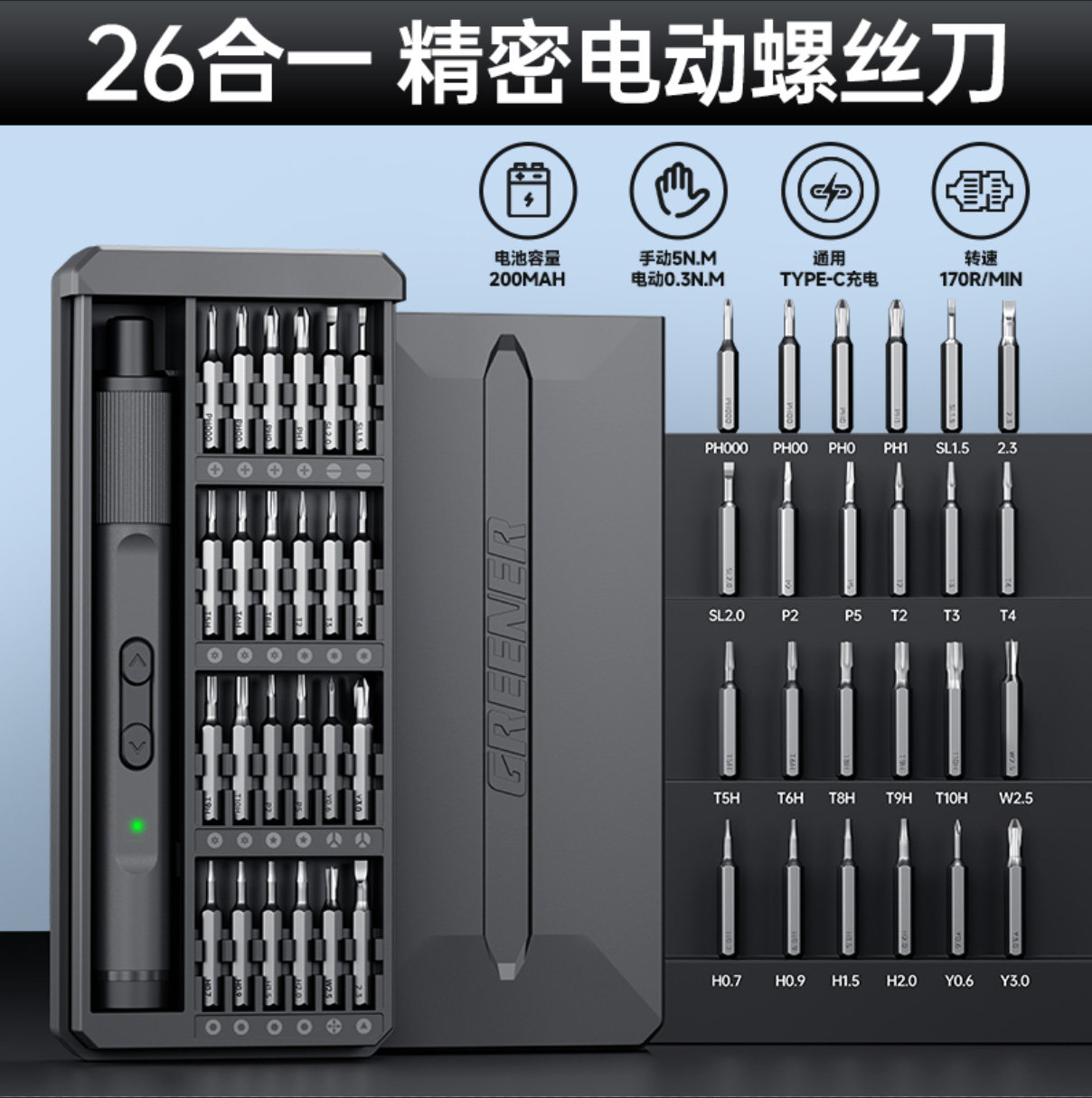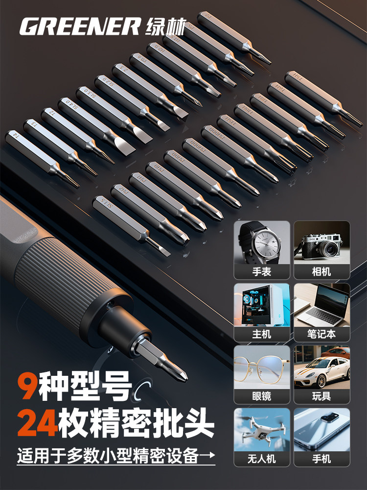 绿林电动螺丝刀充电式小型家用多功能锂电精密拆机小起子工具套装