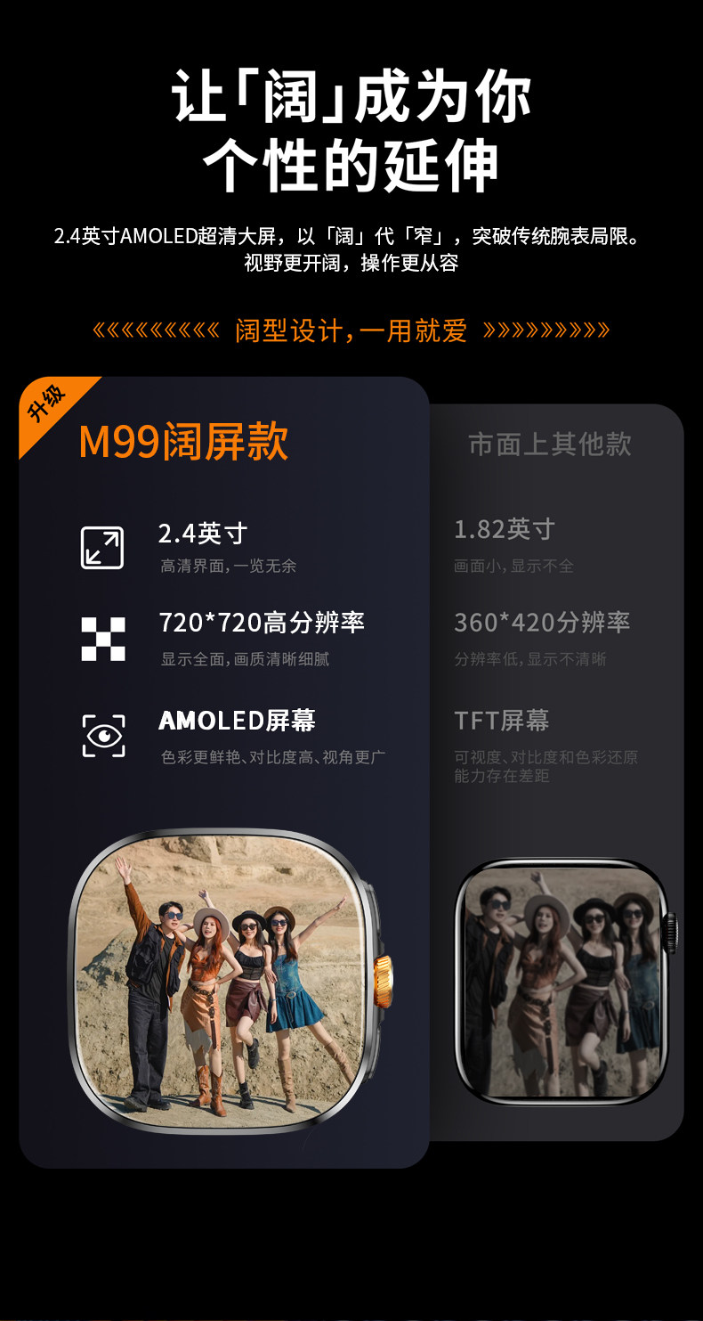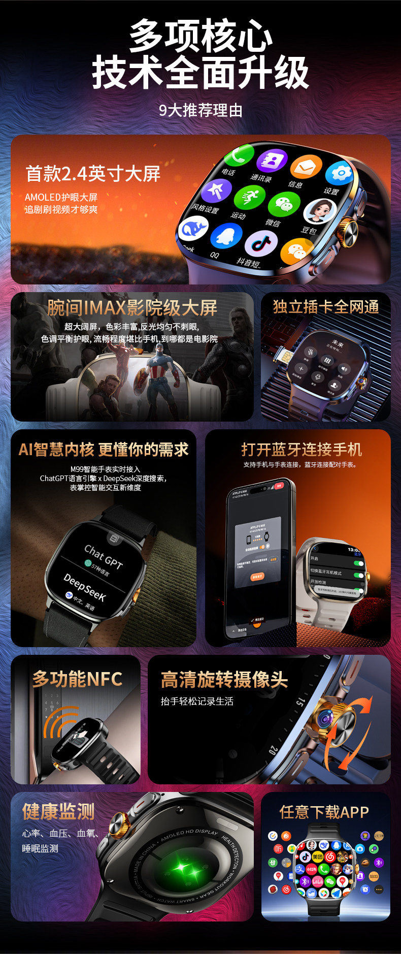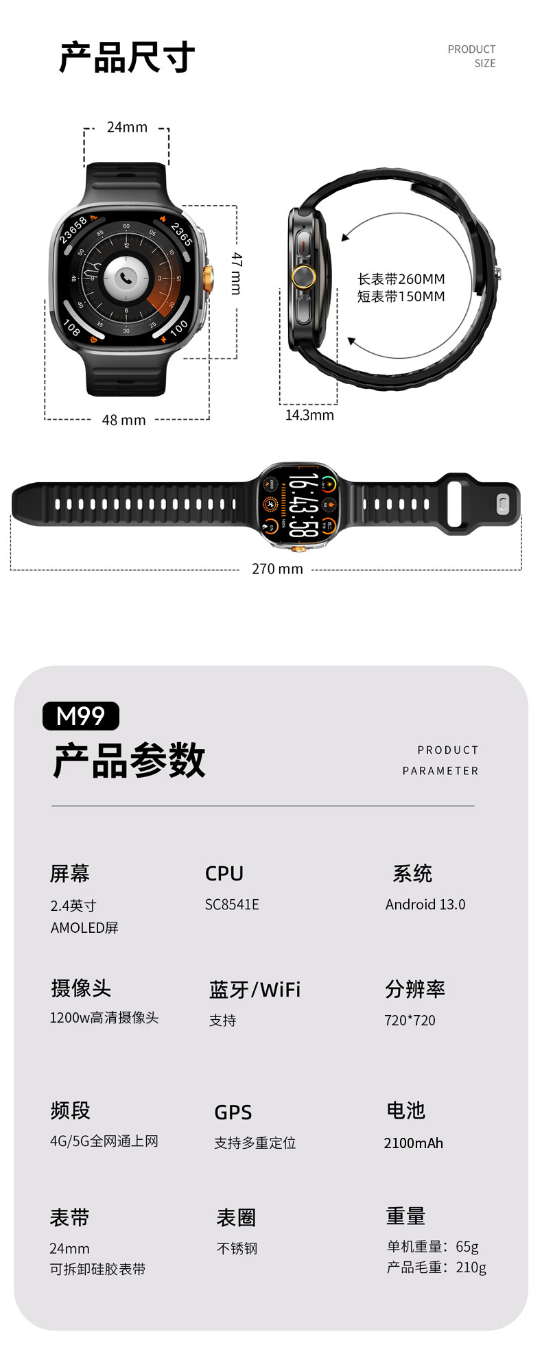 M99阔屏大屏双系统电话手表可插卡智能华强北海思酷国际海外版
