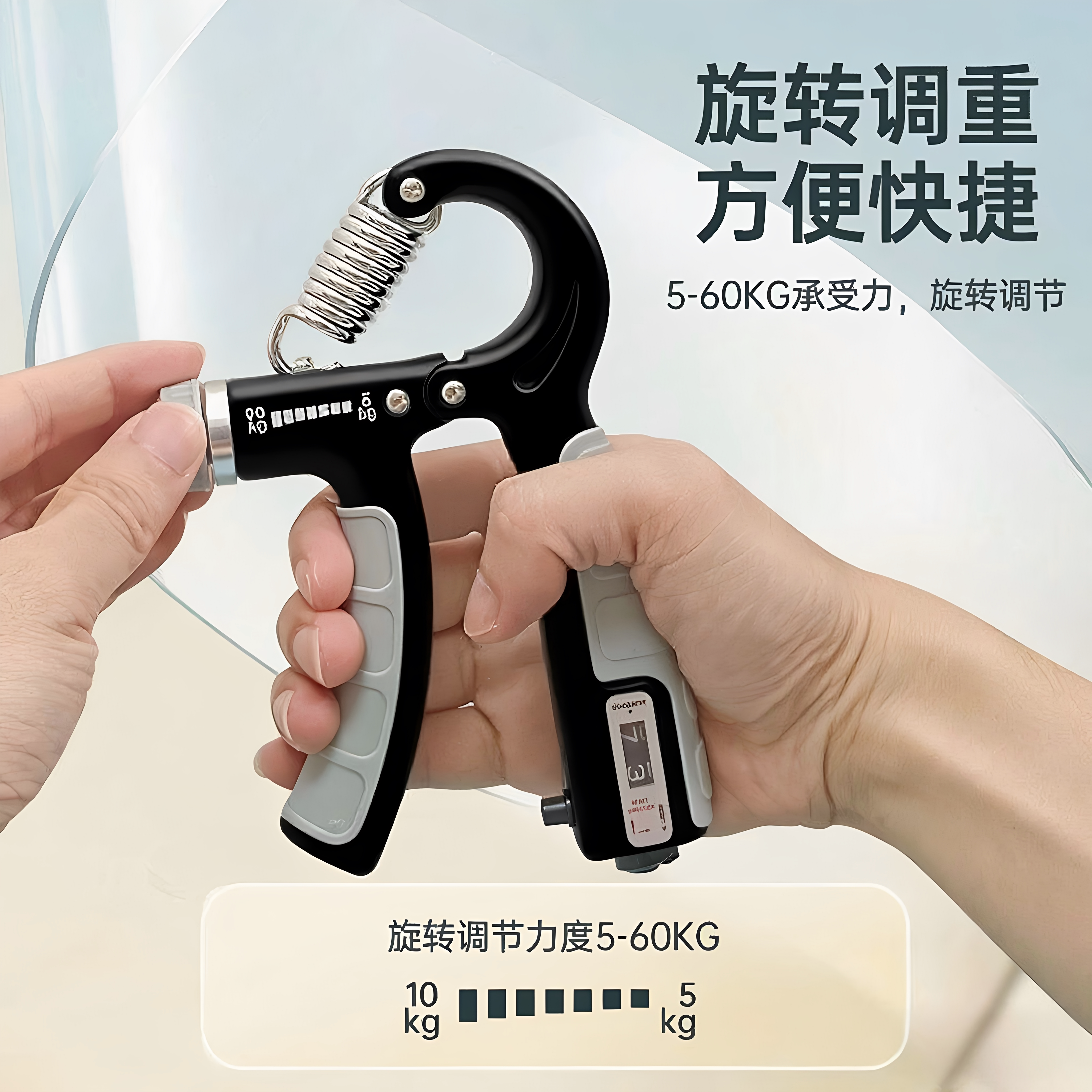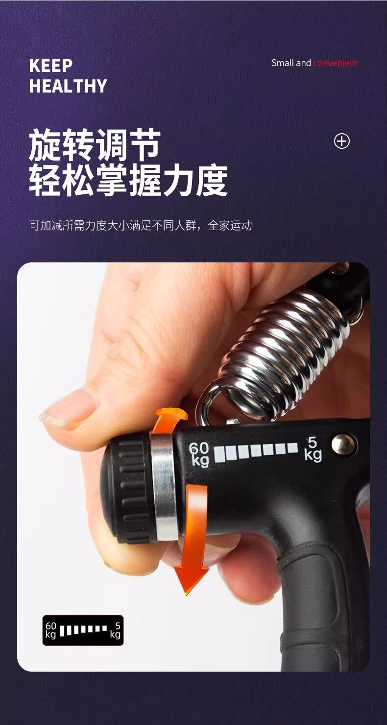 握力器男家用可调节5-60kg成人学生健身器材计数手练肌肉腕力器材