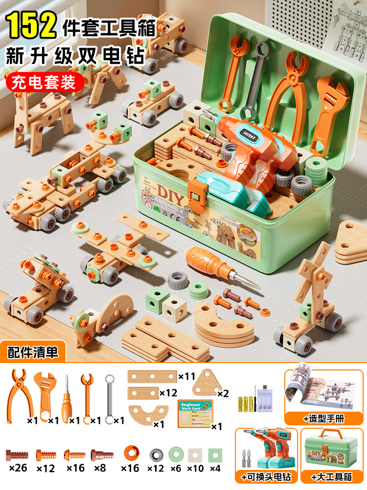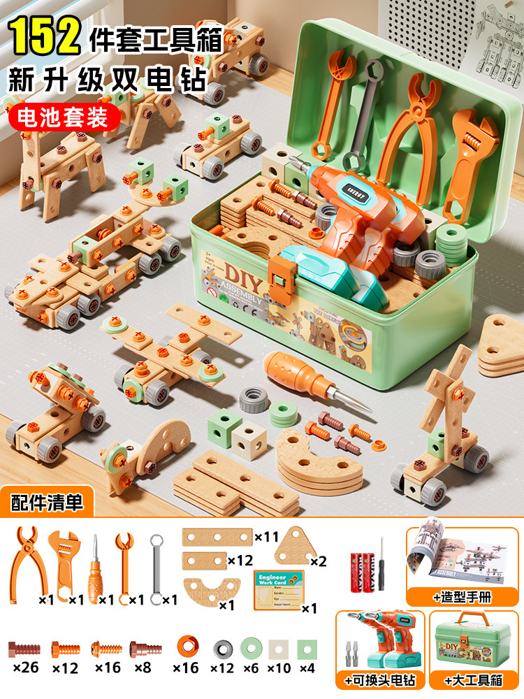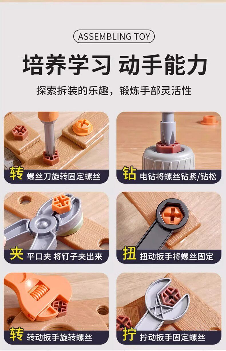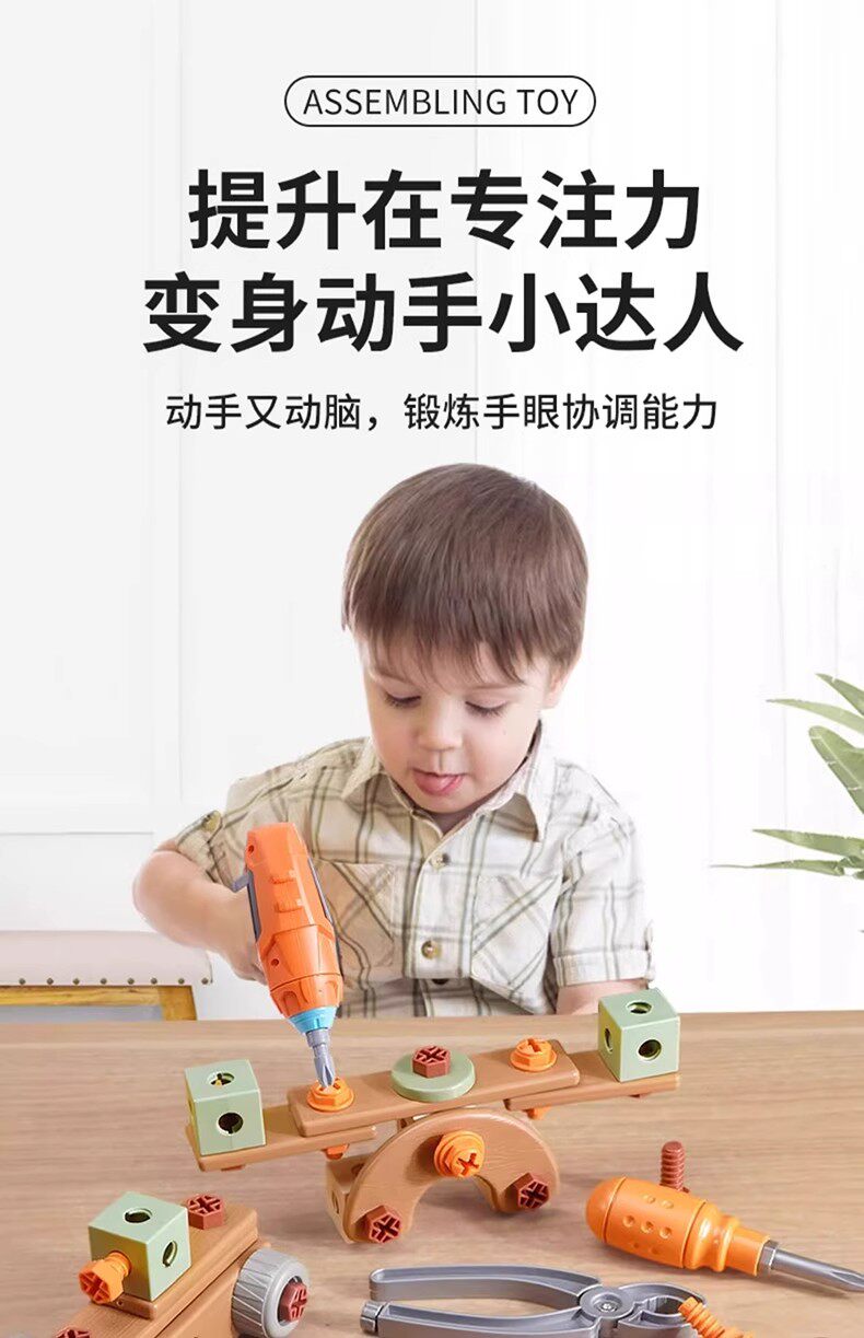 HomeProducts儿童拧螺丝刀维修工具箱玩具可拆卸电钻组装益智3到6男孩生日礼物