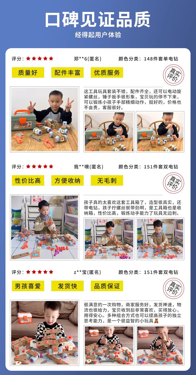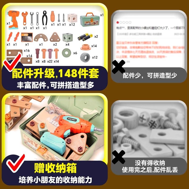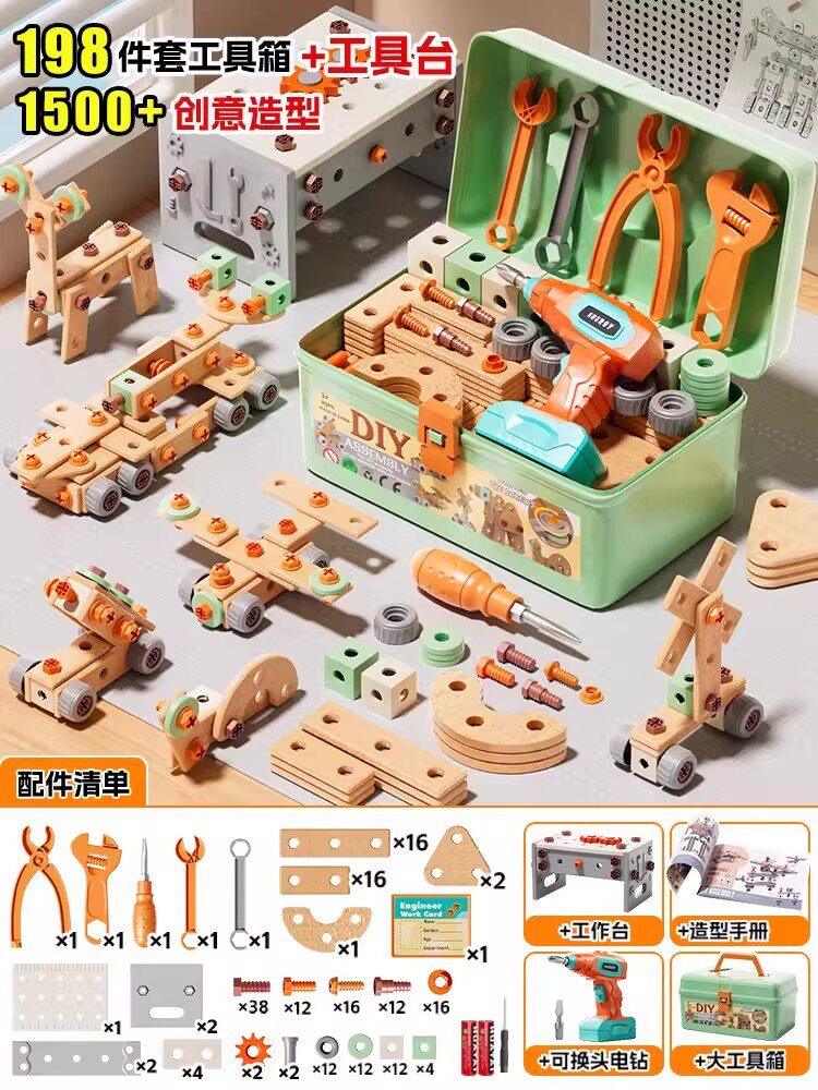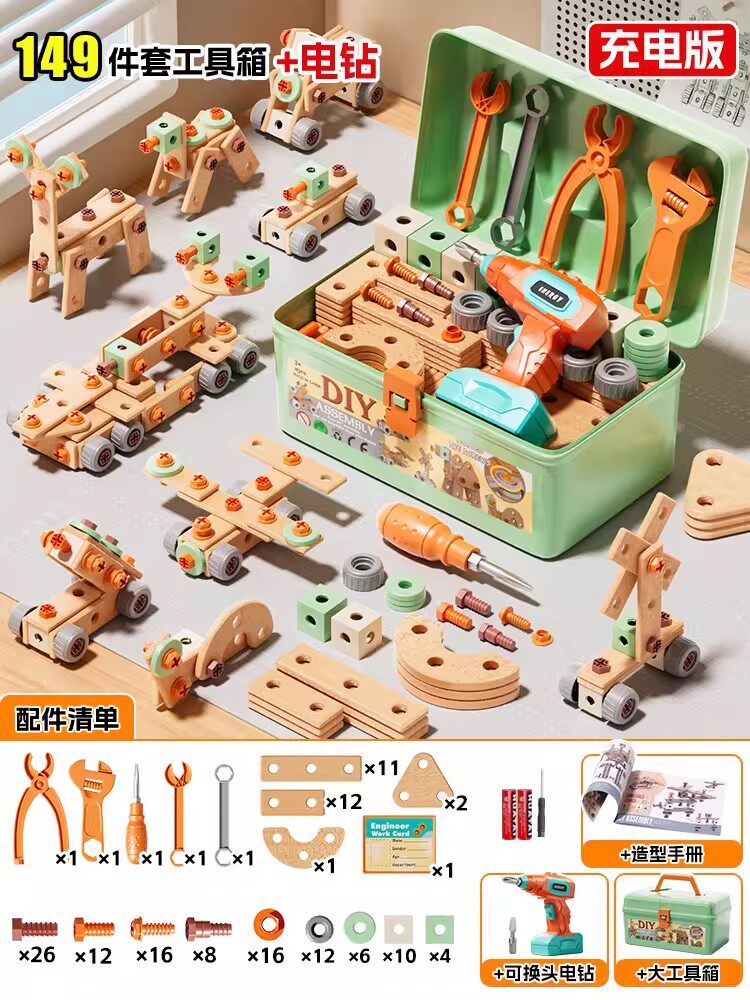HomeProducts儿童拧螺丝刀维修工具箱玩具可拆卸电钻组装益智3到6男孩生日礼物