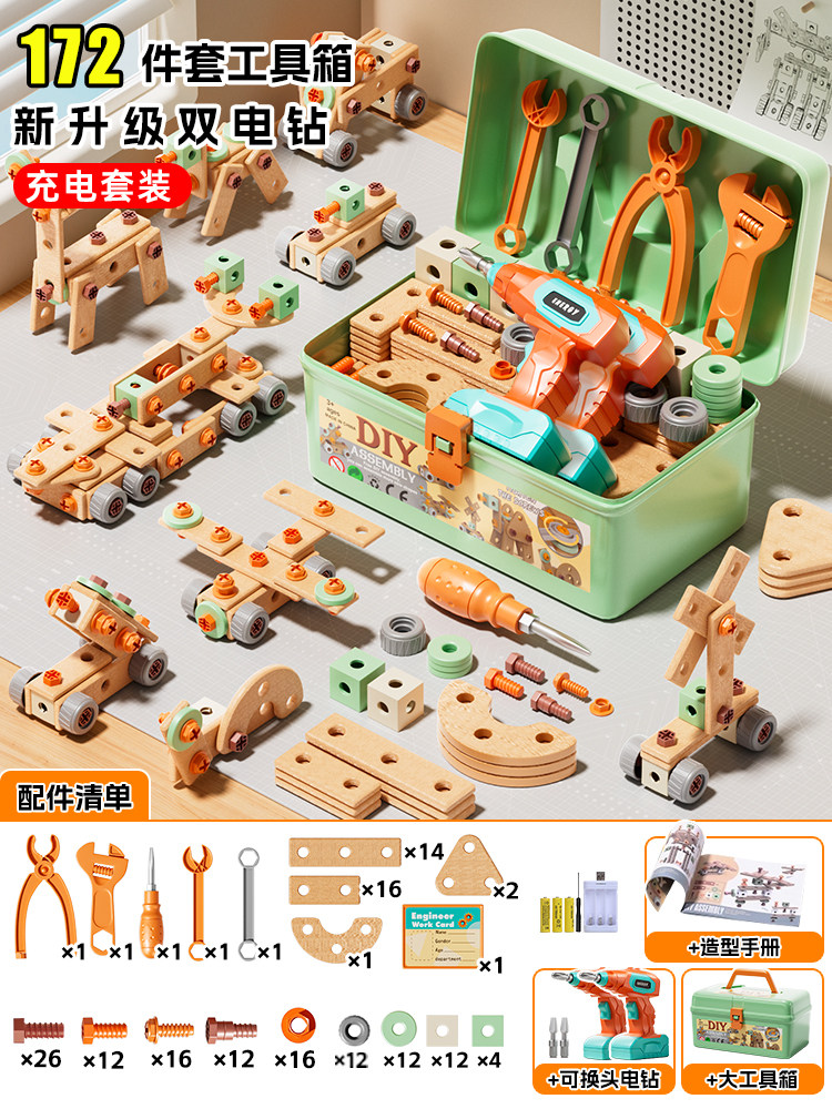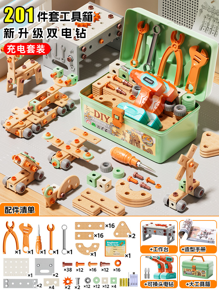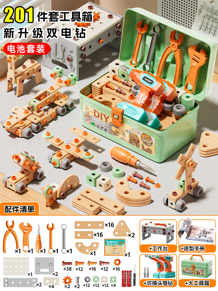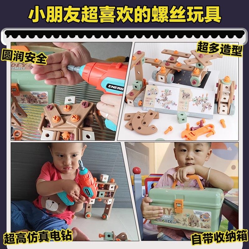 儿童拧螺丝刀维修工具箱玩具可拆卸电钻组装益智3到6男孩生日礼物