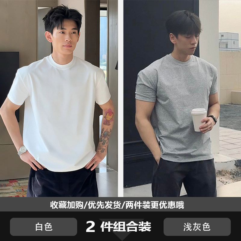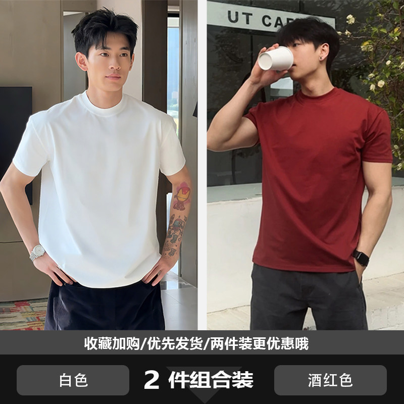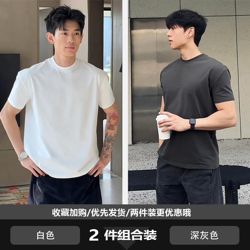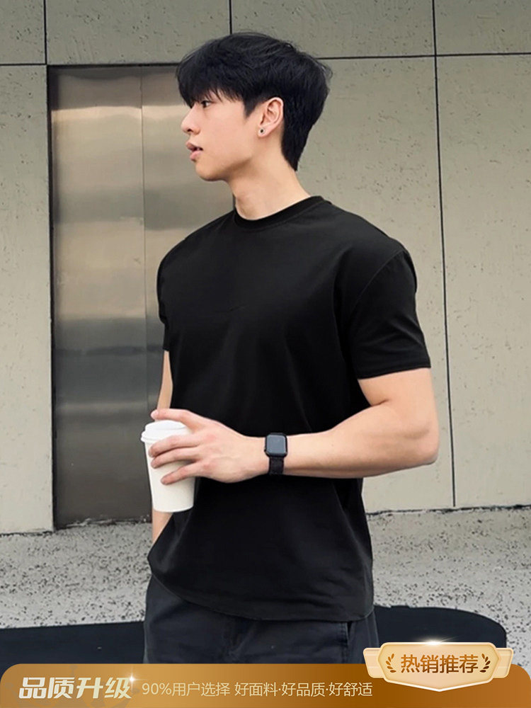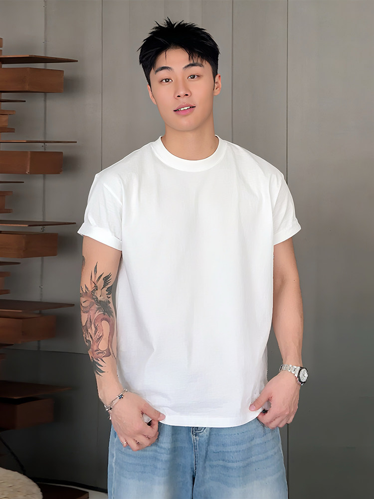 美式正肩重磅t恤男款夏季cleanfit收袖口短袖纯棉内搭打底半截袖