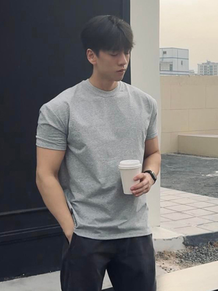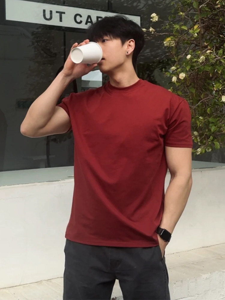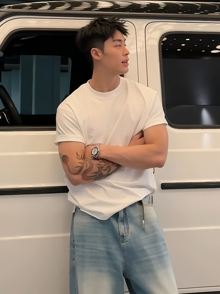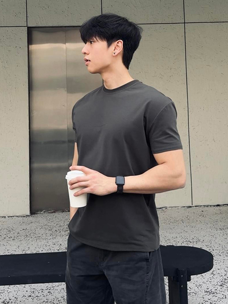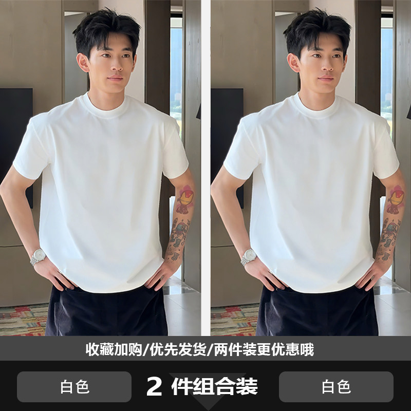 美式正肩重磅t恤男款夏季cleanfit收袖口短袖纯棉内搭打底半截袖