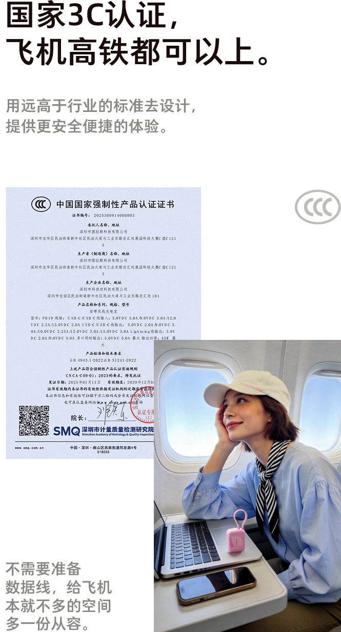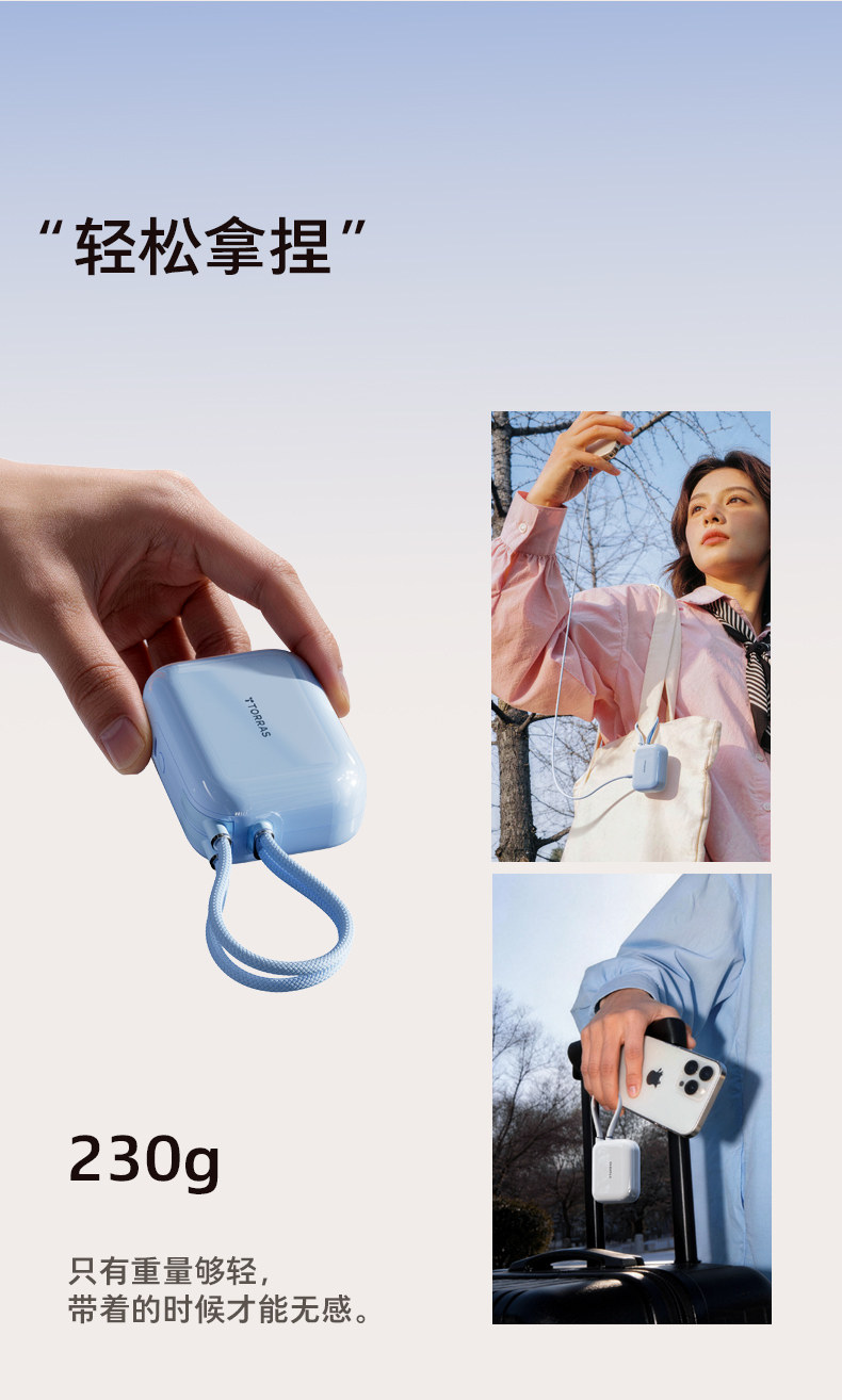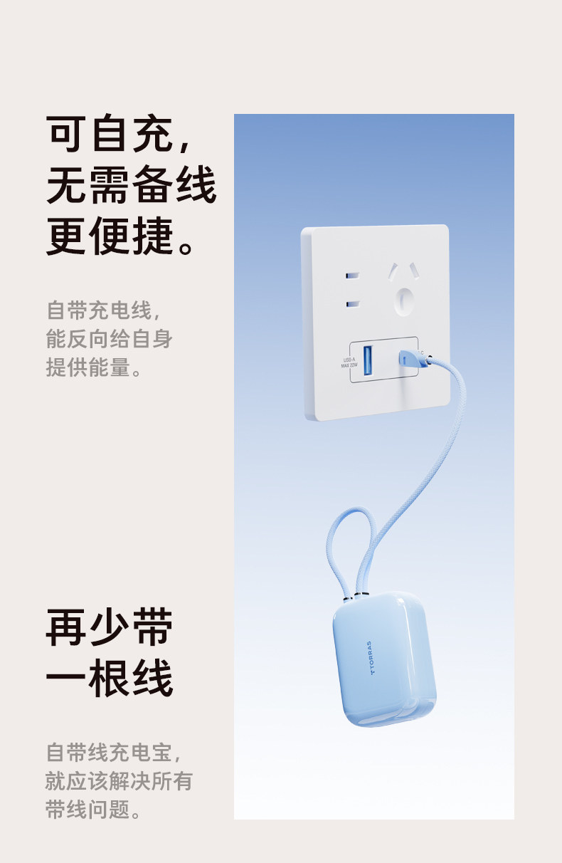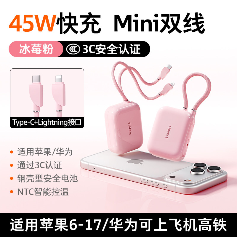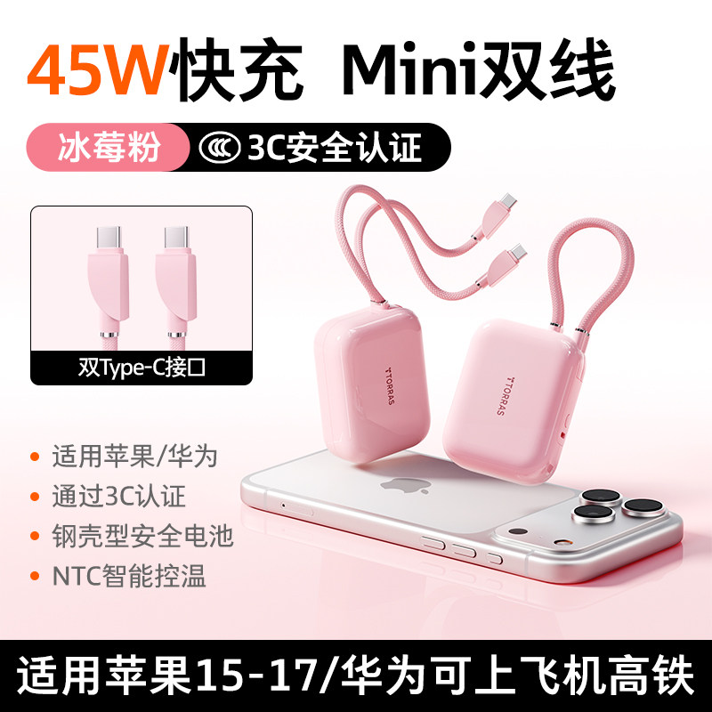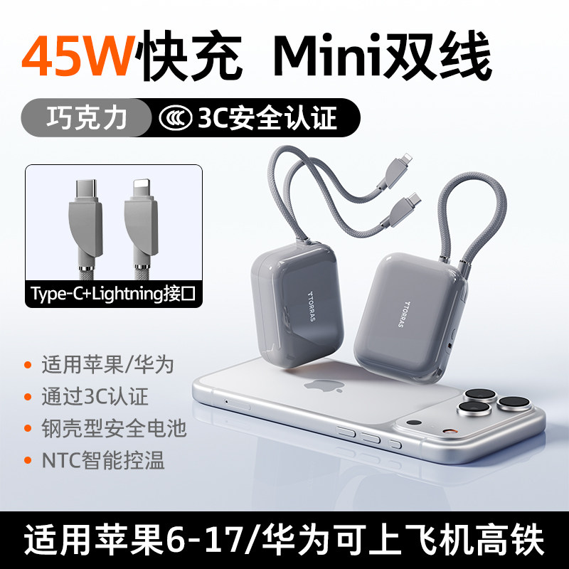 【papi酱同款】图拉斯小方块自带线充电宝3c认证可上飞机2026新款大容量小巧便携手机移动电源适用苹果/华为