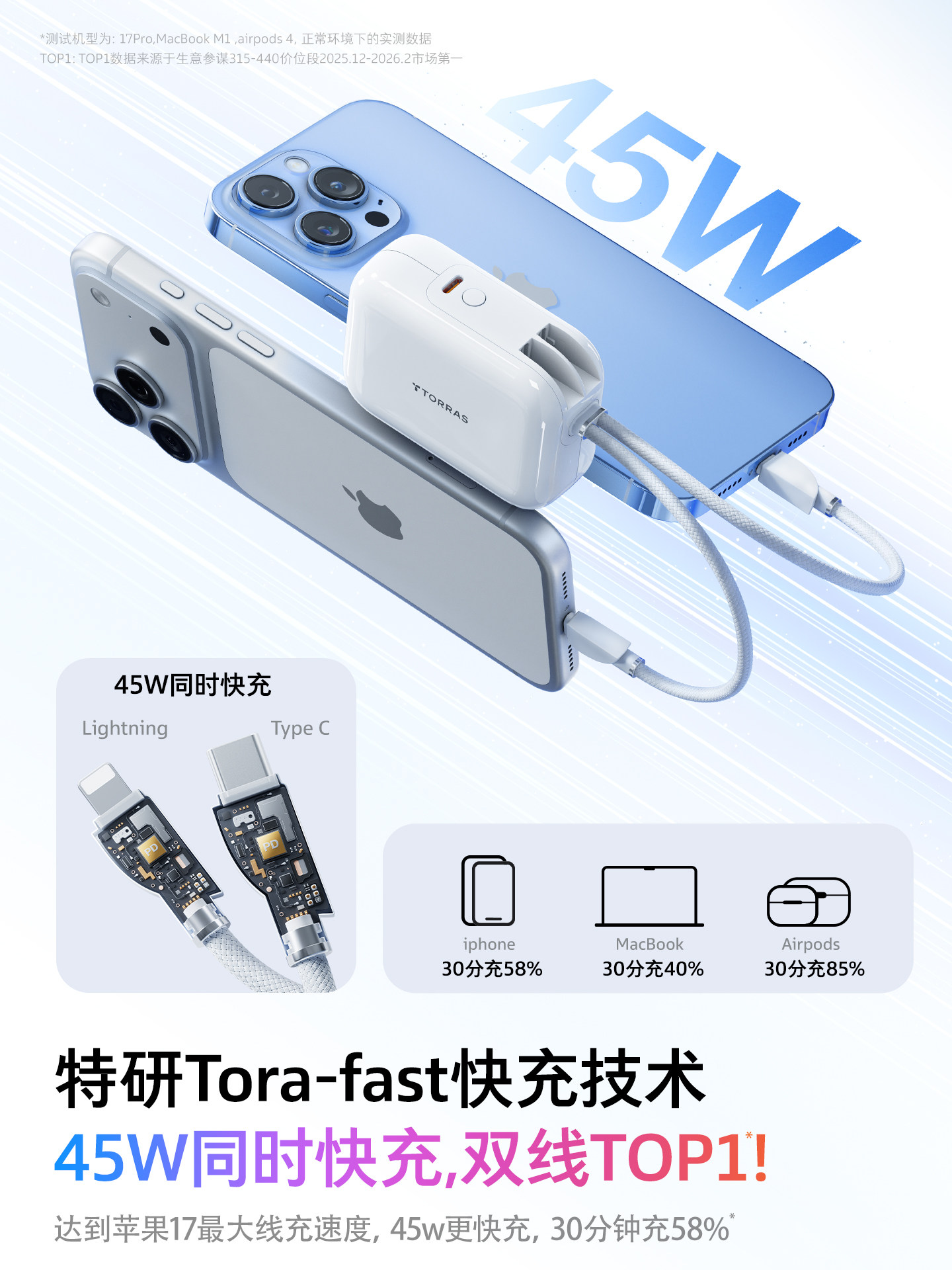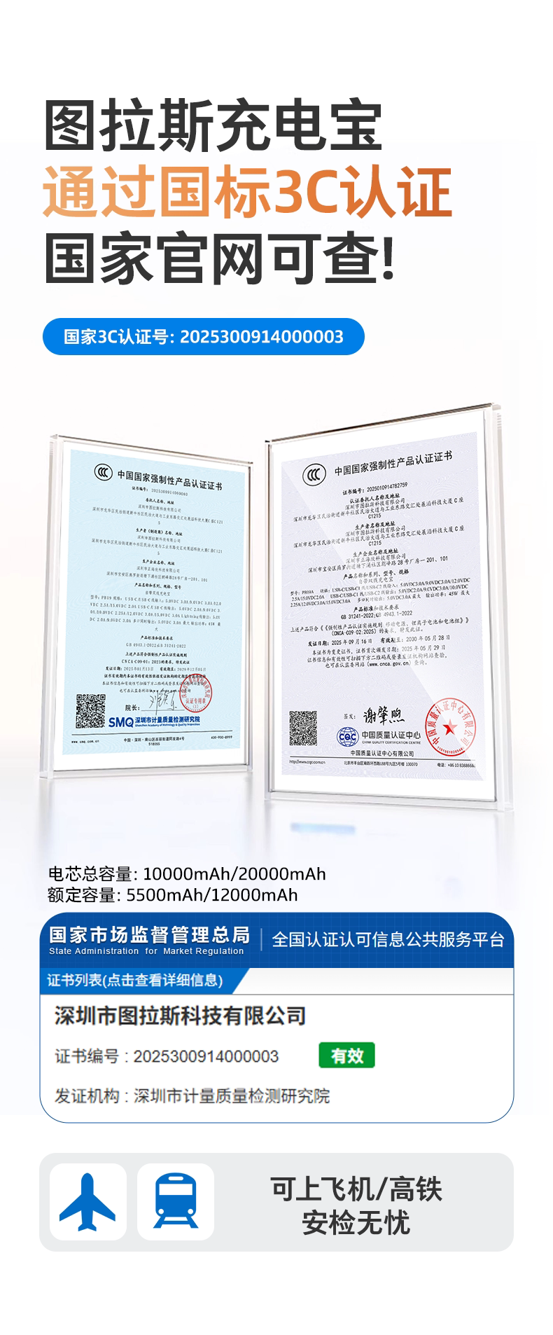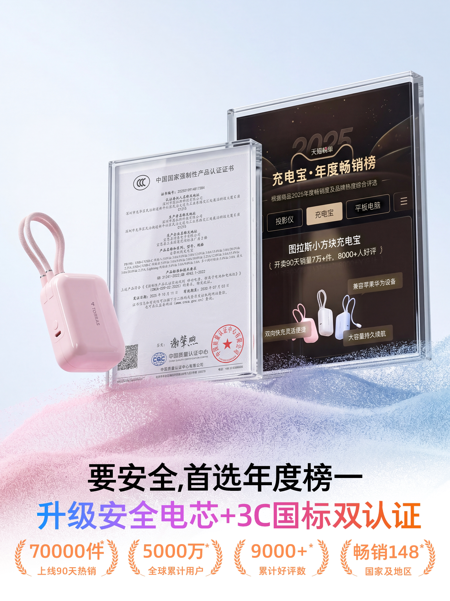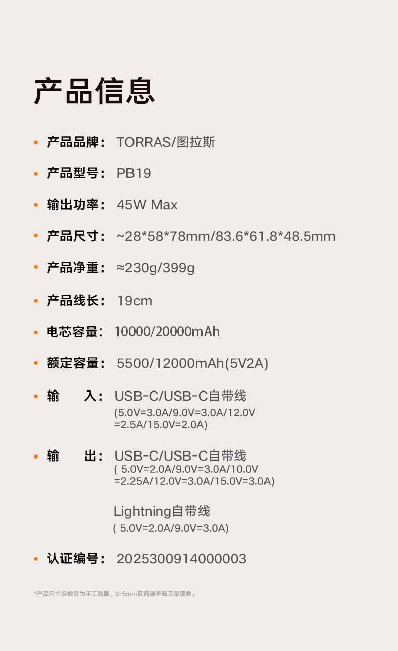 【papi酱同款】图拉斯小方块自带线充电宝3c认证可上飞机2026新款大容量小巧便携手机移动电源适用苹果/华为