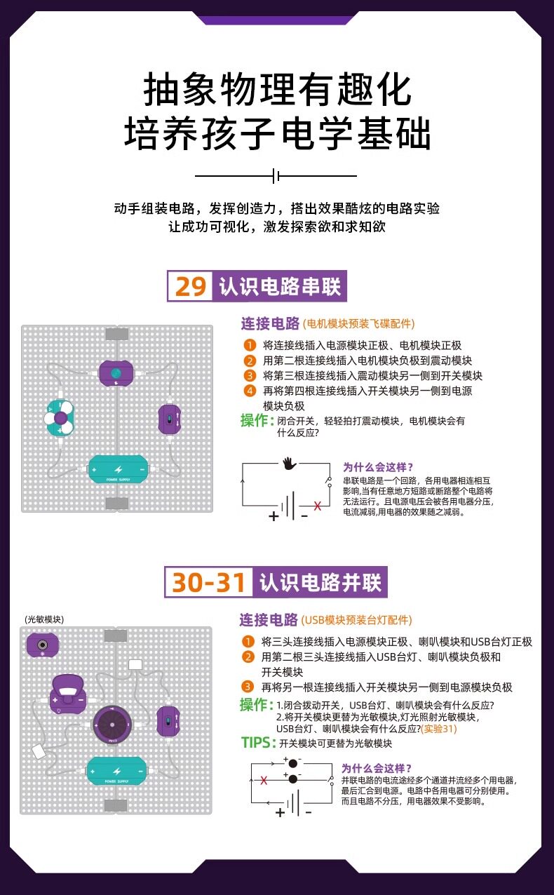 启蒙版【48个实验+精美礼盒】科教电子积木