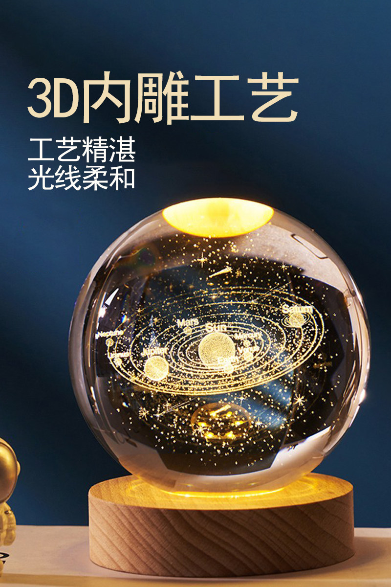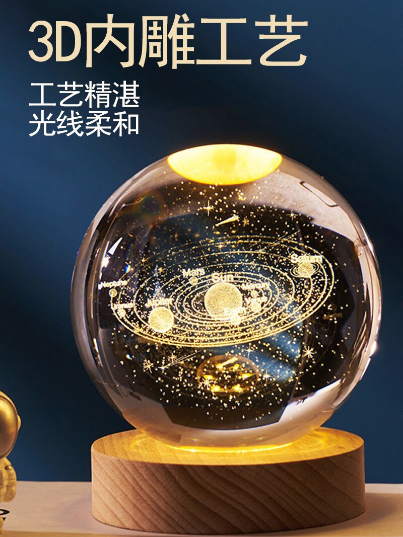 创意星空太阳系银河发光水晶球夜灯桌面装饰摆件男生生日礼物女生