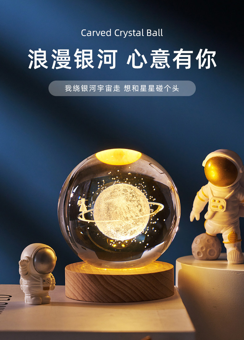 HomeProducts创意星空太阳系银河发光水晶球夜灯桌面装饰摆件男生生日礼物女生