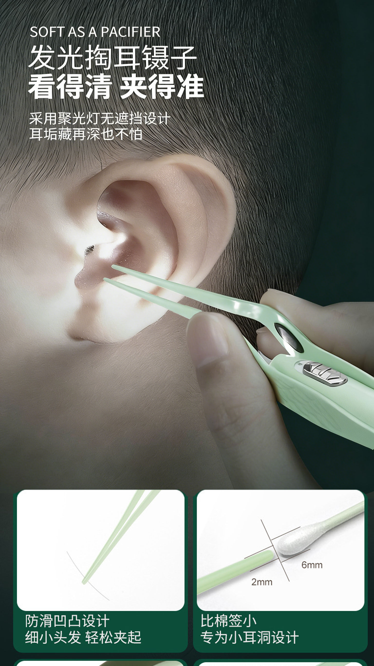 夹耳屎镊子挖耳朵神器发光掏耳镊子钳勺扣抠耳朵采耳工具儿童专用