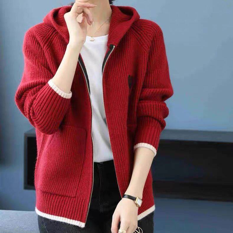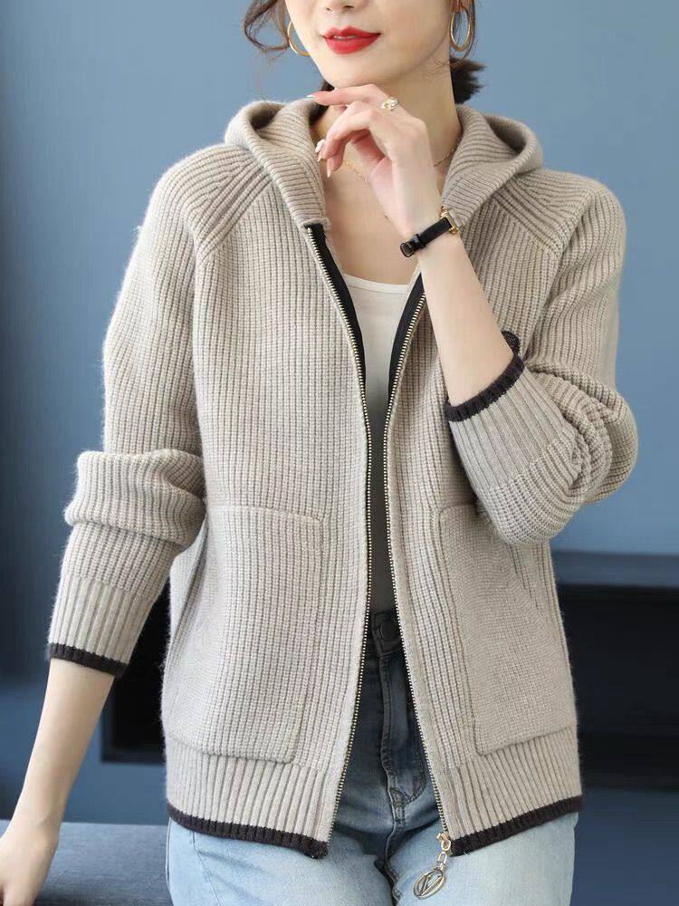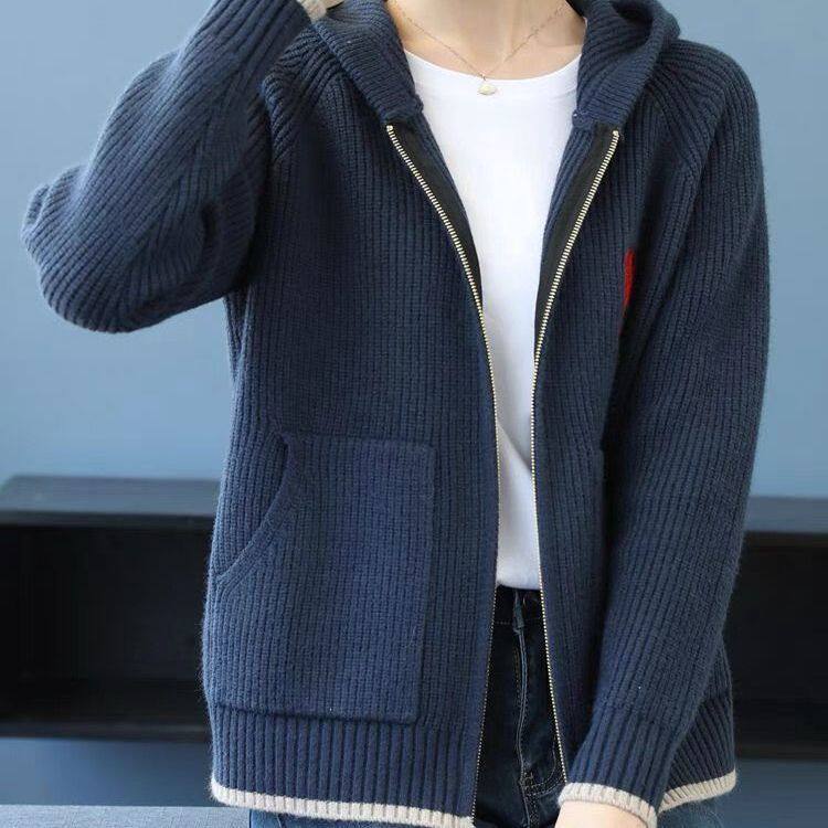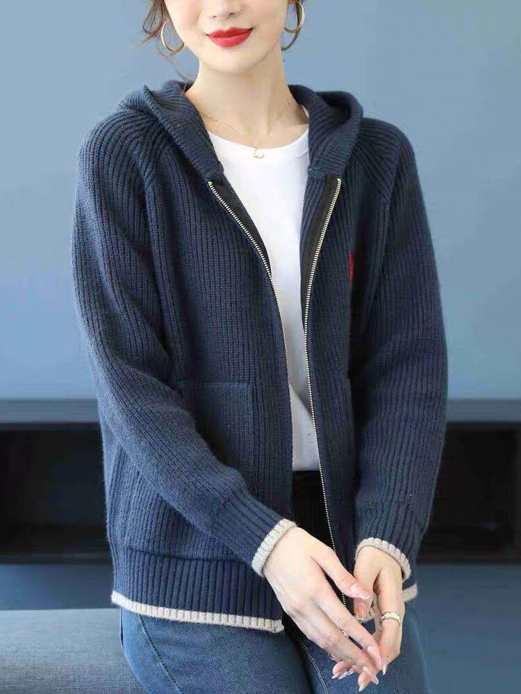 HomeProducts妈妈装2025秋季新款连帽拉链毛衣外套女刺绣长袖上衣时尚针织开衫
