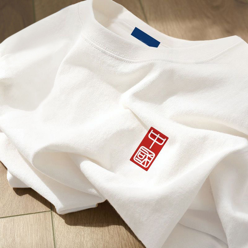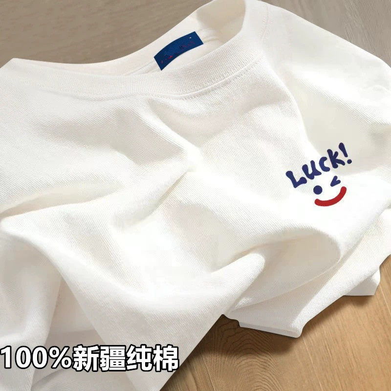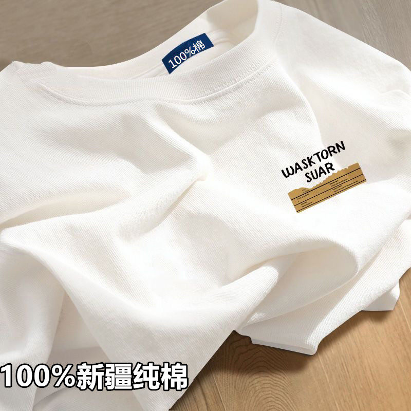 HomeProducts新疆棉】夏季100%纯棉圆领白色短袖t恤男女印花大码全棉宽松半袖