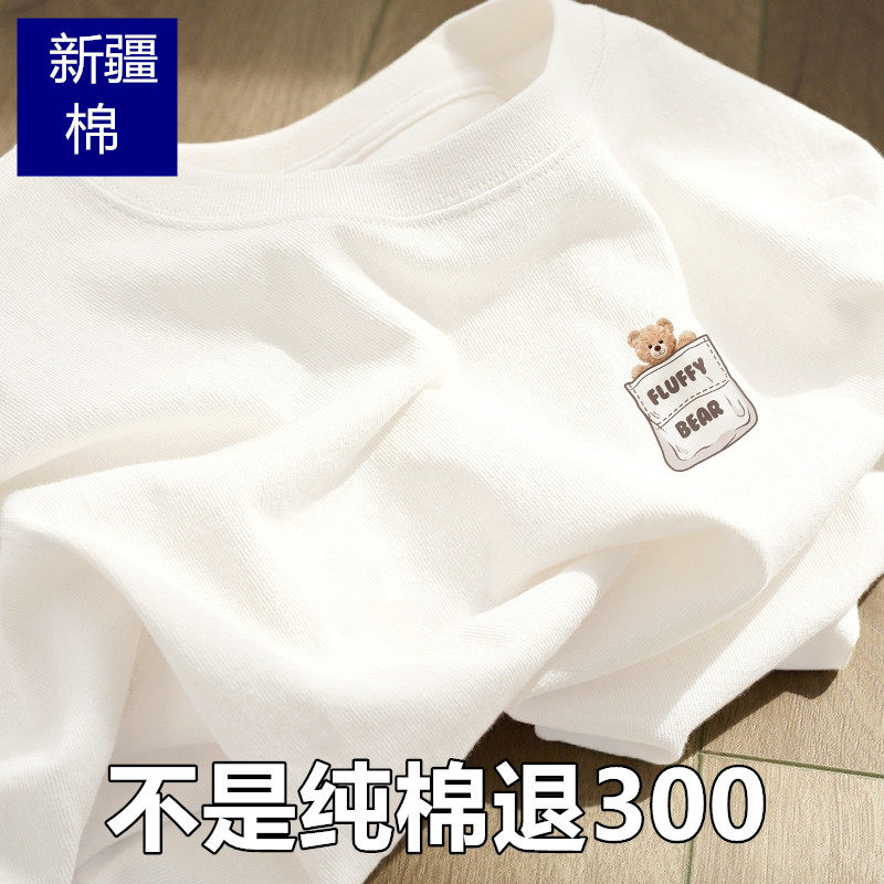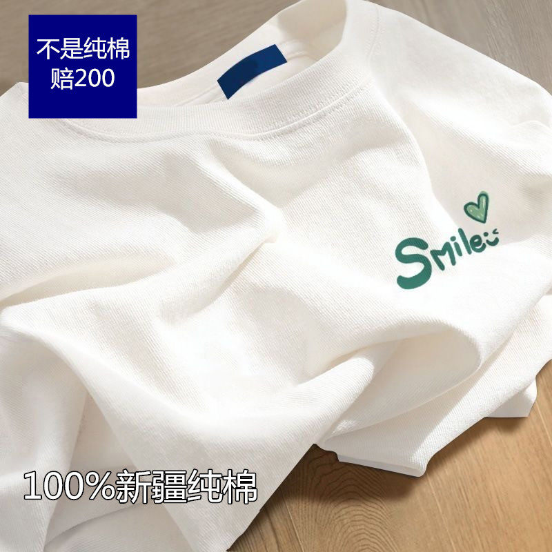 新疆棉】夏季100%纯棉圆领白色短袖t恤男女印花大码全棉宽松半袖