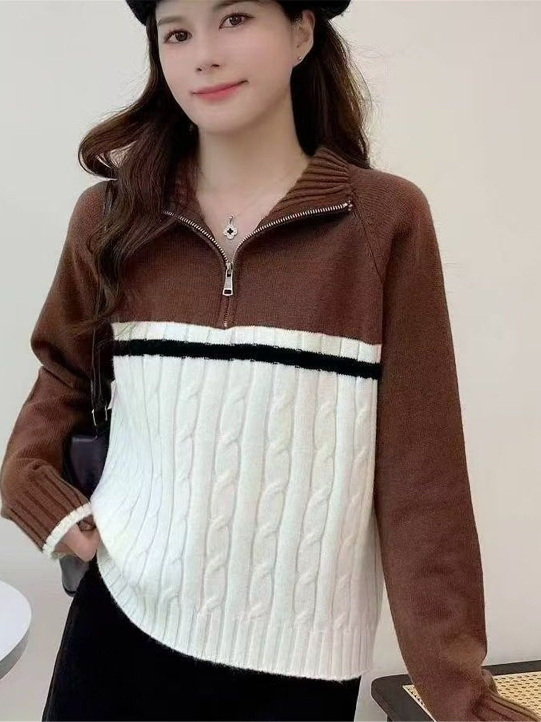 慵懒风麻花半高领毛衣女2025秋季新款时尚撞色针织衫宽松显瘦上衣