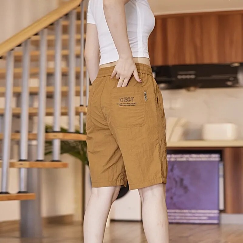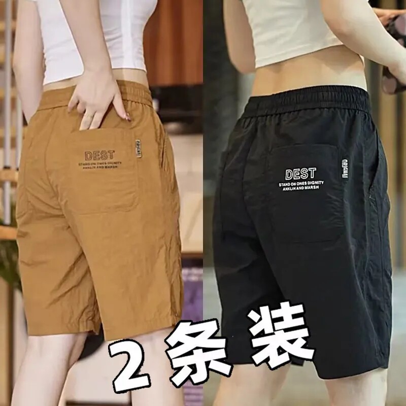 干活穿的五分短裤男夏季薄款冰丝宽松情侣休闲四分大裤衩运动马裤