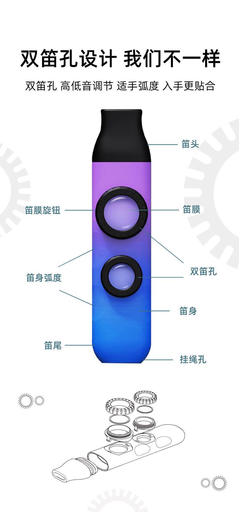 【收纳方便】⭐【卡祖笛-亮银】送笛膜10片+防尘套+收纳袋